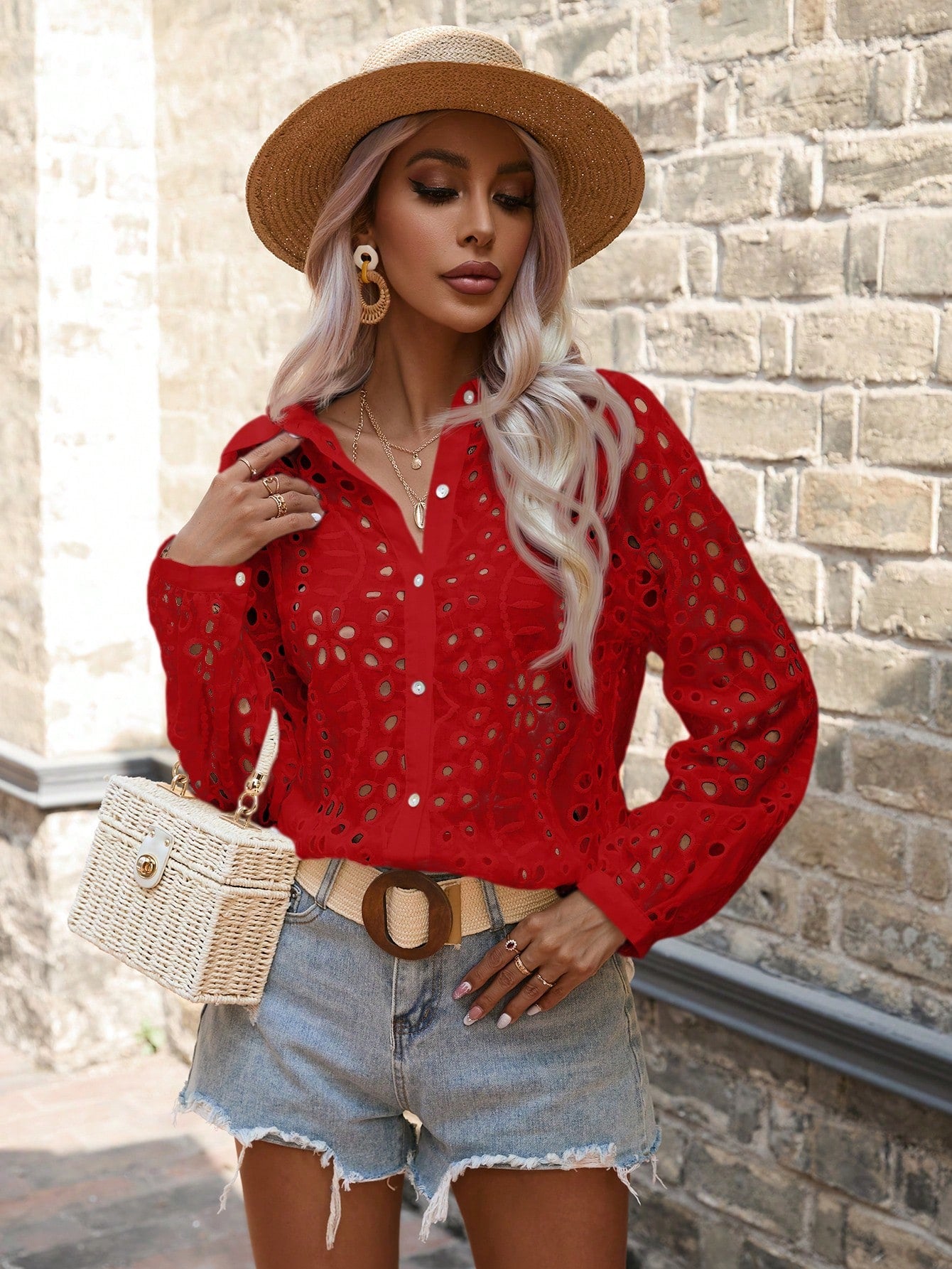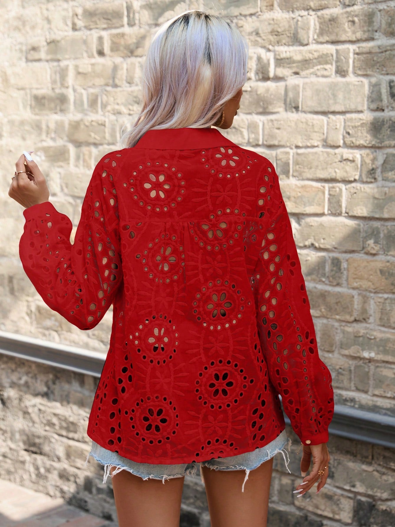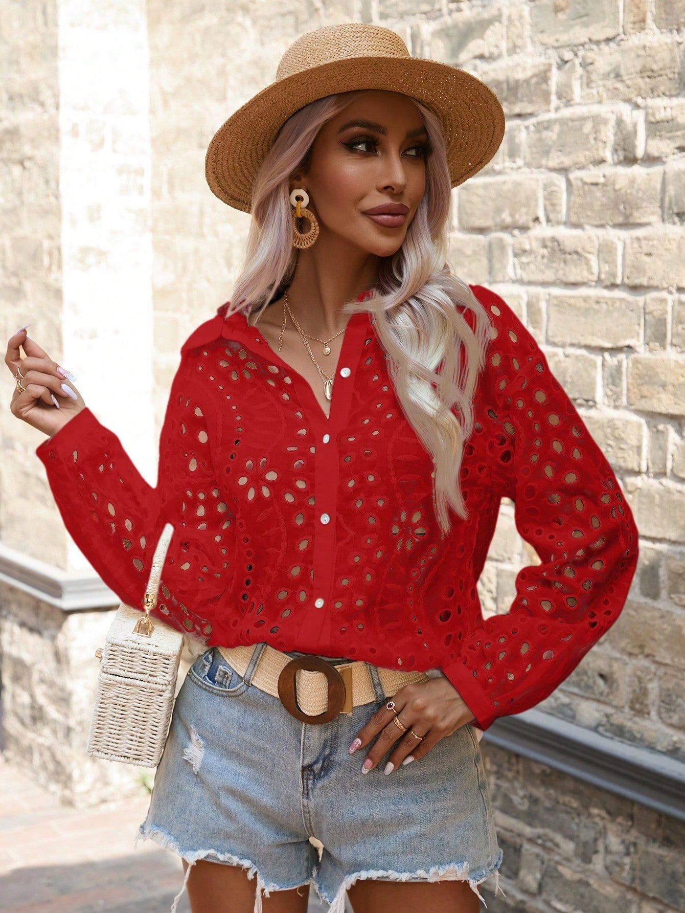 Aveloria Modichic Eyelet Embroidery Button Front Shirt Button Up Shirt Womenï½