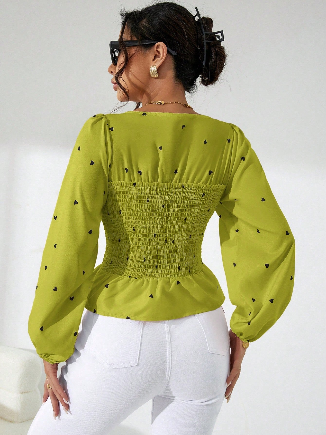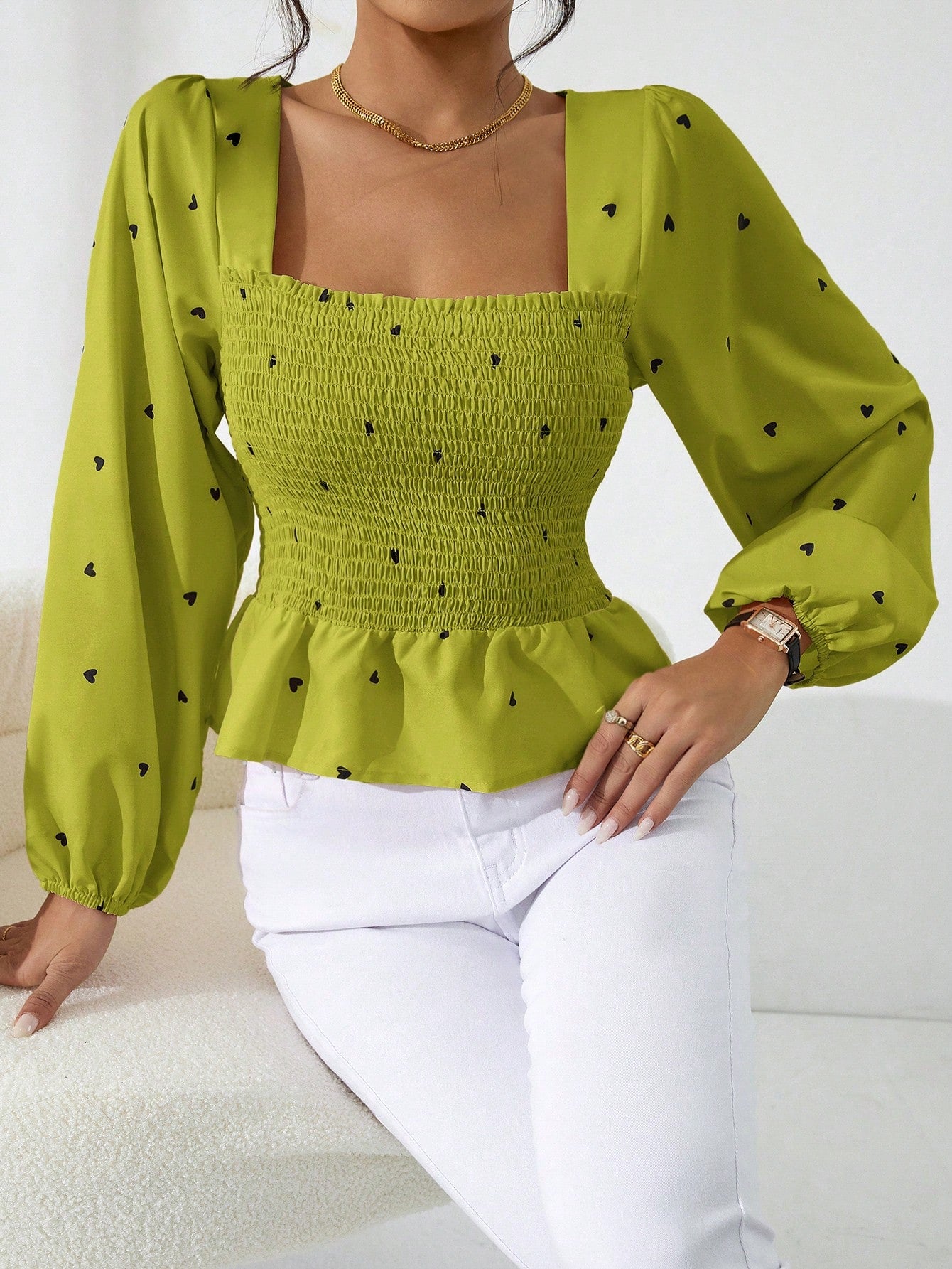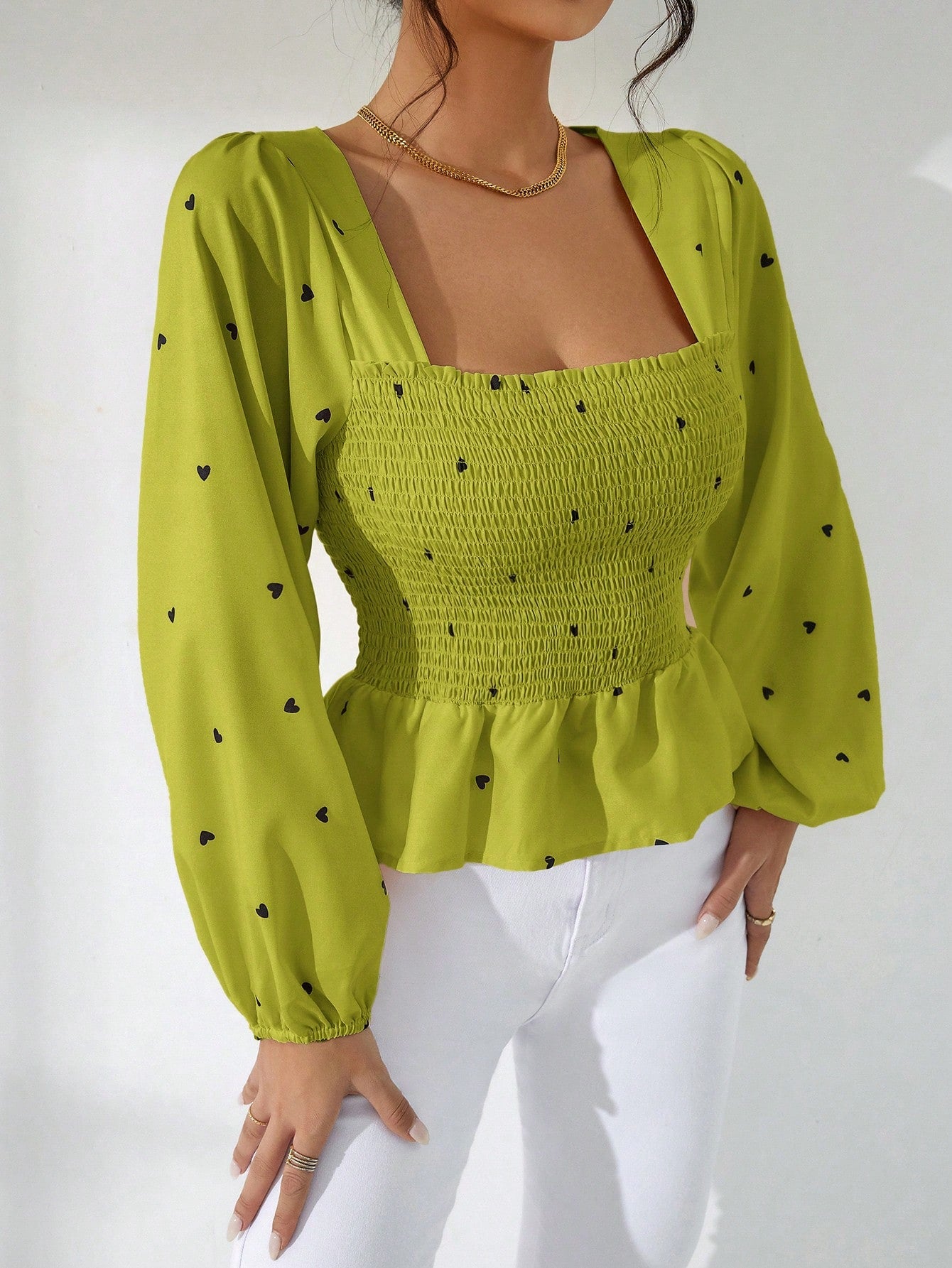 Aveloria Rosie Women's Holiday Heart Print Balloon Lantern Sleeve Fashion Shirt Old Money Style For