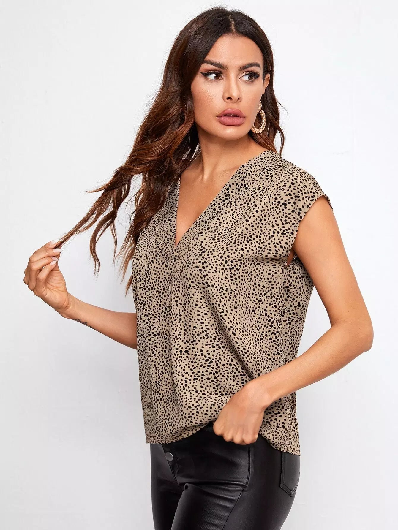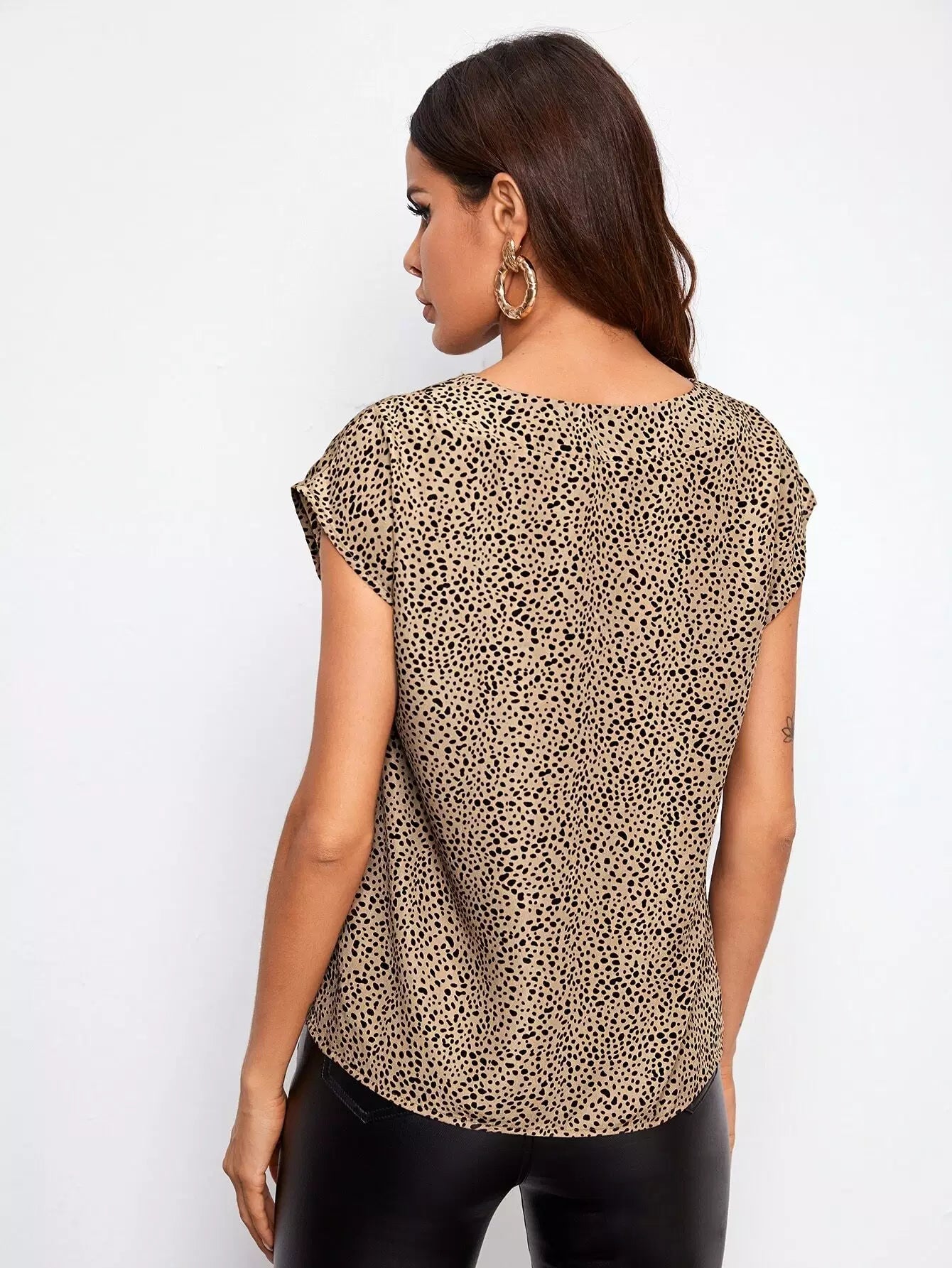 للنساء - بلوزة بطبعة دلماسية بأكمام جناح الخفاش