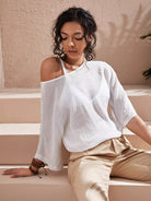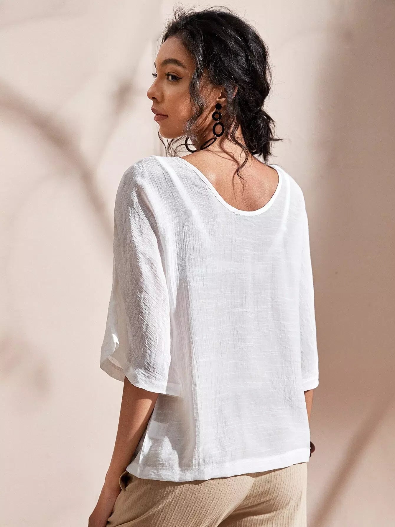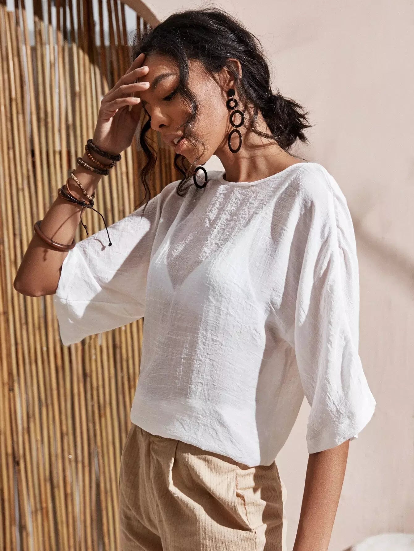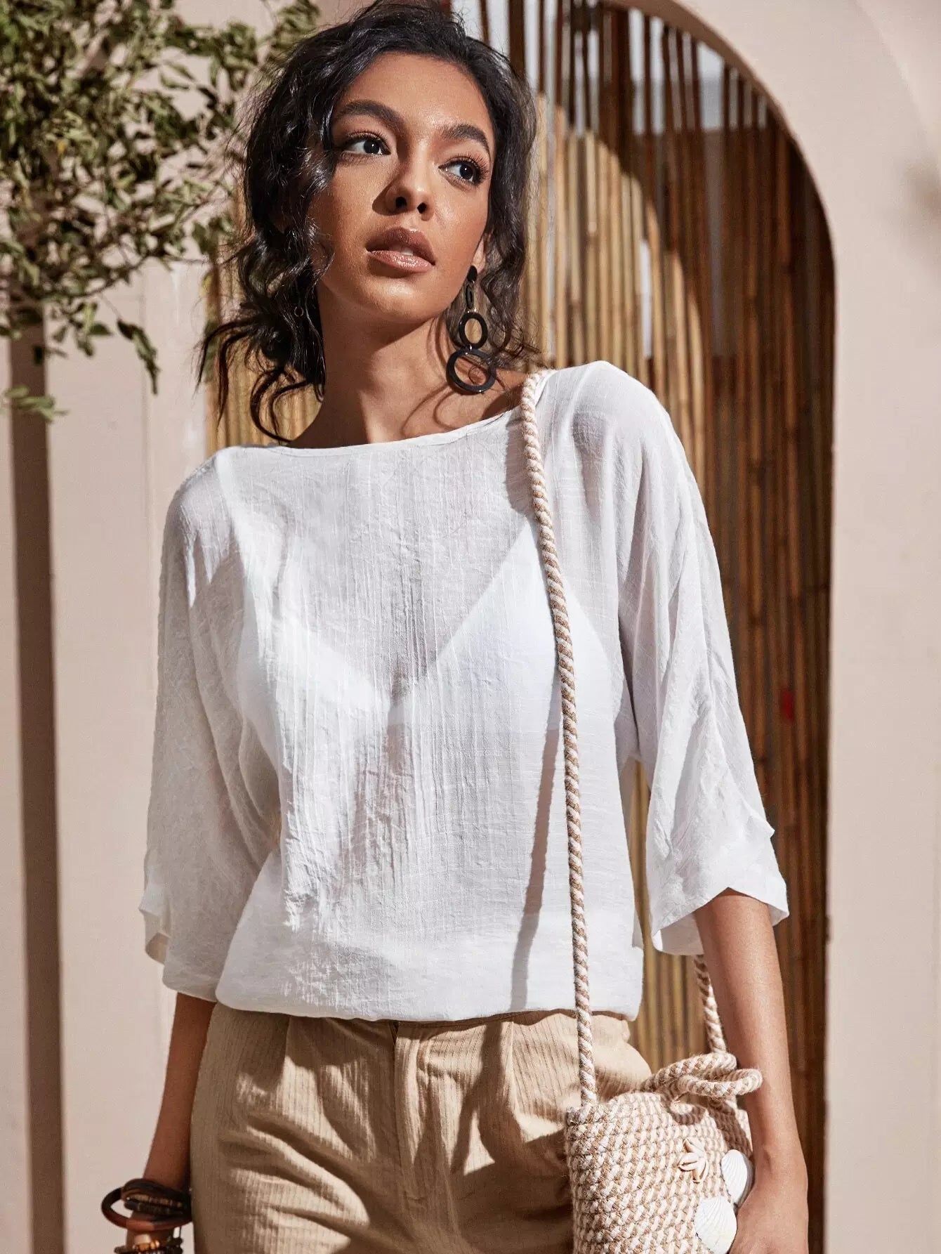بلوزة سادة بأكمام شفافة شفافة بأكمام باتوينغ