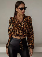بلوزة بأكمام أسقف بأربطة على شكل جلد النمر