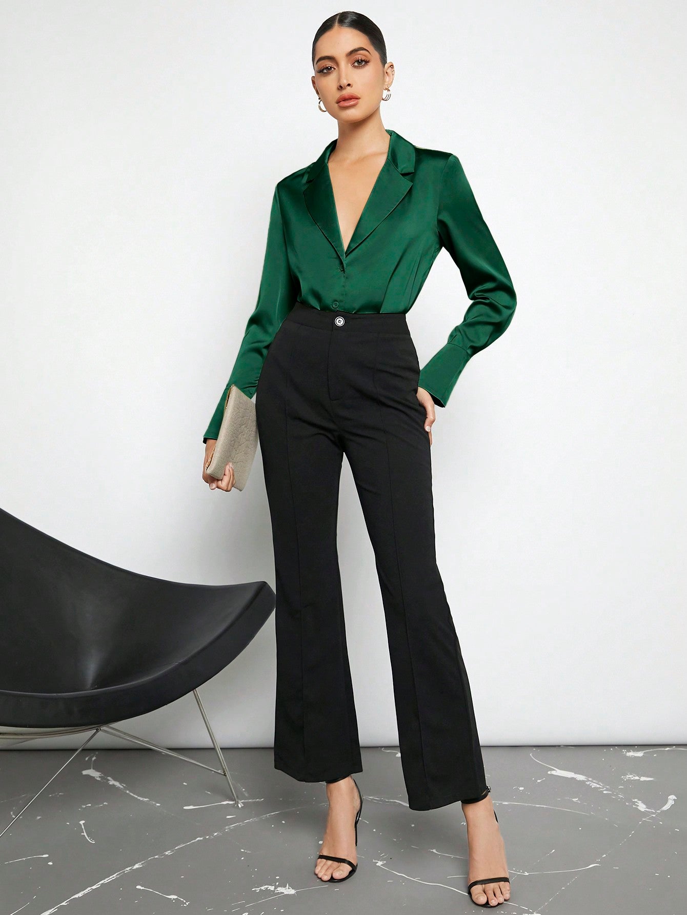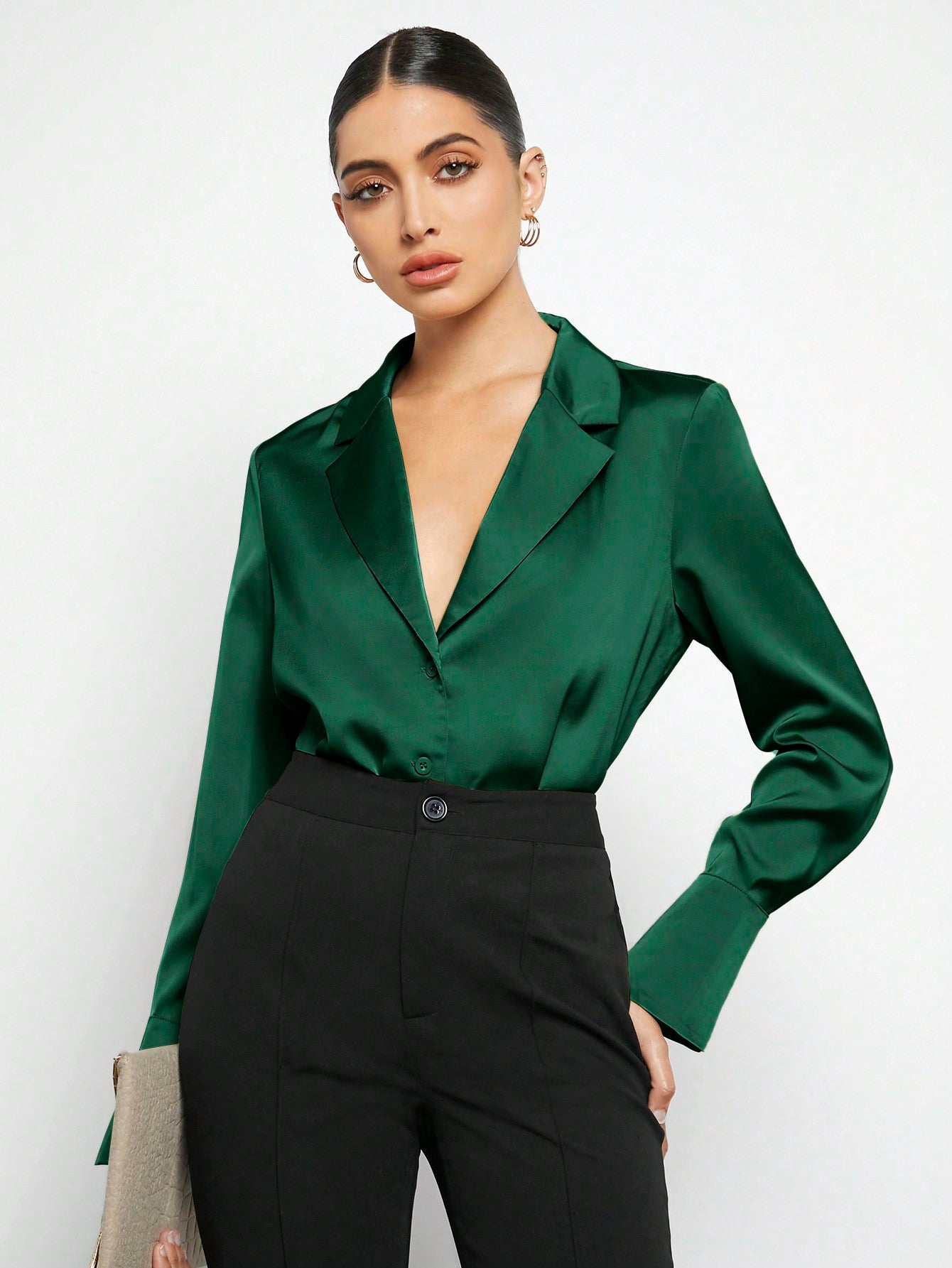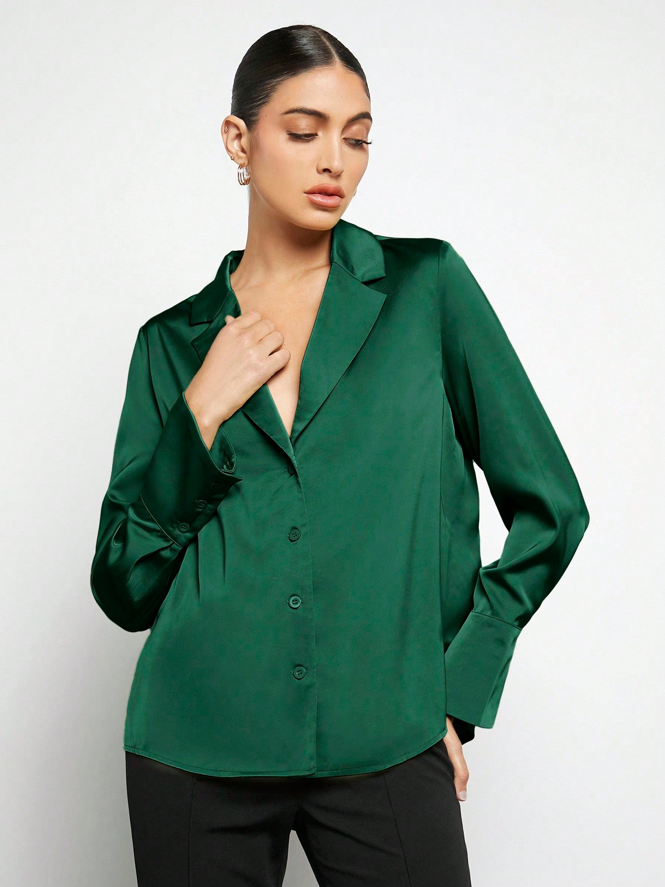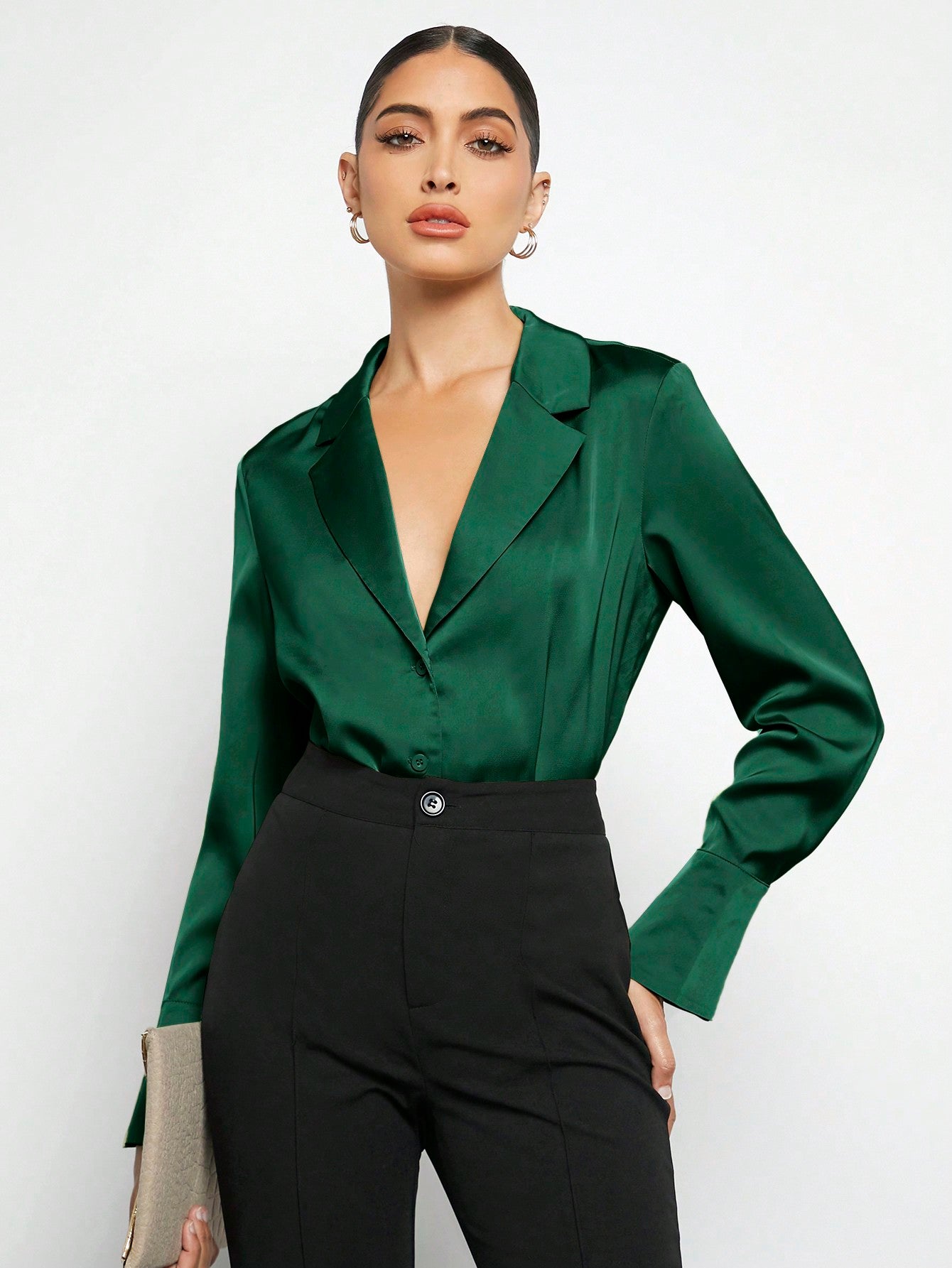 قميص ساتان بيزي شيك سادة بياقة دائرية
