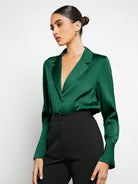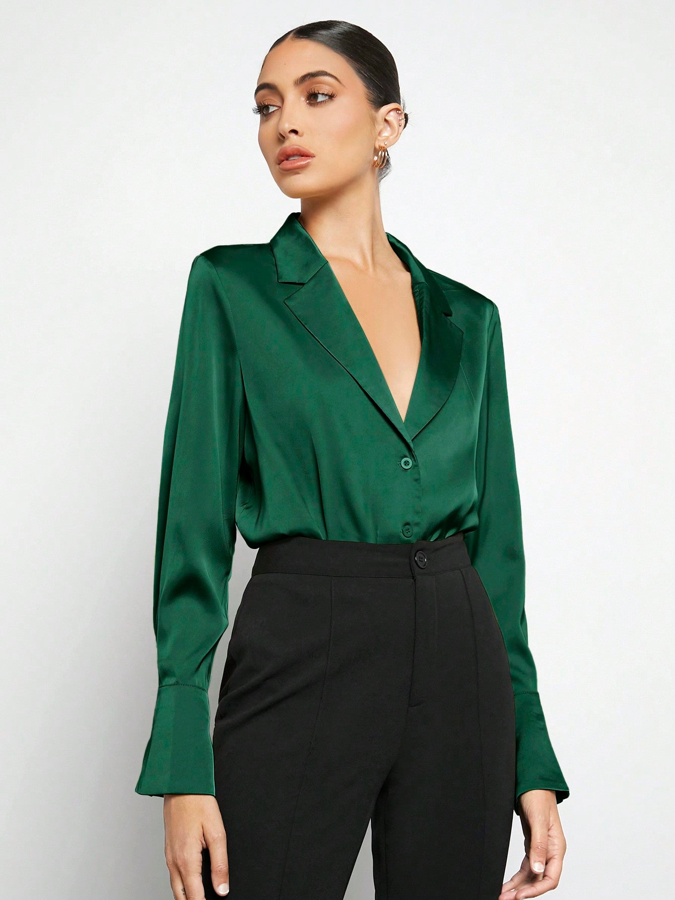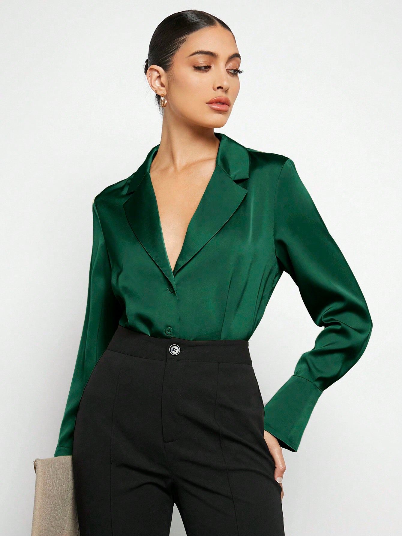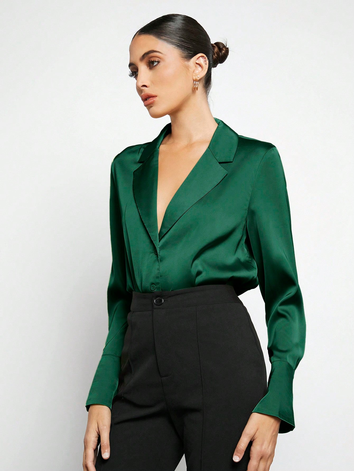 قميص ساتان بيزي شيك سادة بياقة دائرية