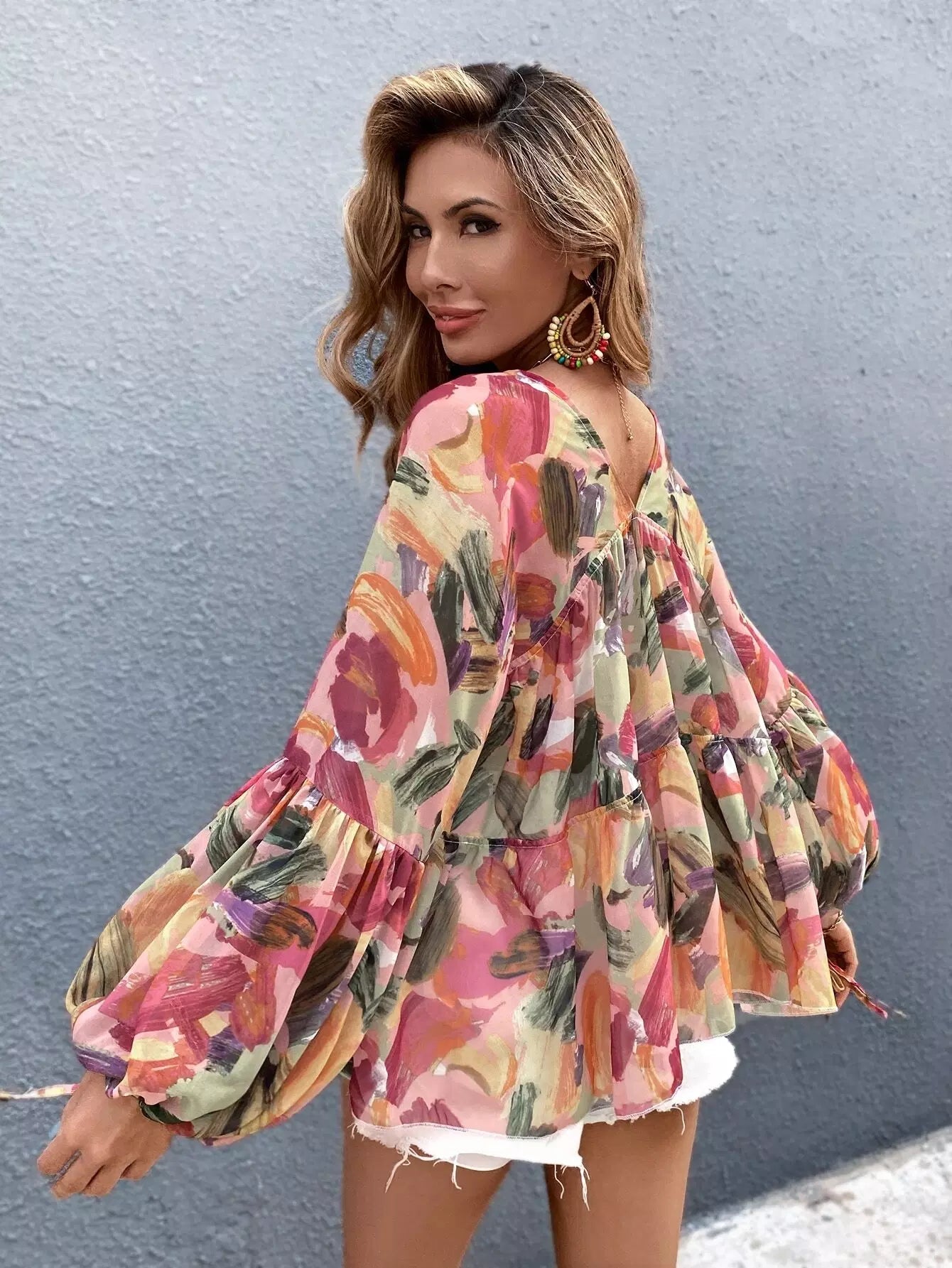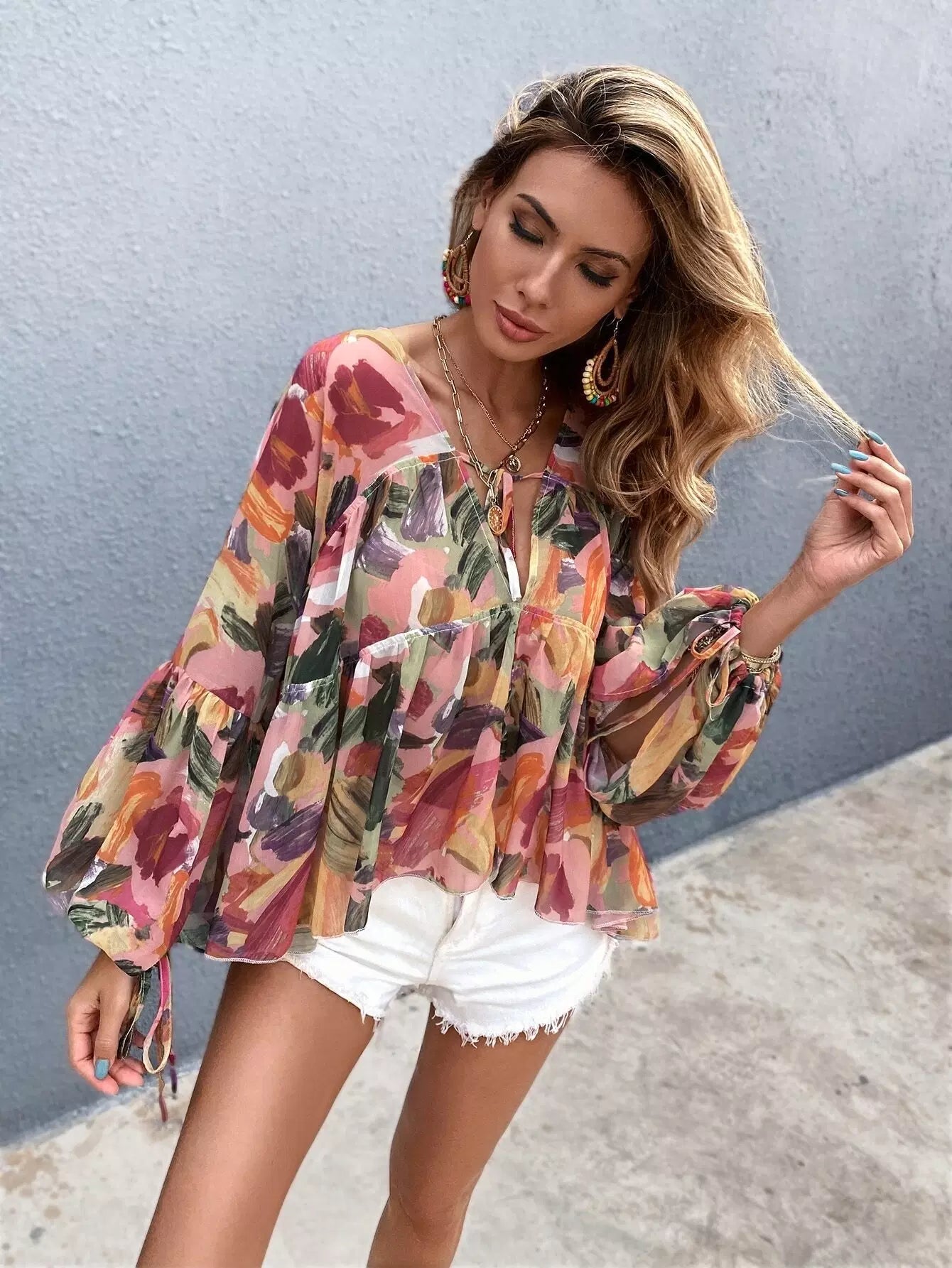بلوزة فرشاة فرشاة فرشاة برباط أمامي بربطة عنق من الأمام