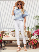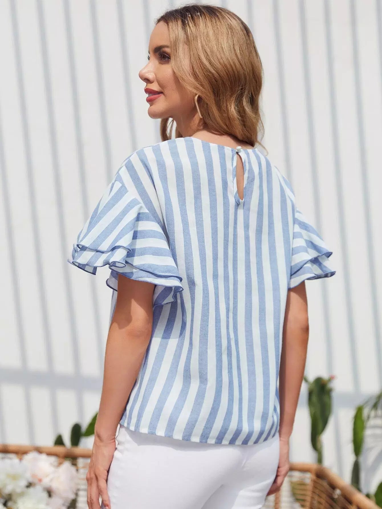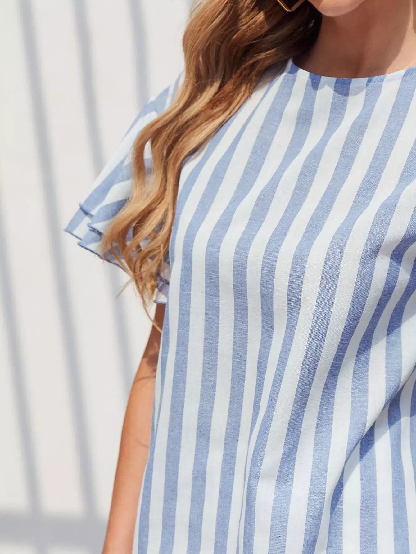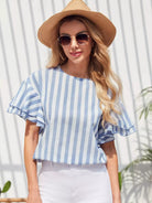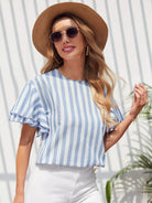 بلوزة بأكمام فراشة مخططة