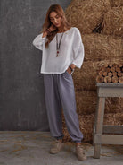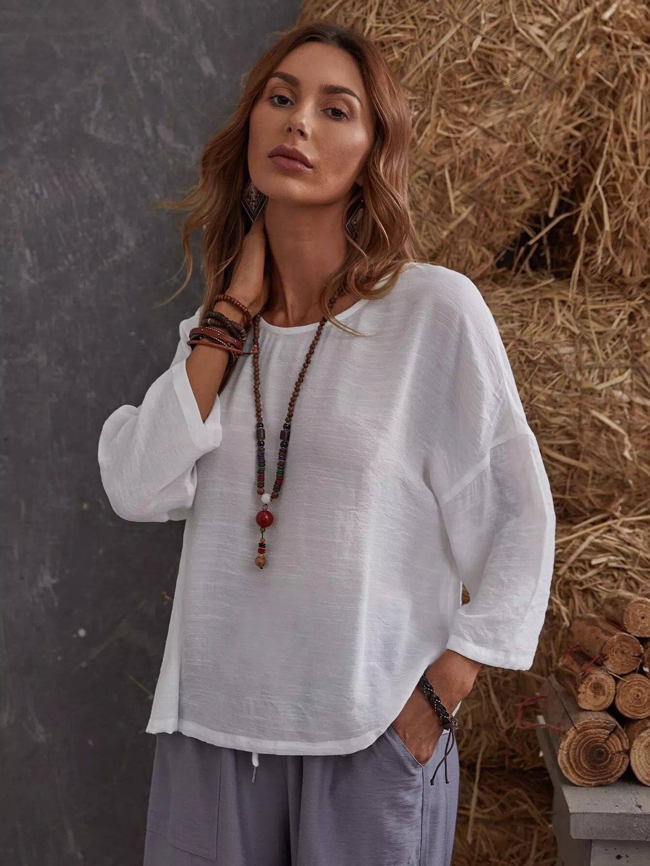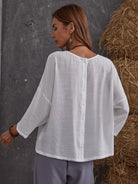 بلوزة منسدلة الكتفين بأزرار منسدلة من الخلف