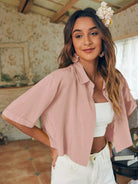 قميص قصير بأزرار أمامي بأزرار