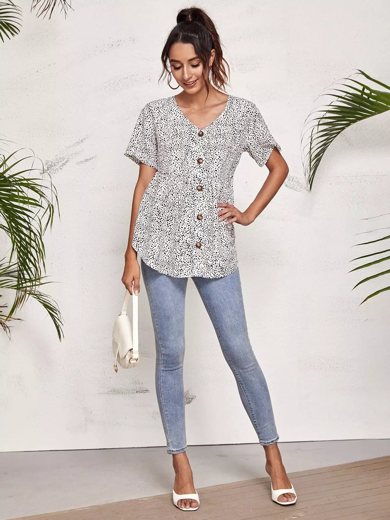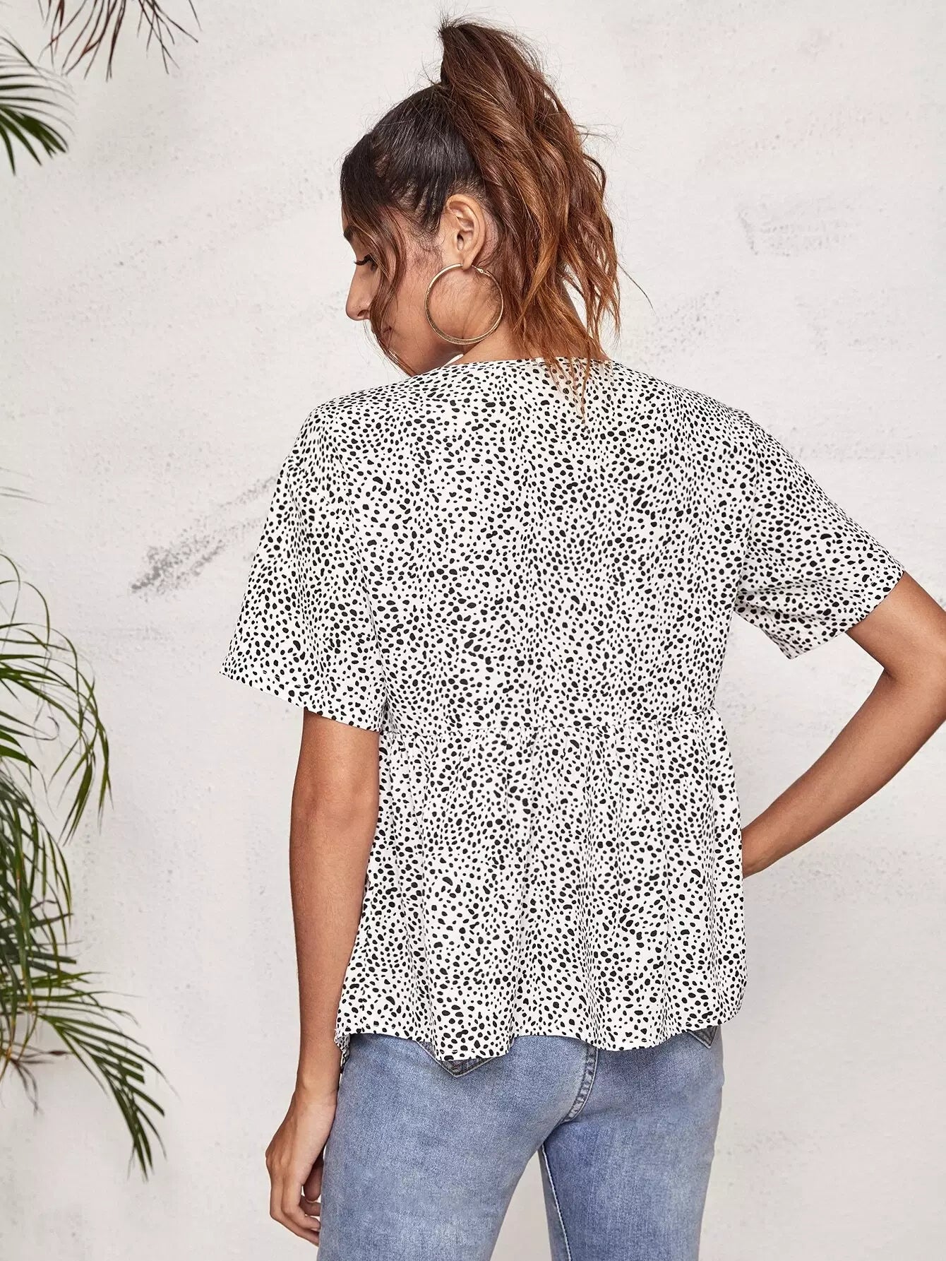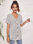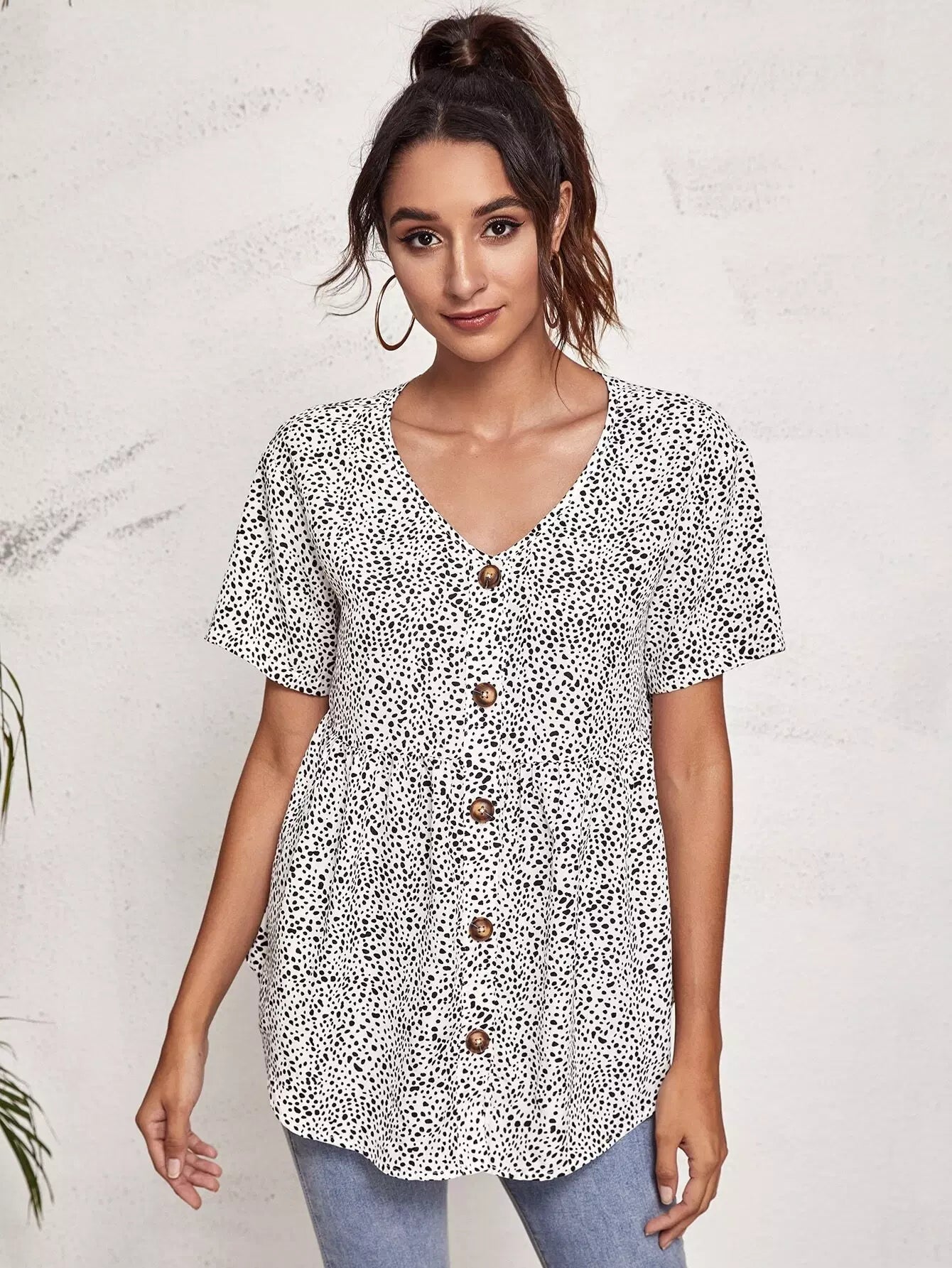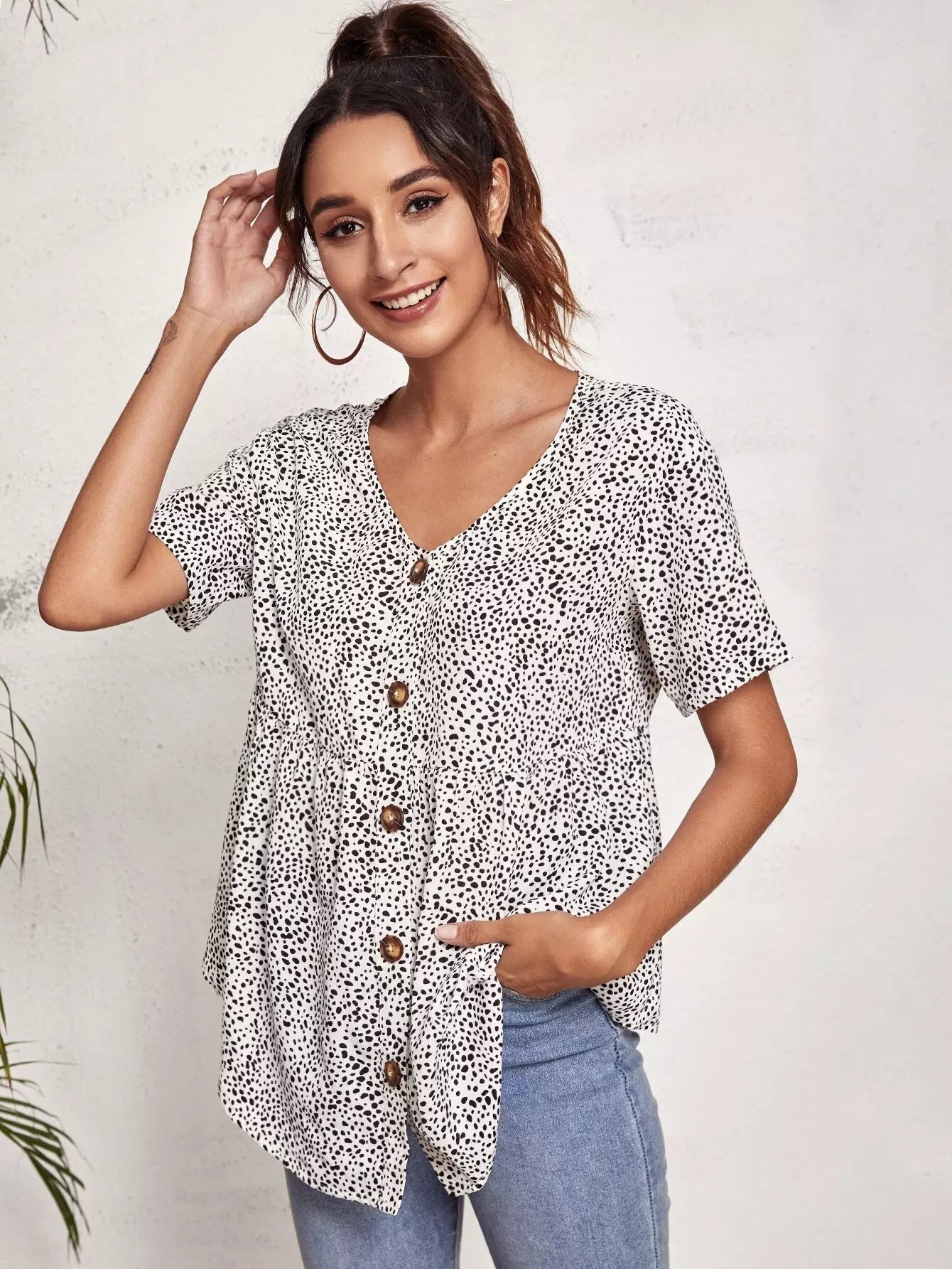قميص قصير مزين بأزرار من الأمام بطبعة كلب مرقش