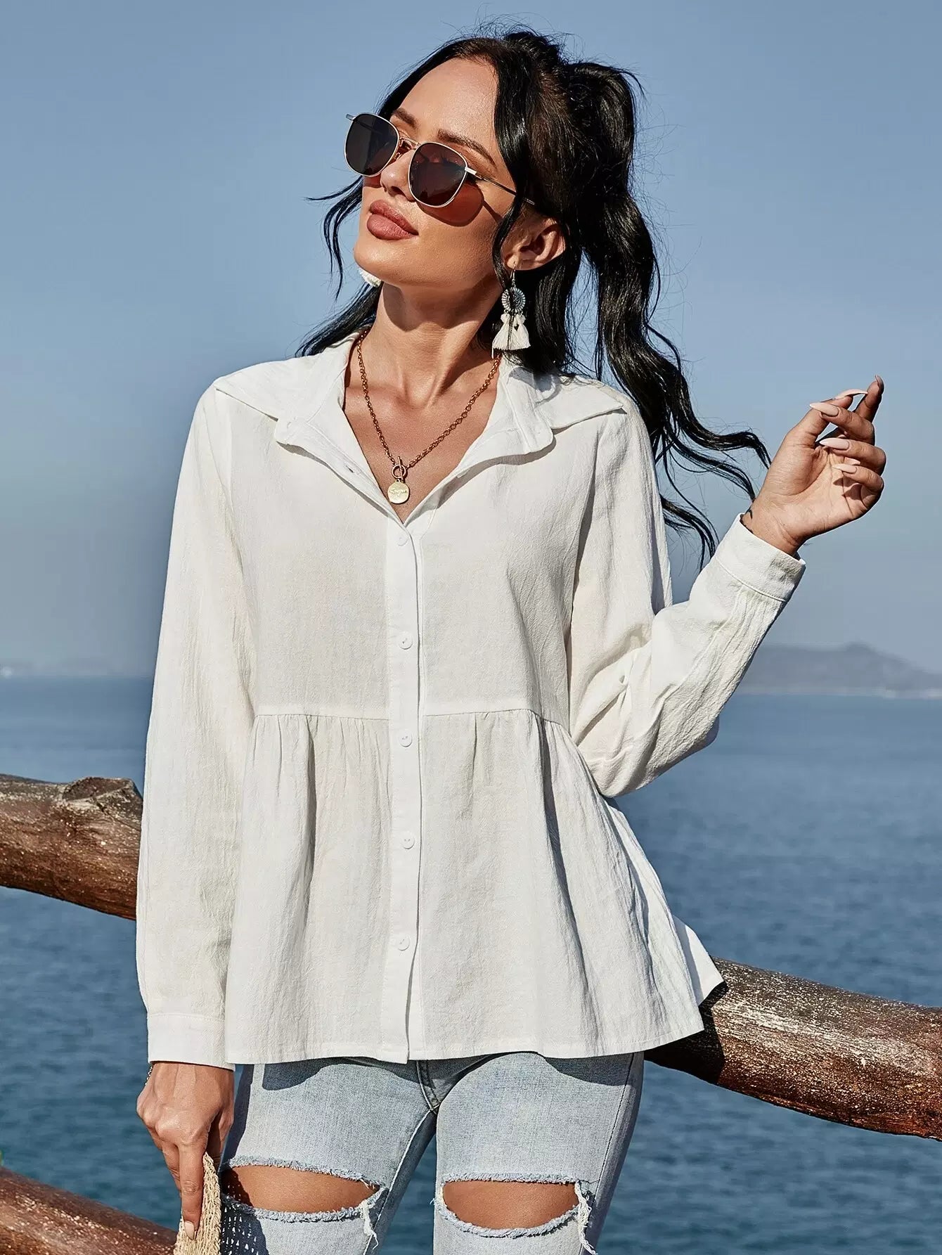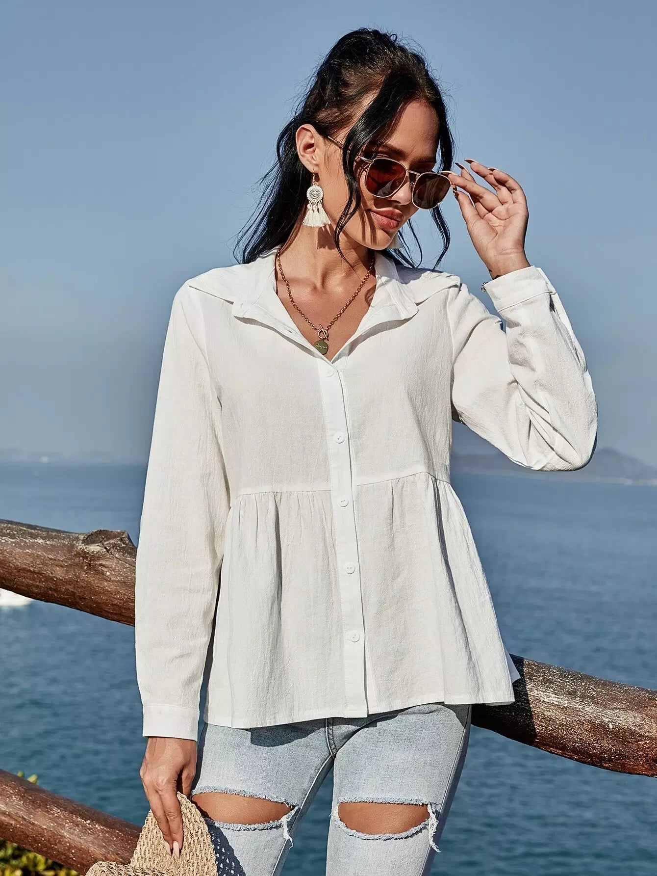 تي شيرت بأزرار منسدلة بأزرار منسدلة على الصدر