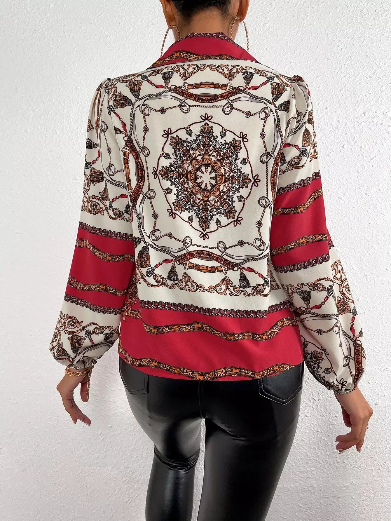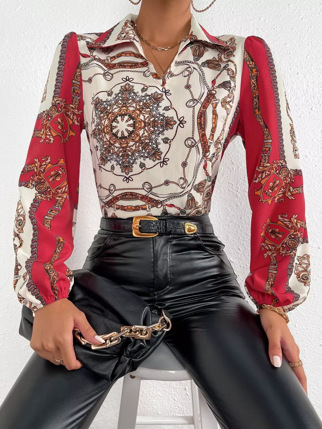 بلوزة مطبوعة بسلسلة ووشاح