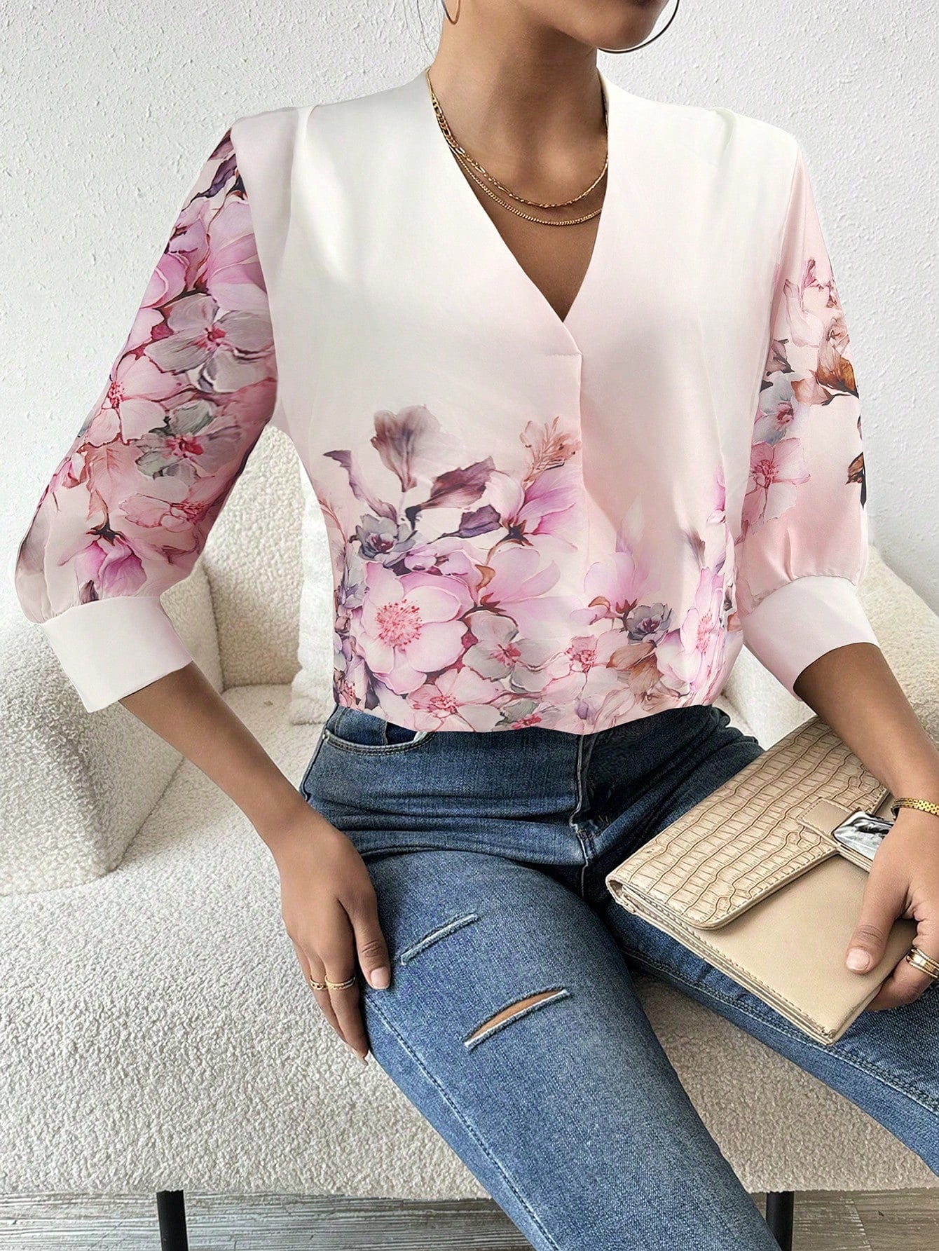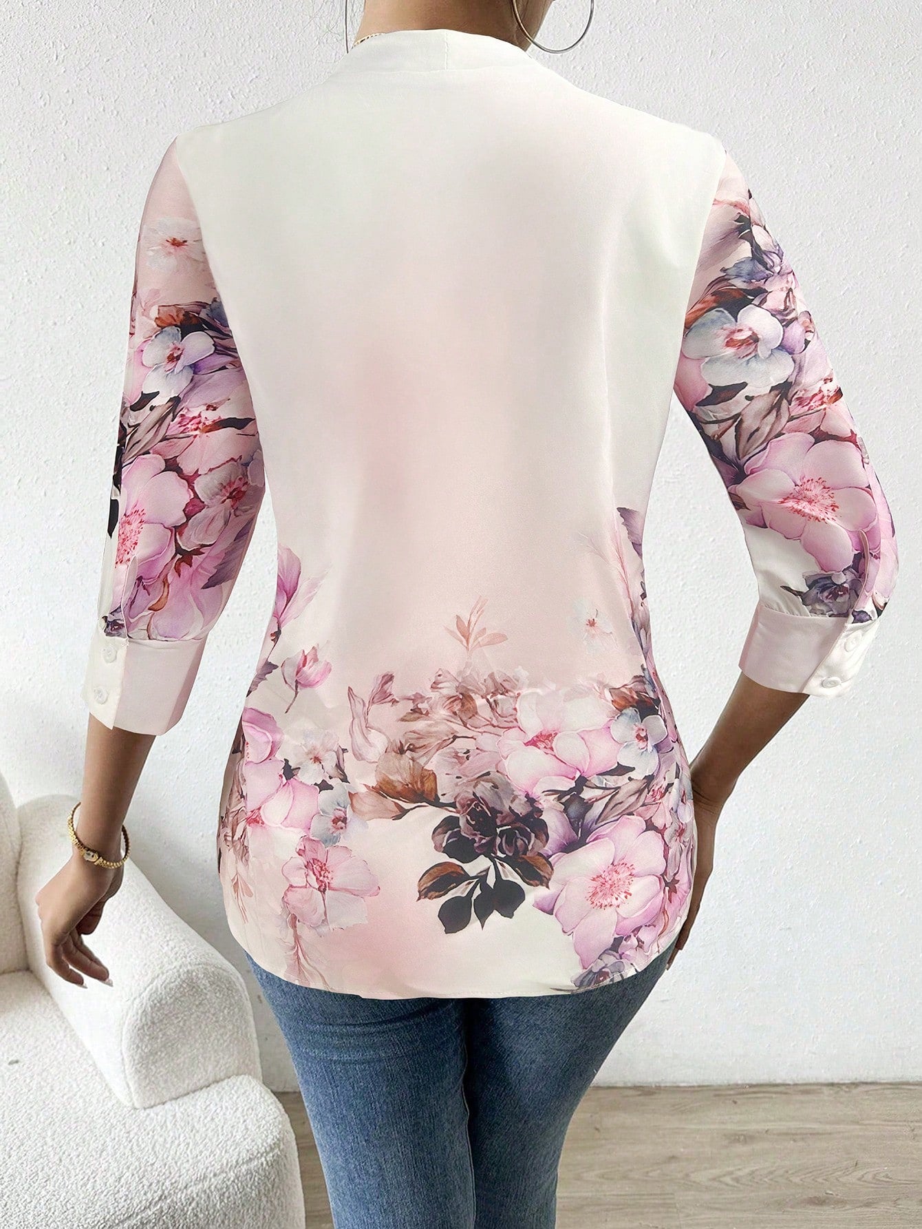 women Chiquease Women's Elegant Floral Print Blouse For Commuting