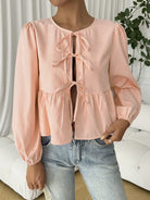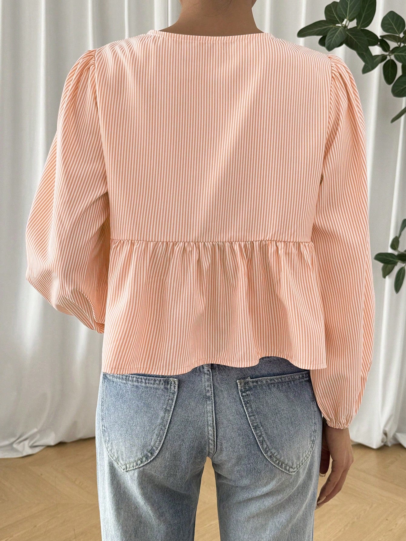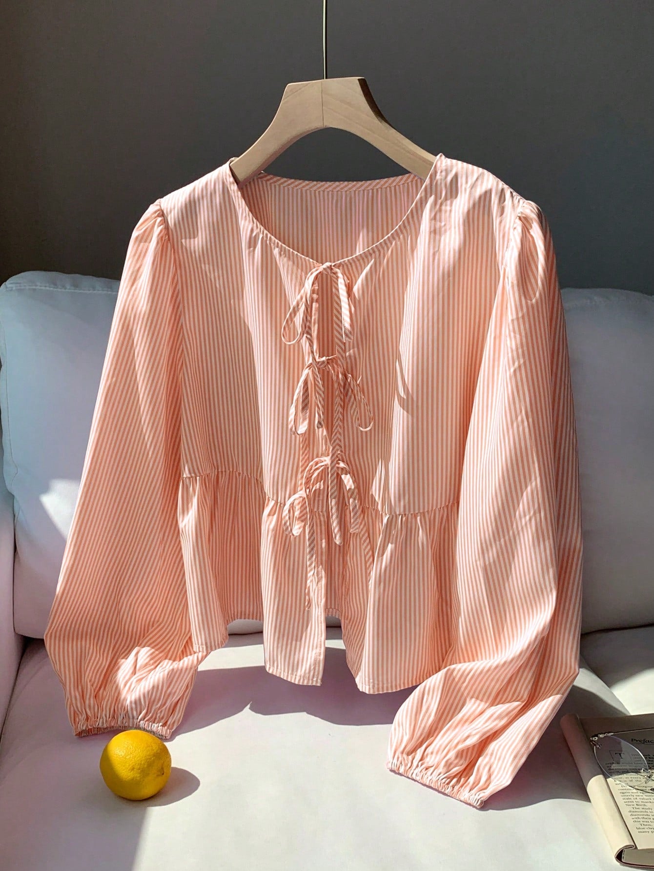 women Comfortcana Women Striped Tie-Up Layered Casual Pullover Doll Sweater