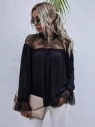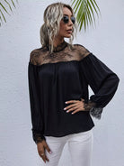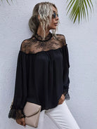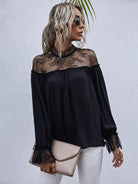 للنساء - بلوزة ذات أكمام واسعة من الدانتيل ذات عين متباينة
