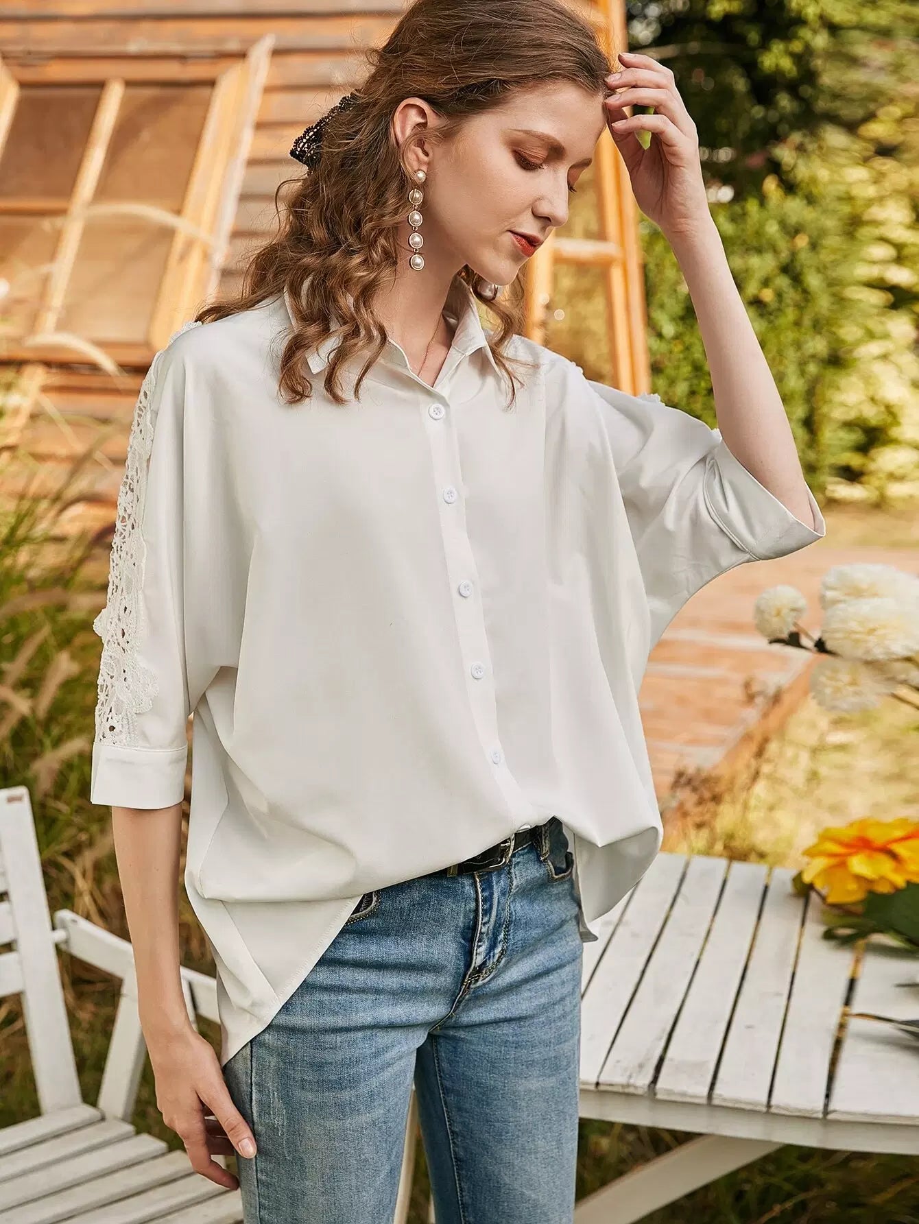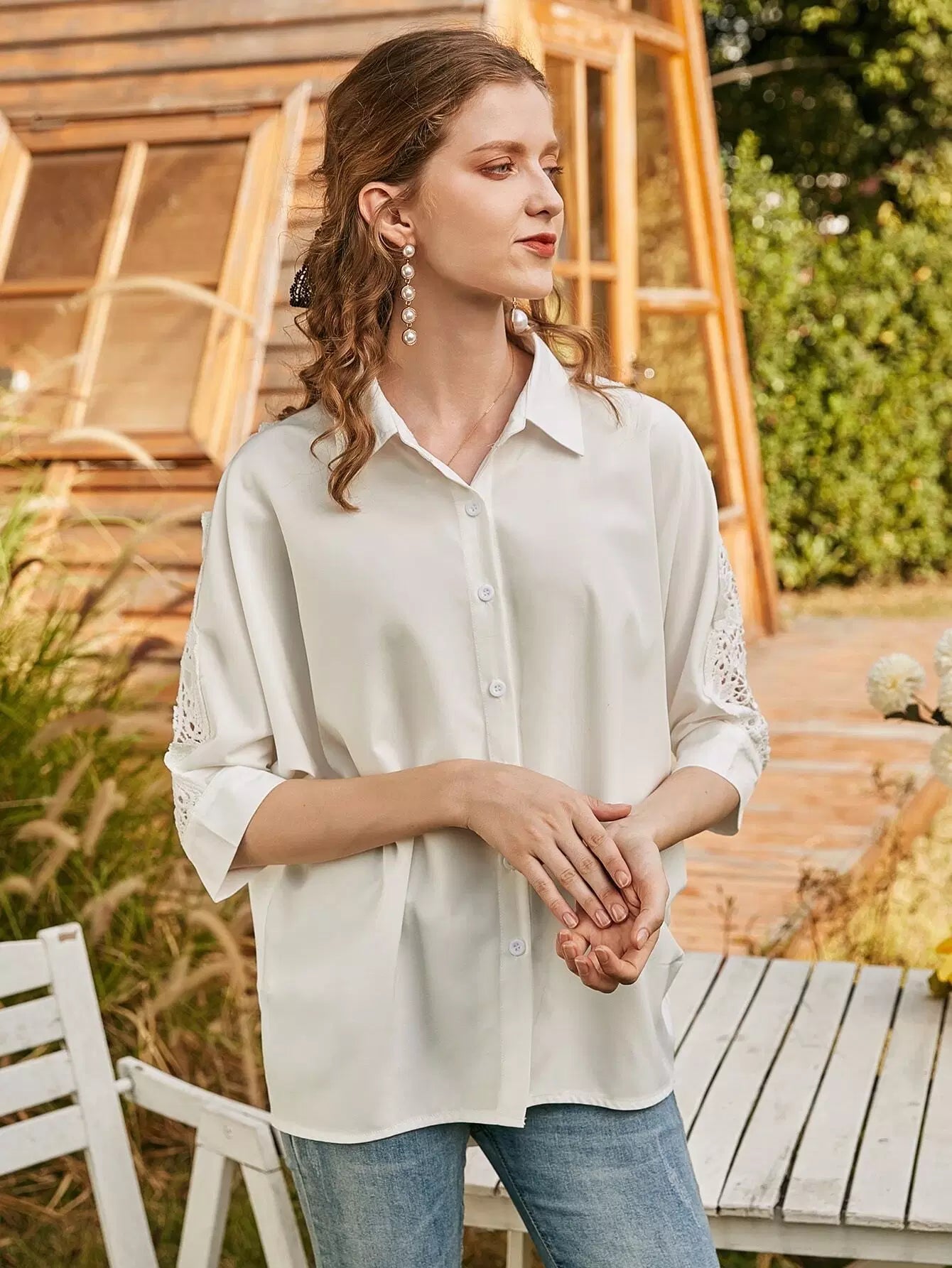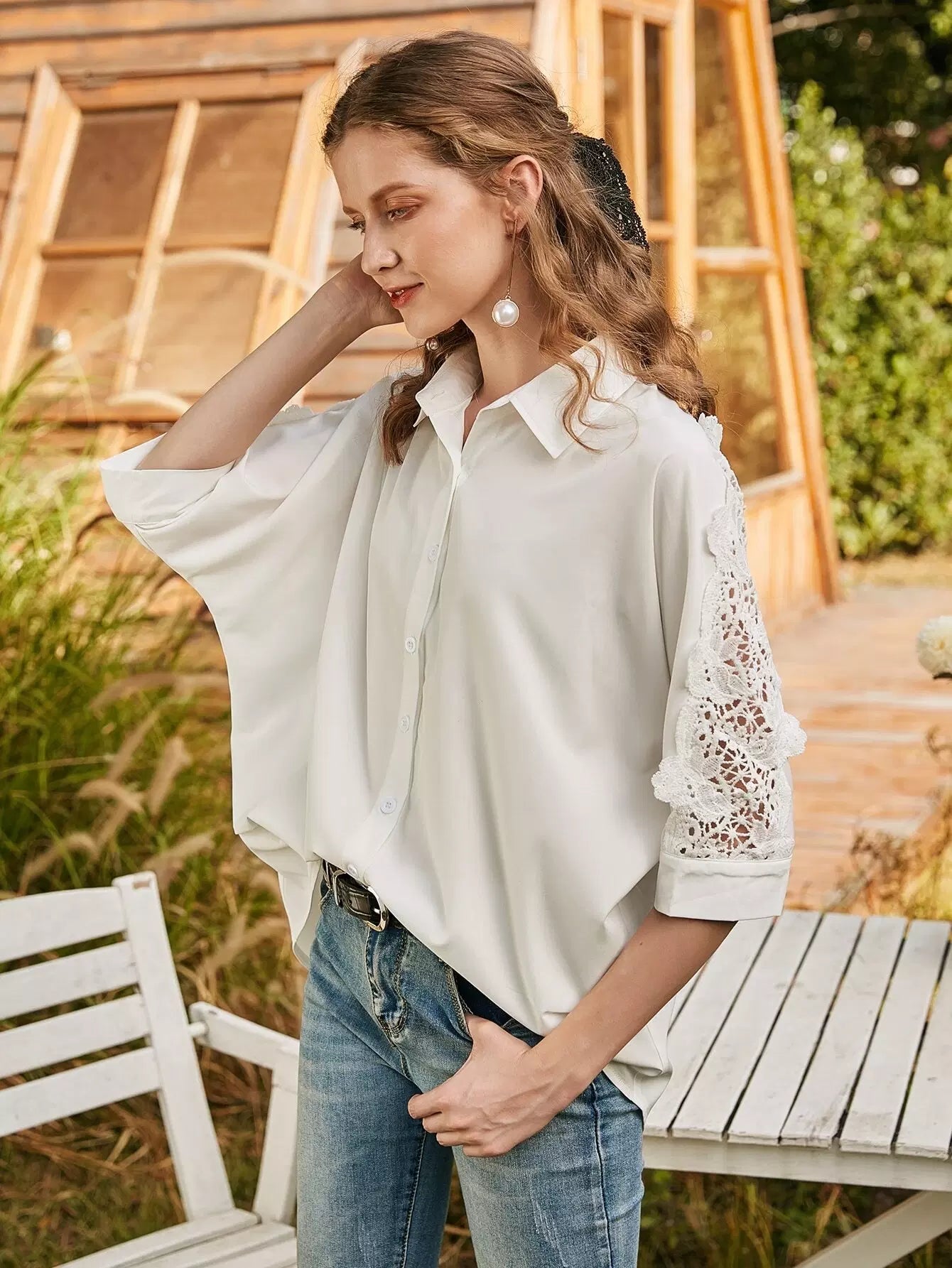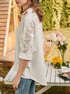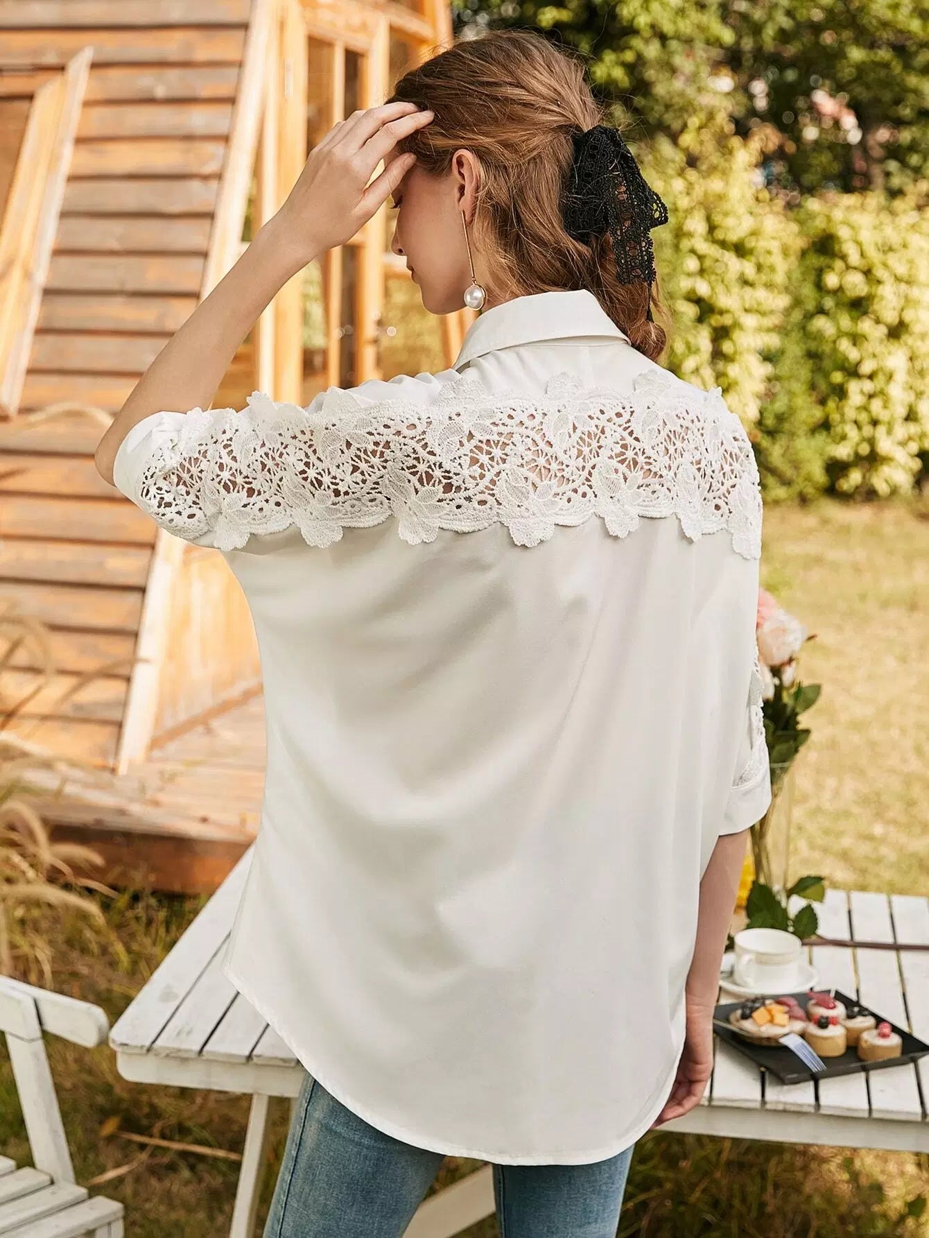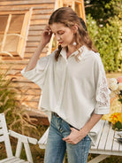 بلوزة من الدانتيل المخرّم بلون مغاير من الدانتيل العالي المنخفض