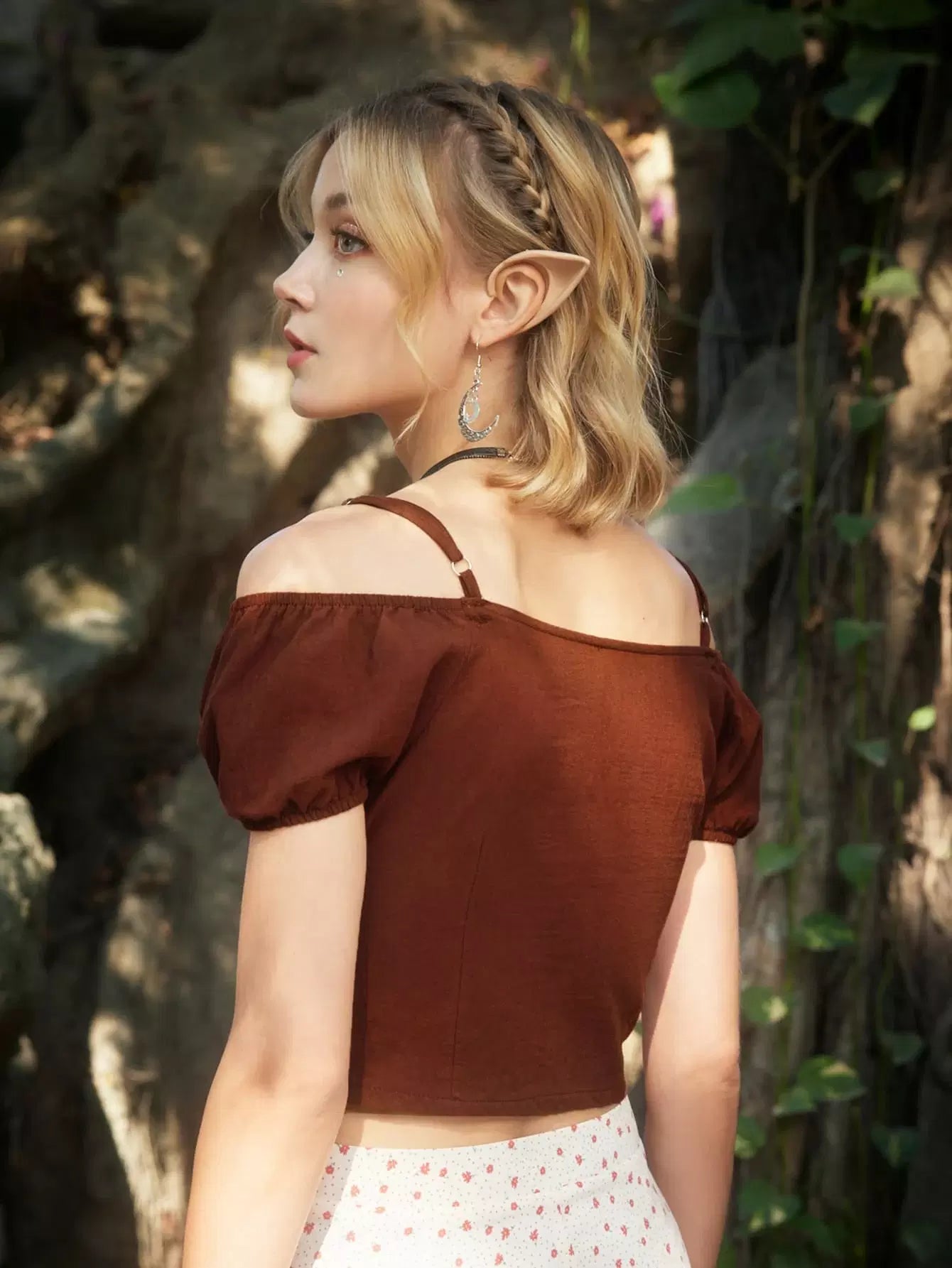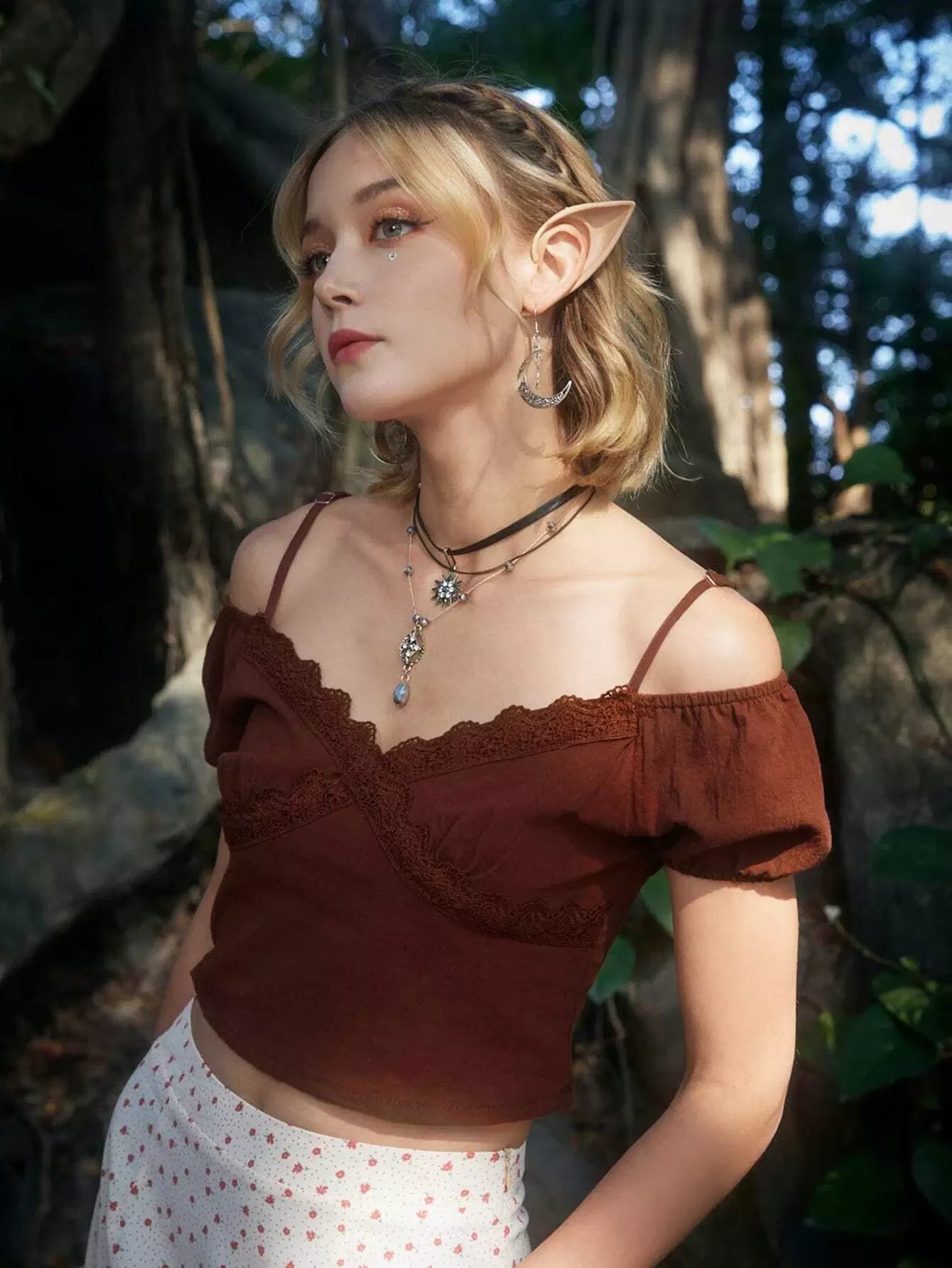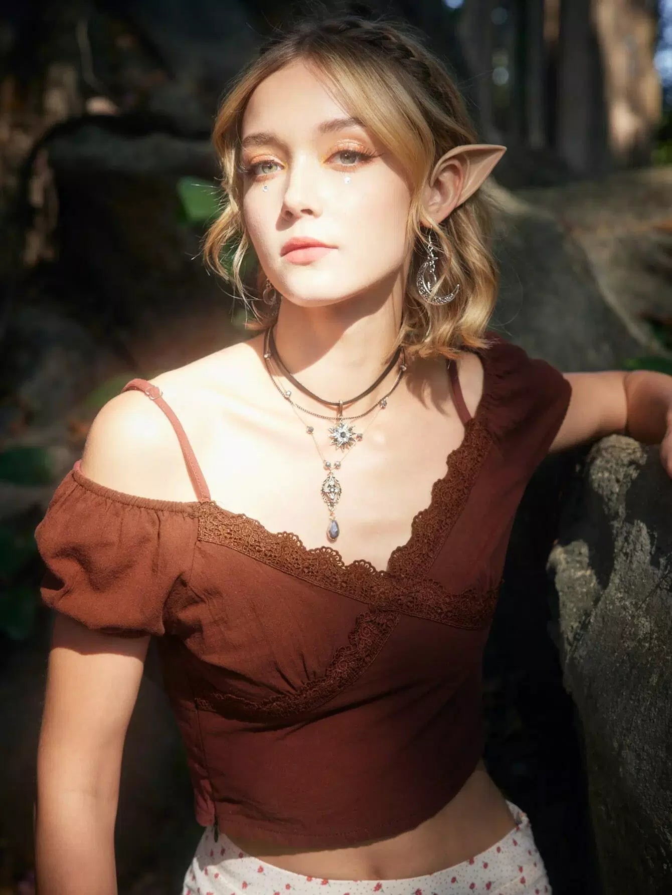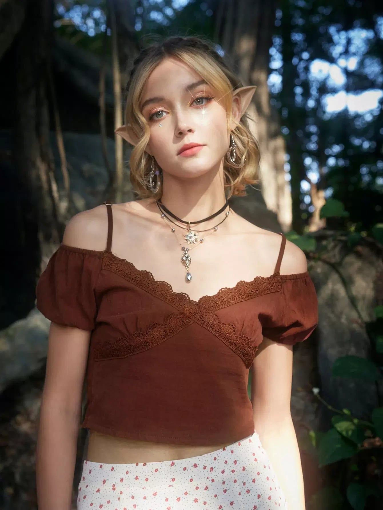 بلوزة بأكتاف باردة من الدانتيل بلون مغاير من الدانتيل