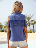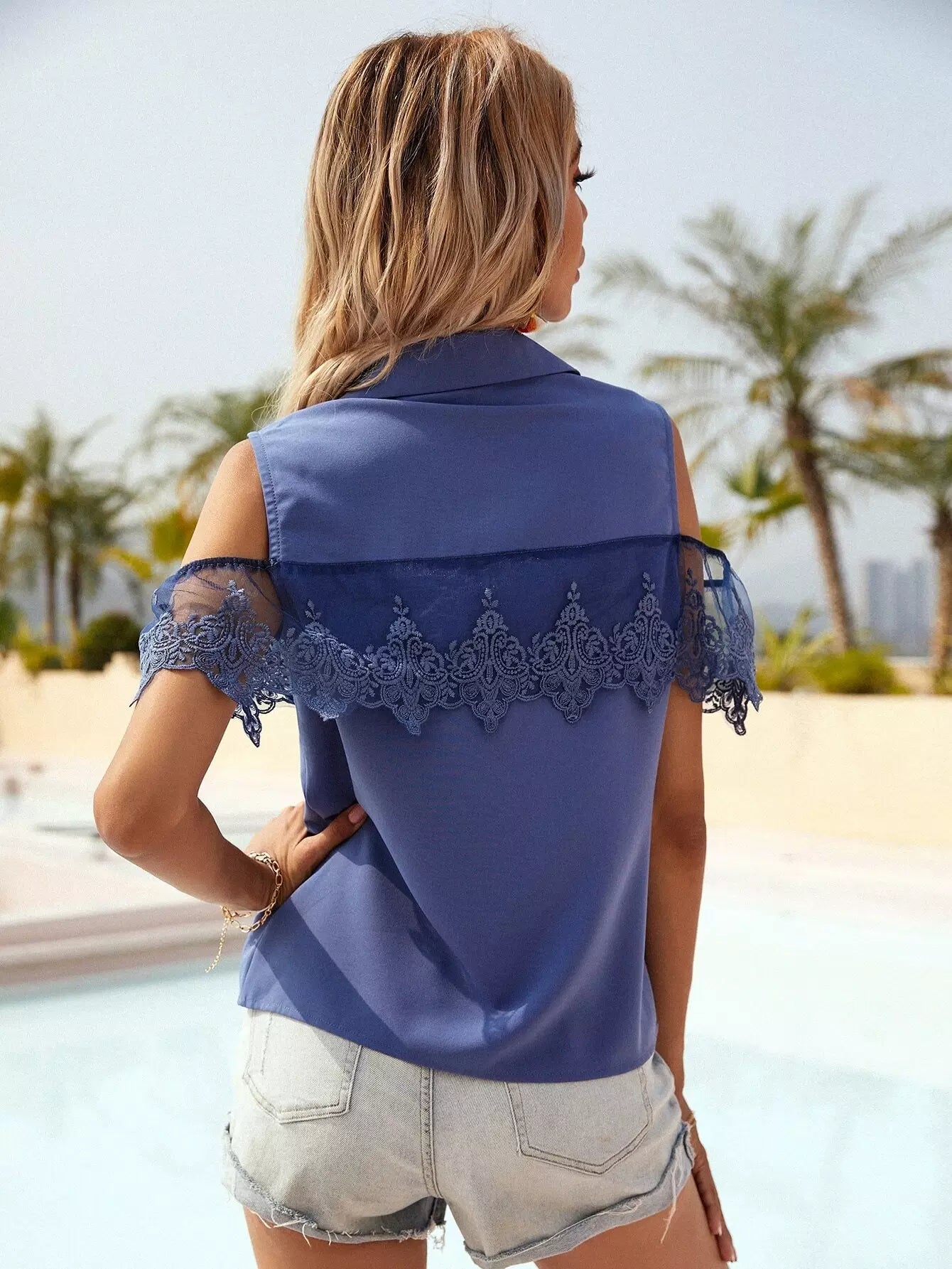 بلوزة بأكتاف باردة من الدانتيل بلون مغاير من الدانتيل