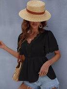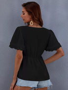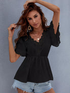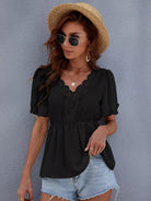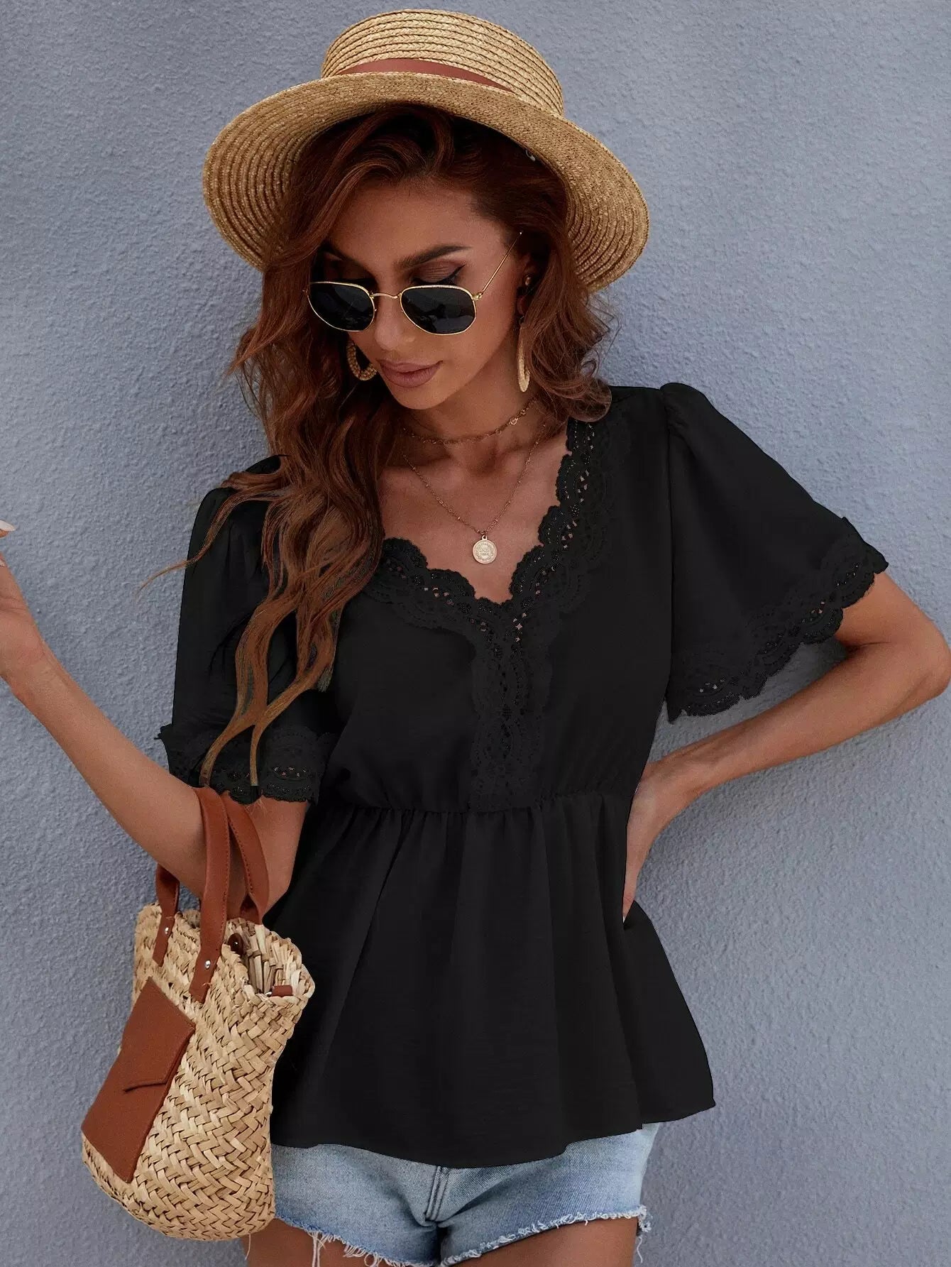 بلوزة بحاشية دانتيل مكشكشة من الدانتيل بلون مغاير