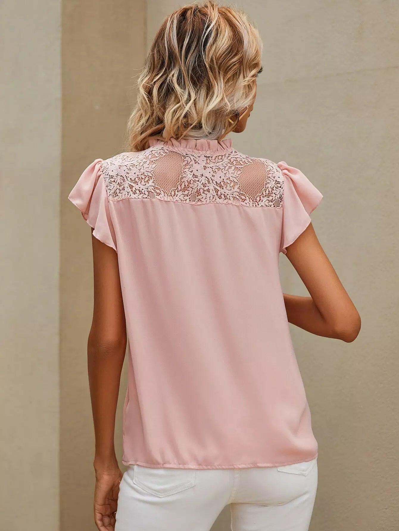 بلوزة بأكمام من الدانتيل بربطة عنق فراشة بلون مغاير