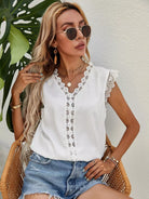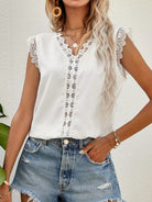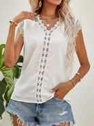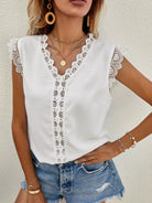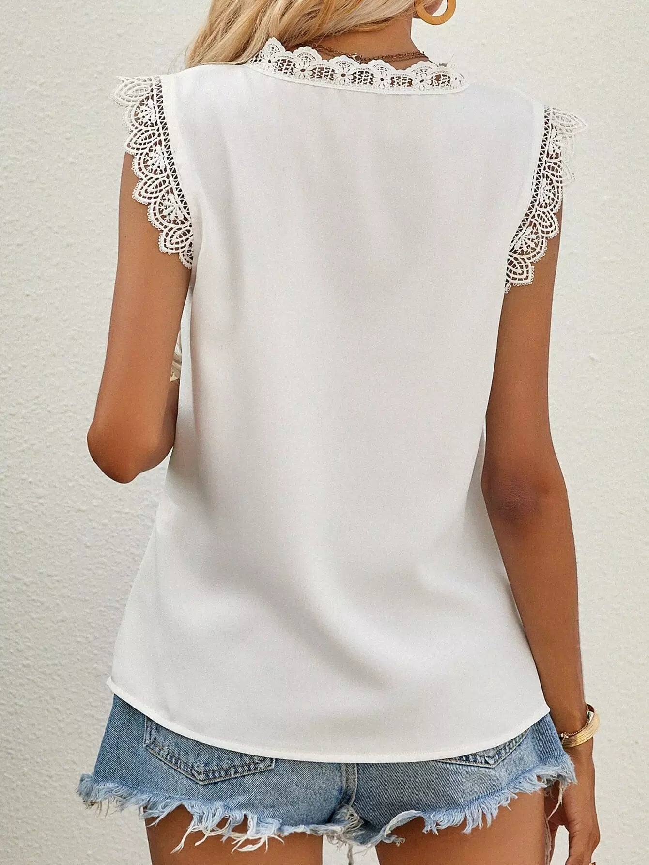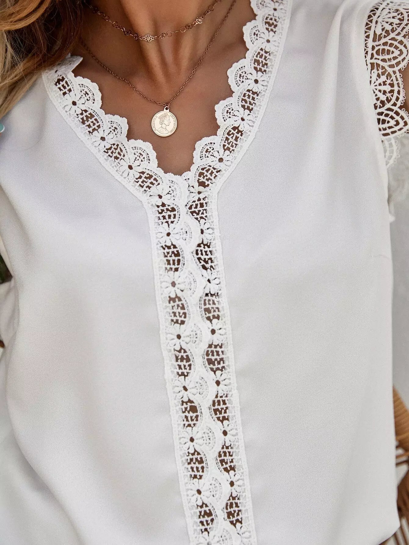 بلوزة بياقة على شكل V دانتيل بلون مغاير