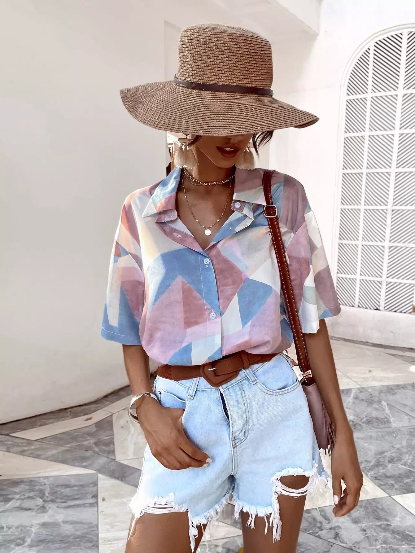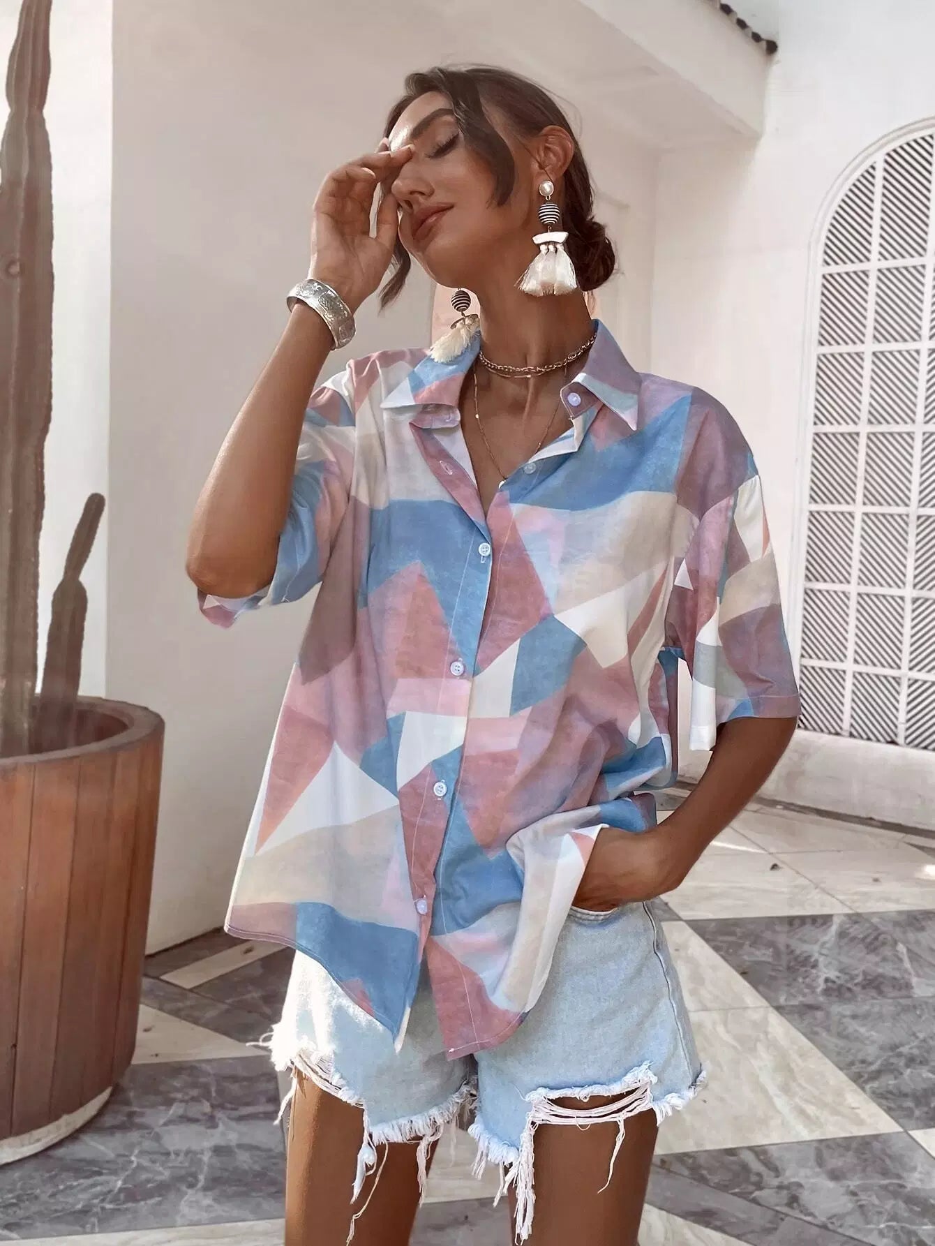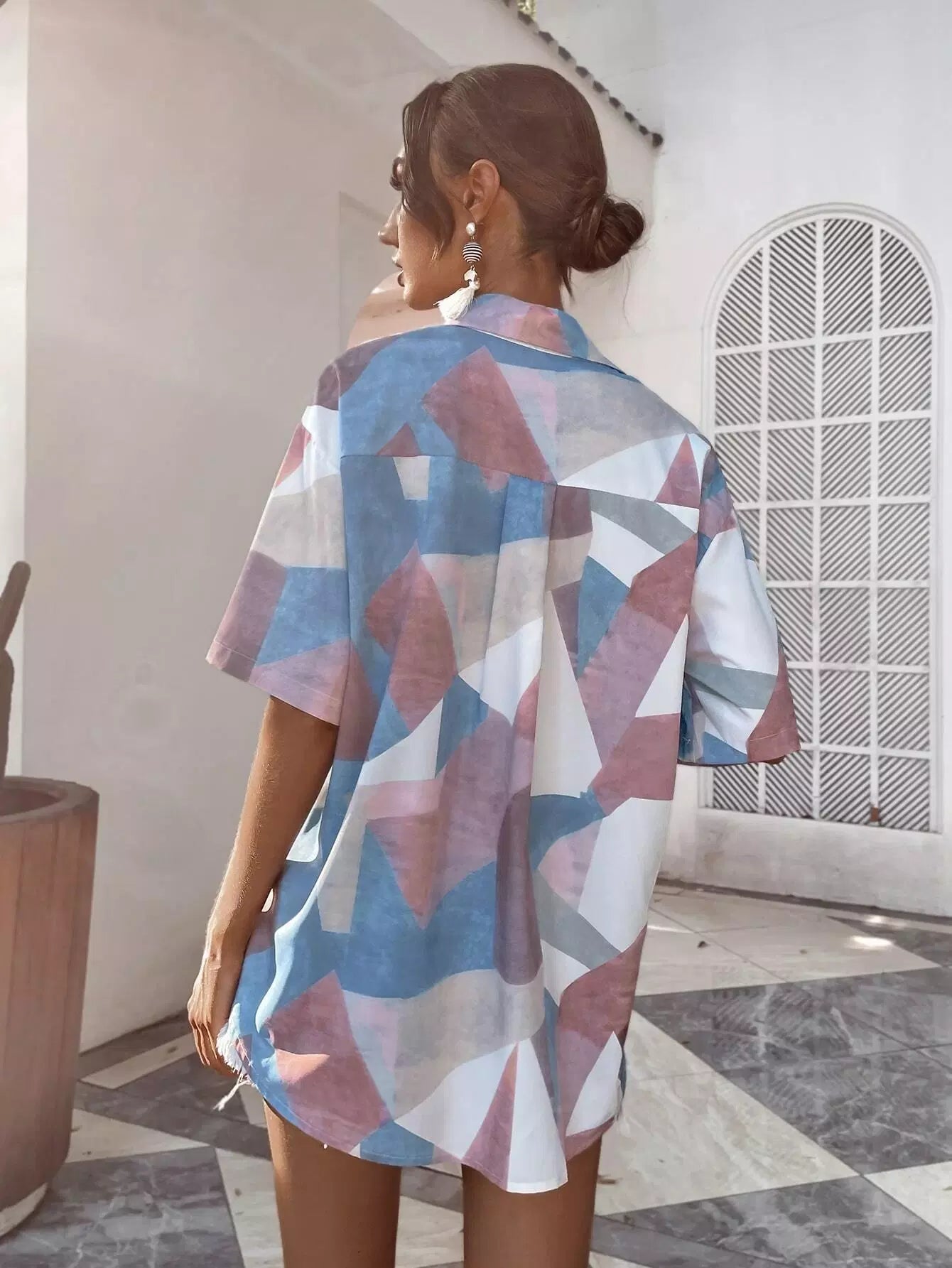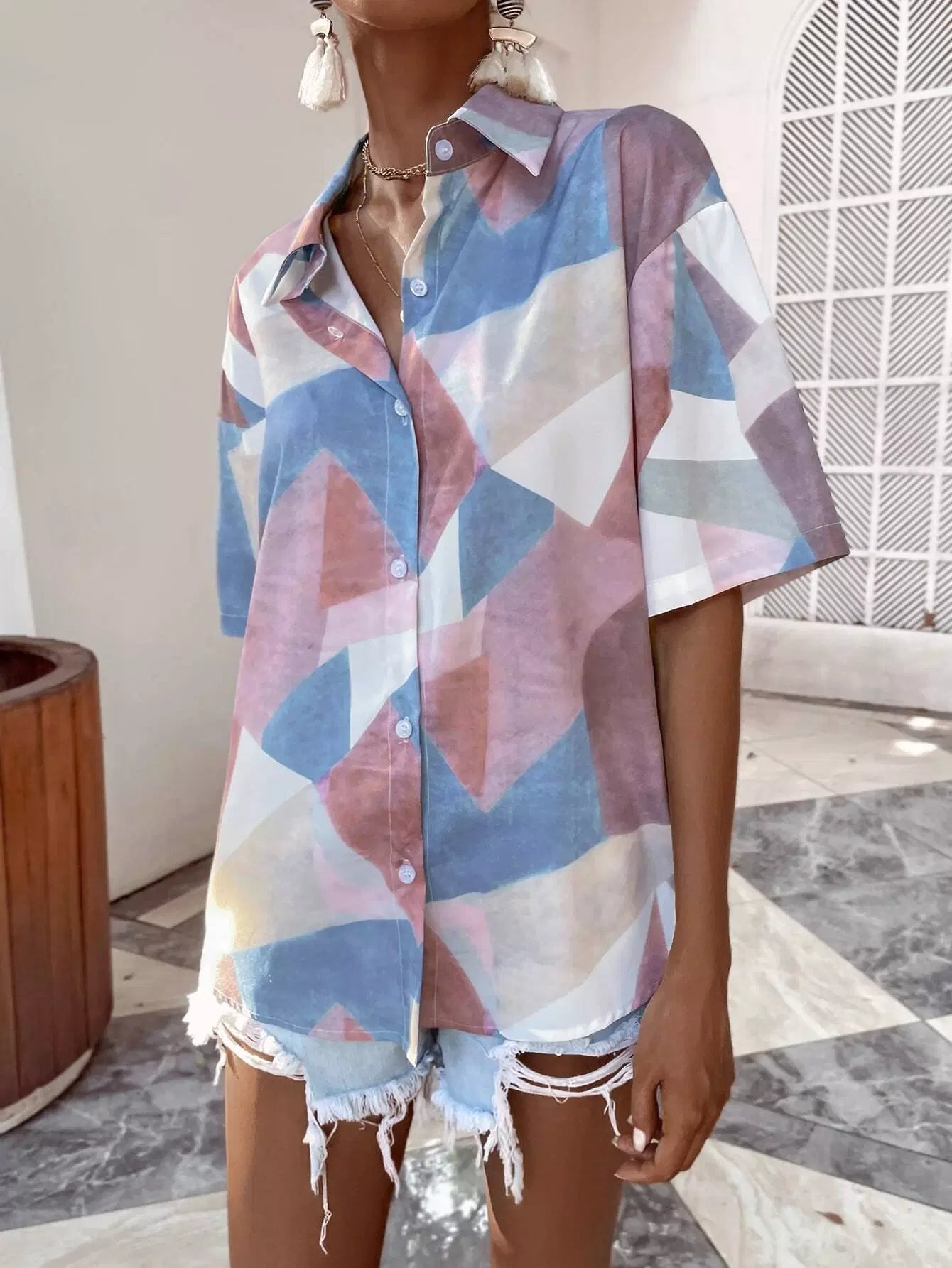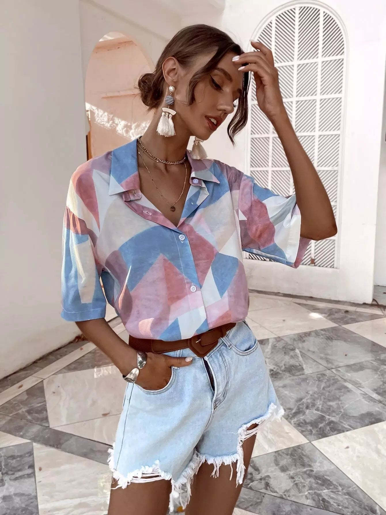 قميص بقص وخياطة بأزرار أمامية منسدلة الكتف بأزرار