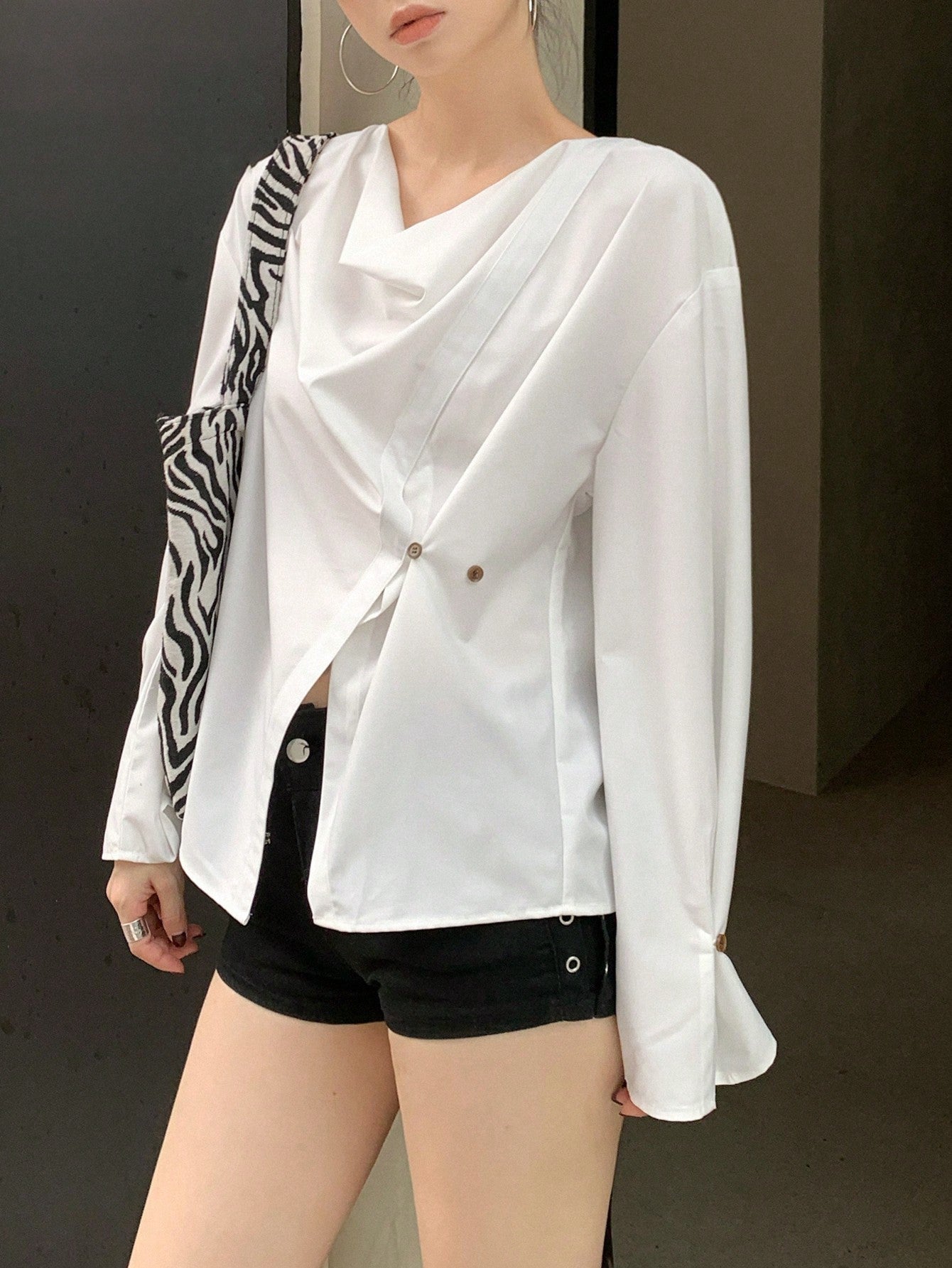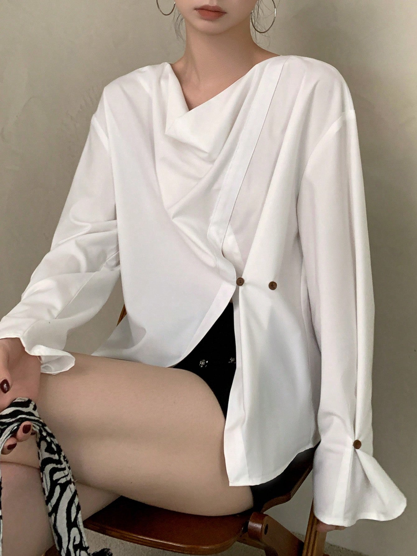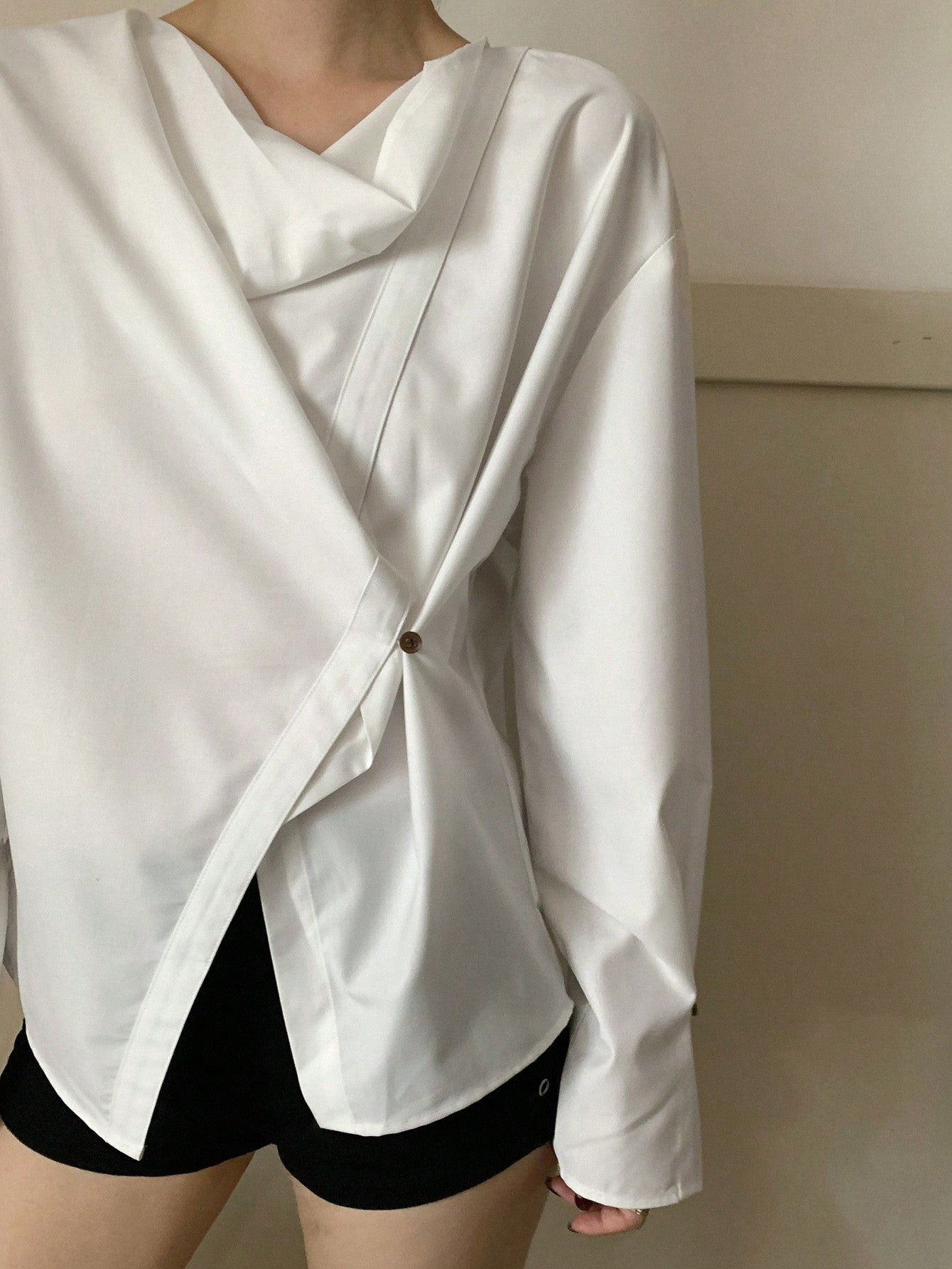 DAZY 1pc Women's Asymmetric Draped Collar Long Sleeve Blouse,Ruffle