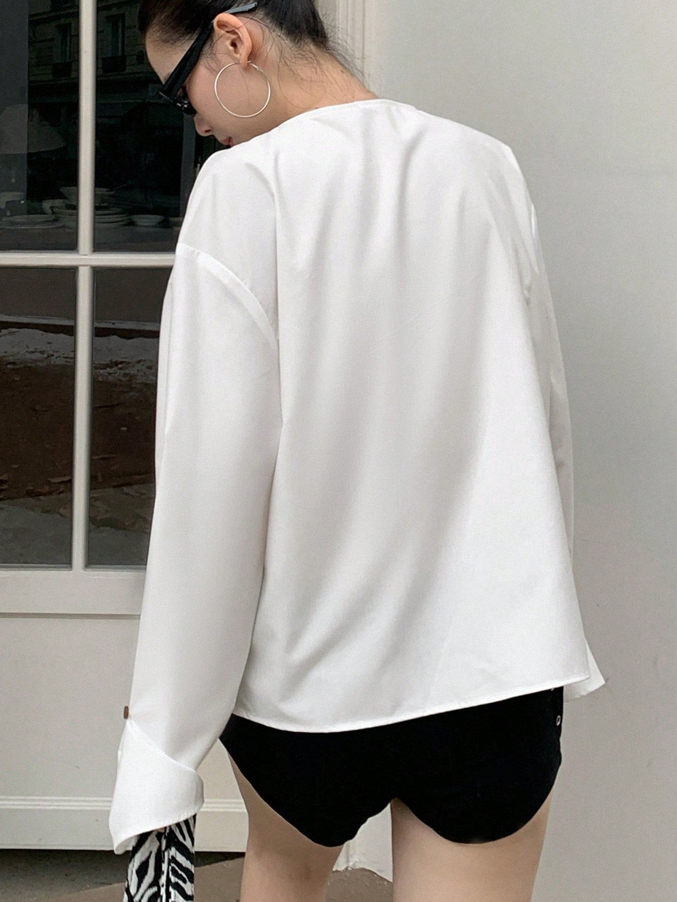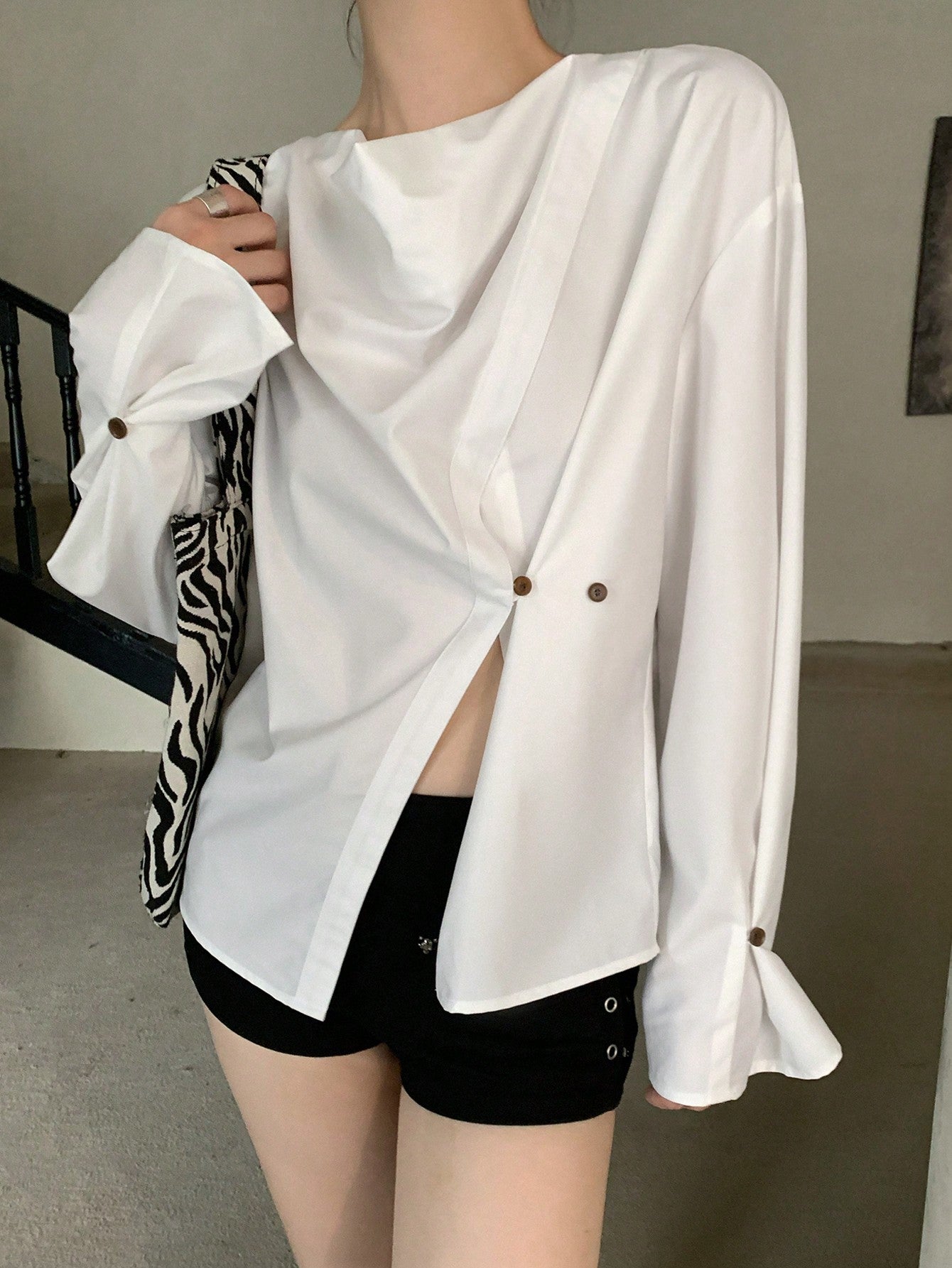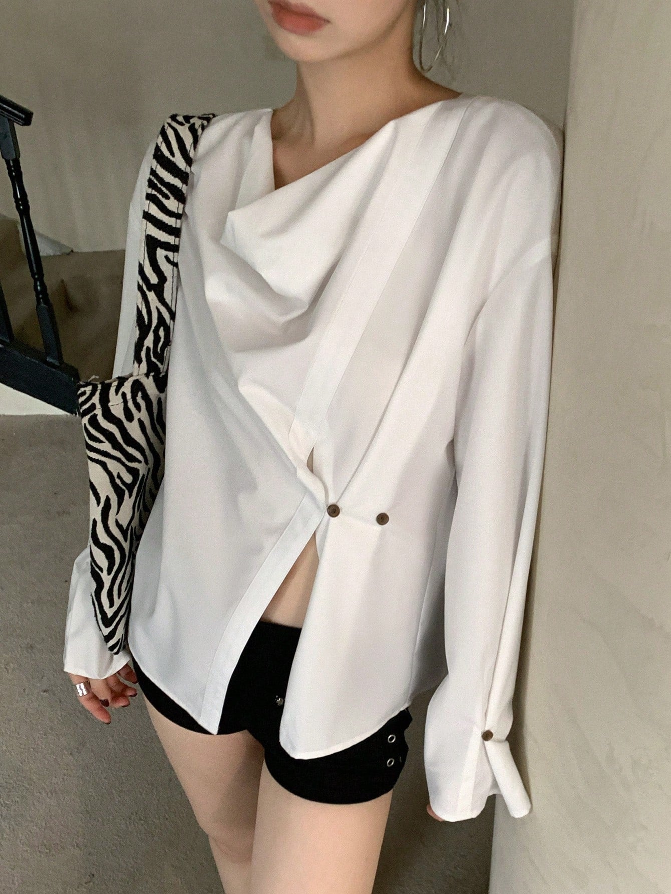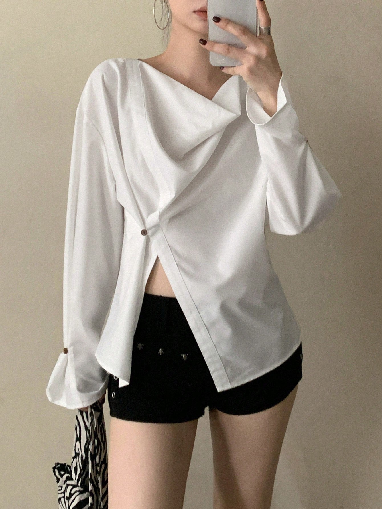DAZY 1pc Women's Asymmetric Draped Collar Long Sleeve Blouse,Ruffle