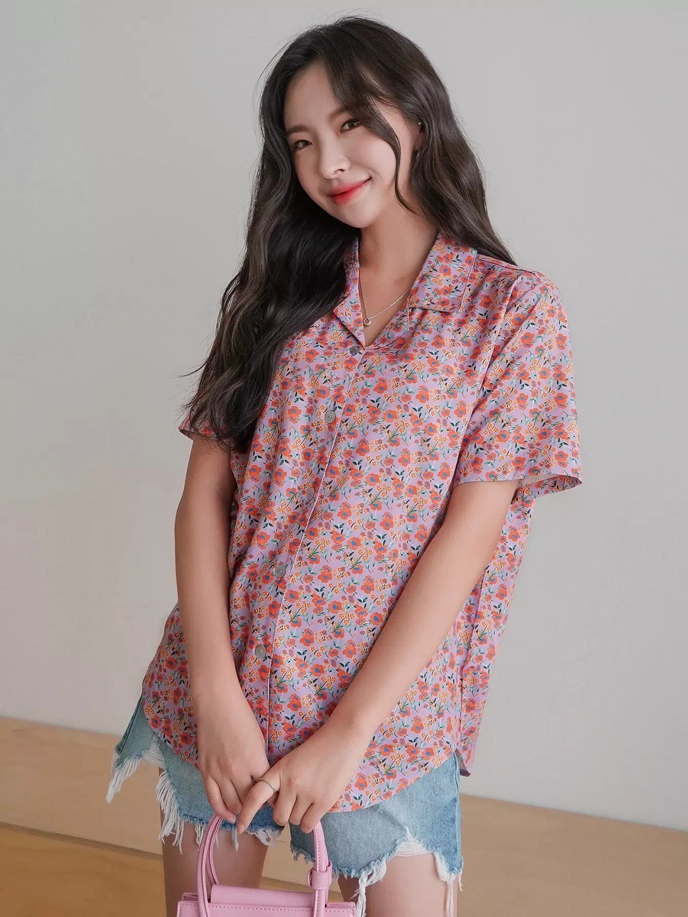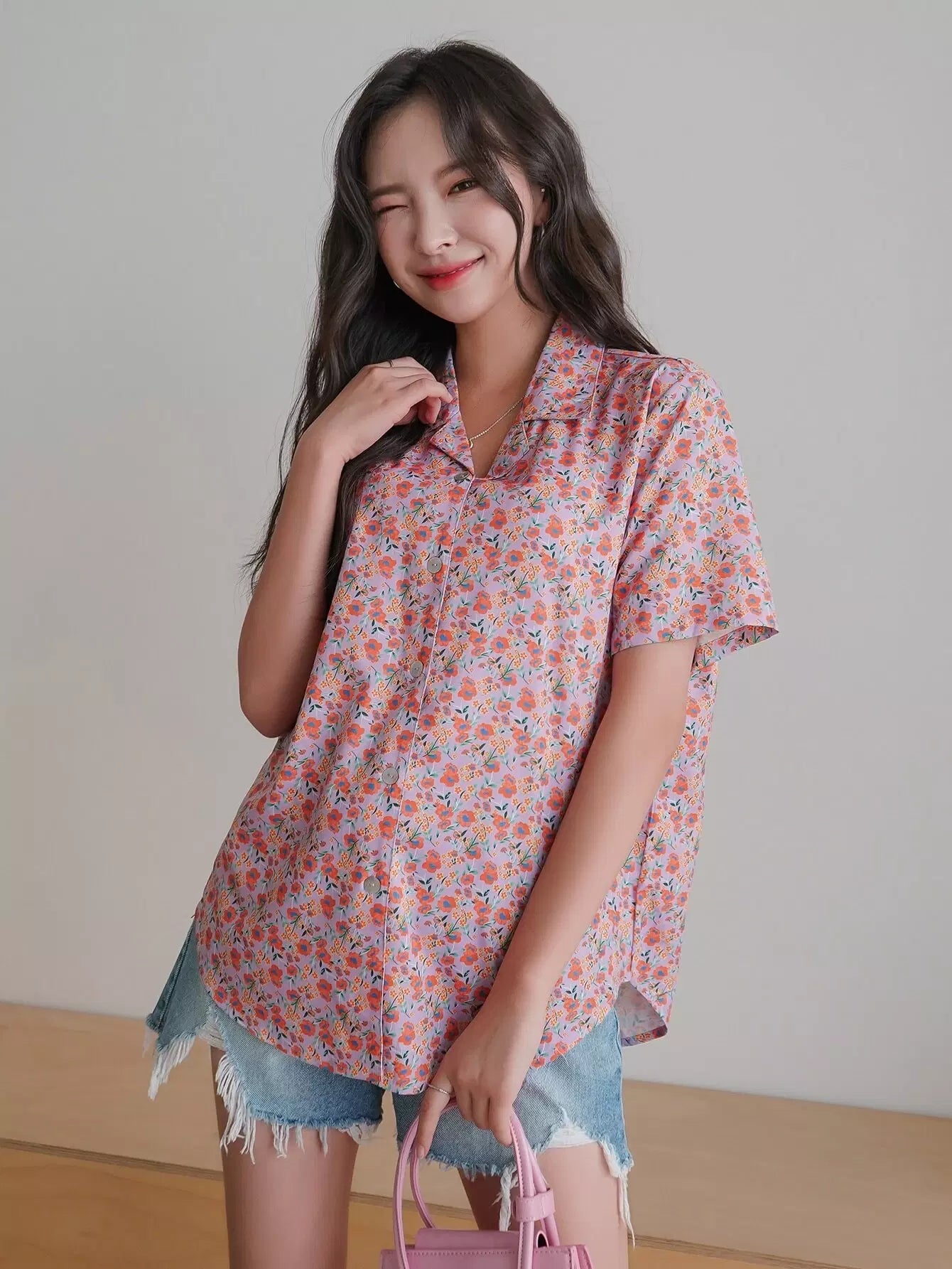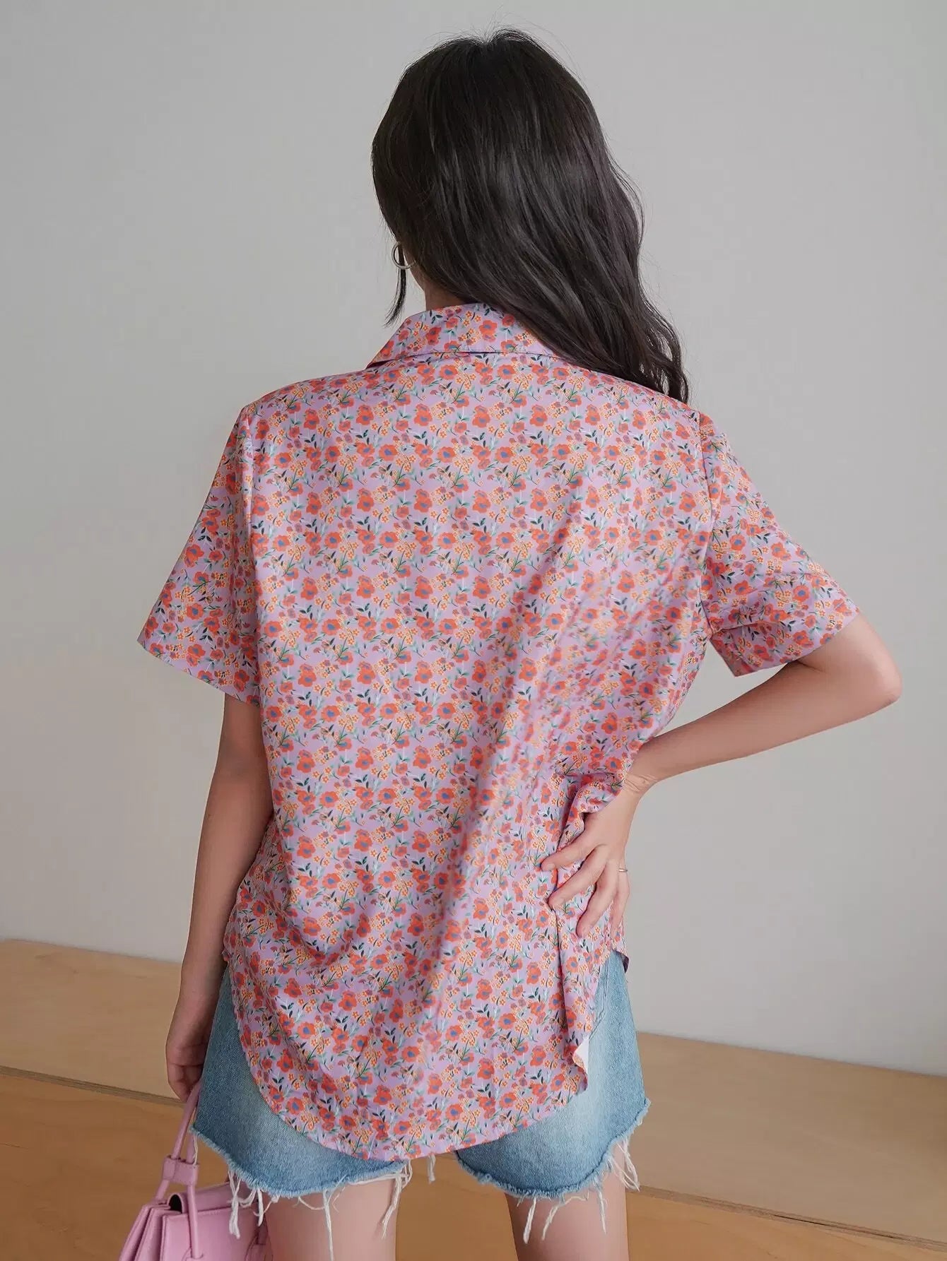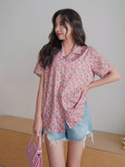 بلوزة ديتسي بأزرار زهرية بأزرار منسدلة