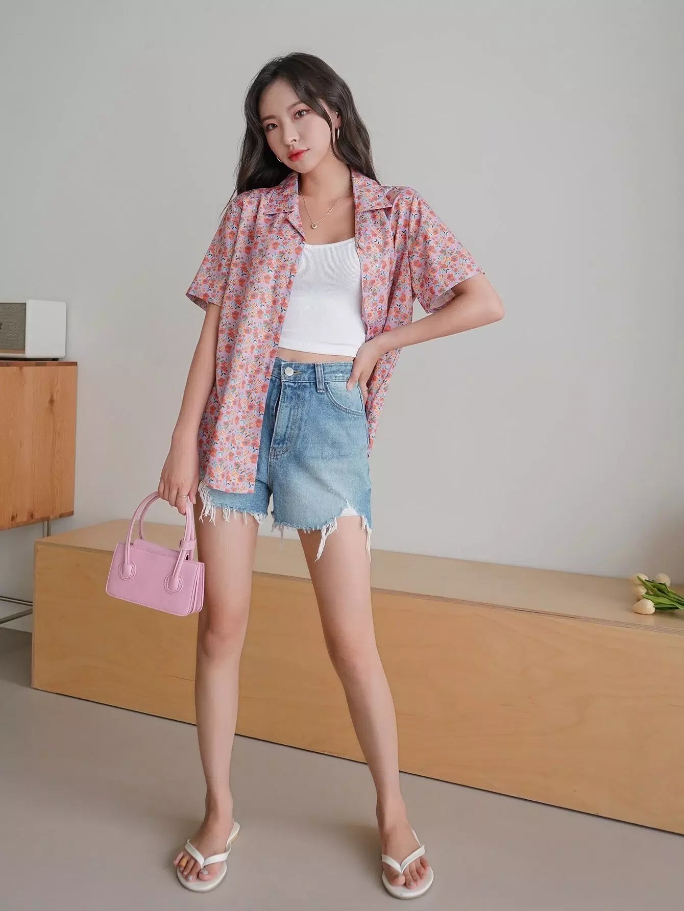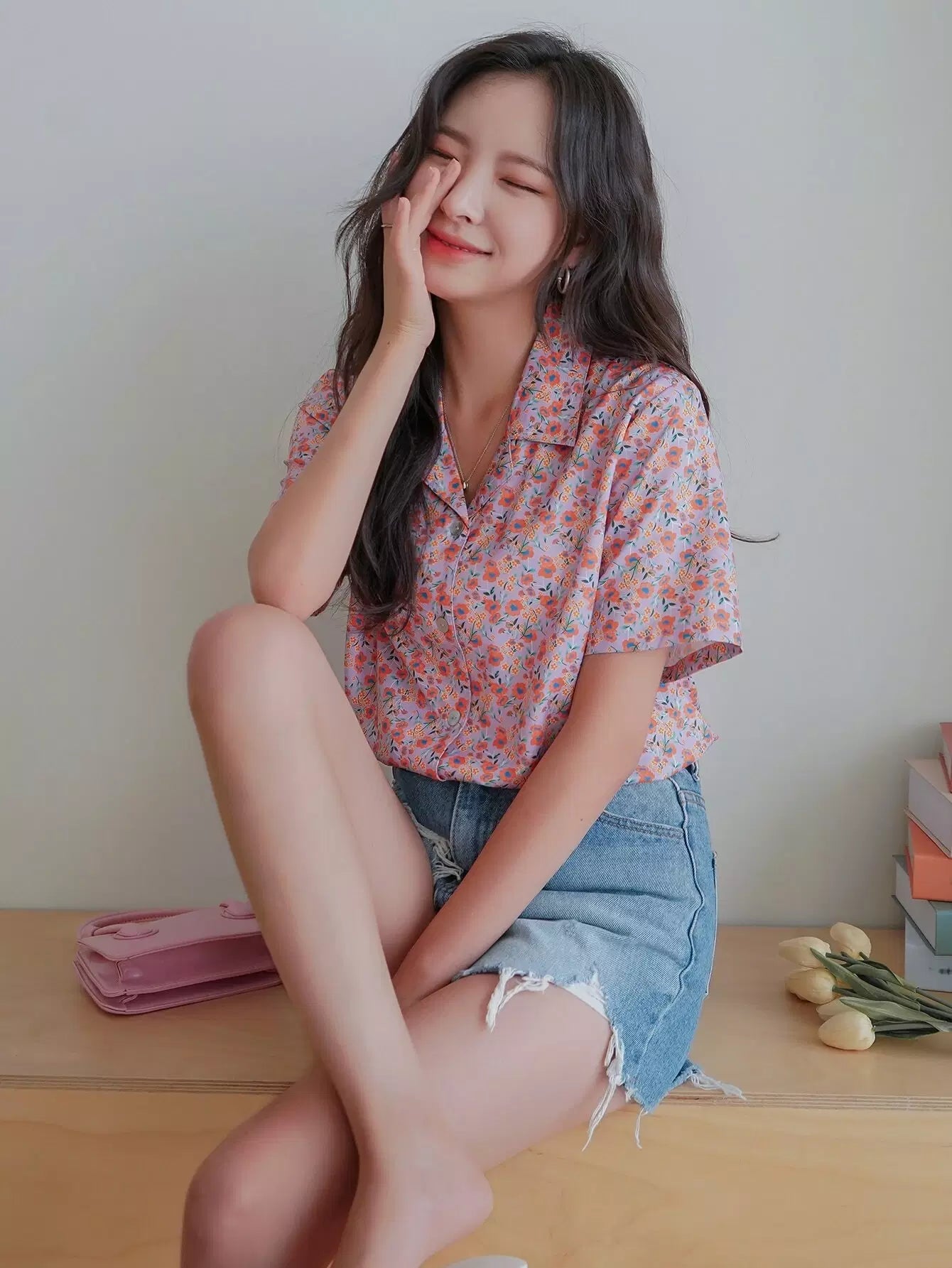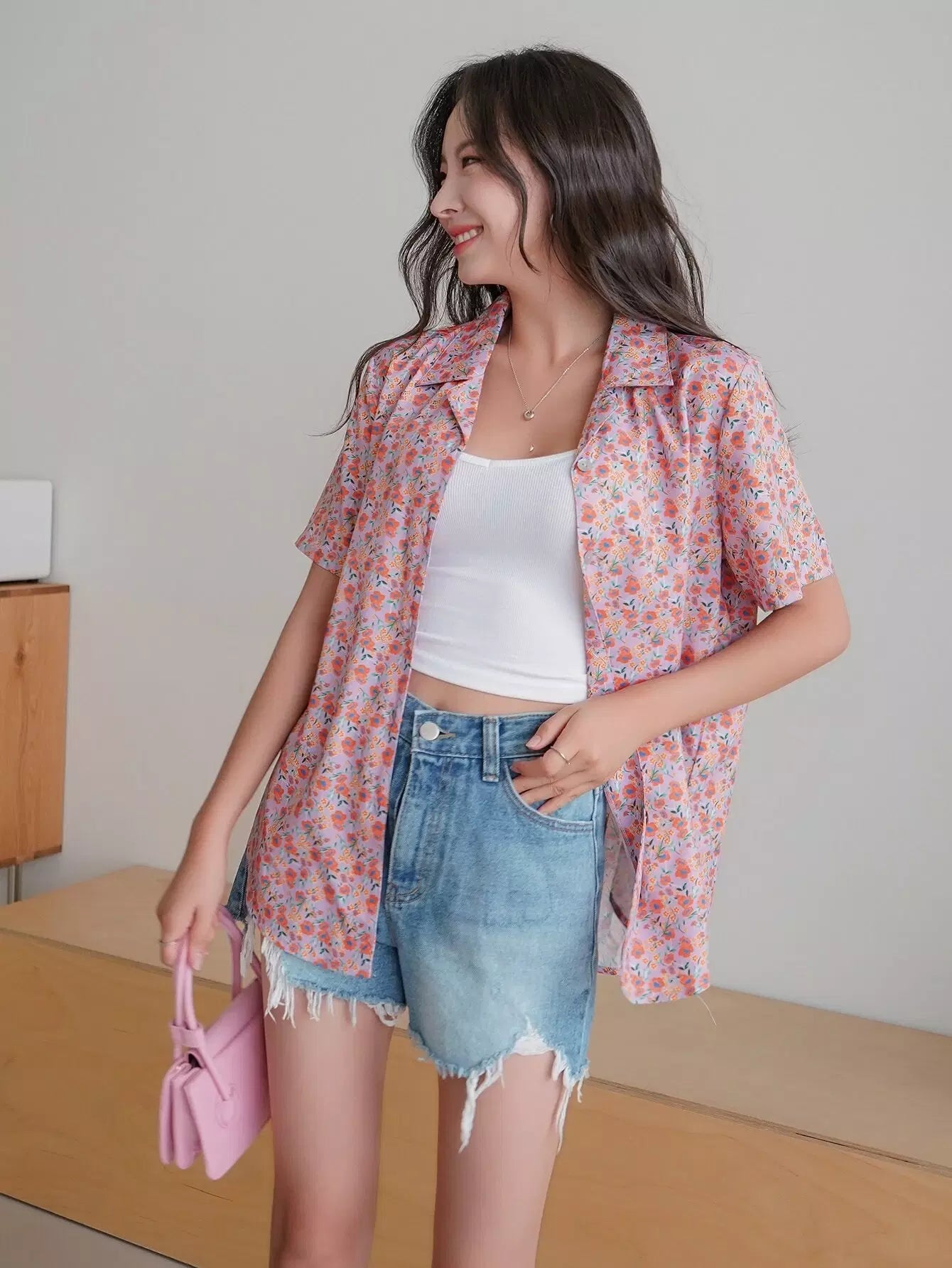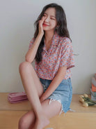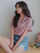 بلوزة ديتسي بأزرار زهرية بأزرار منسدلة