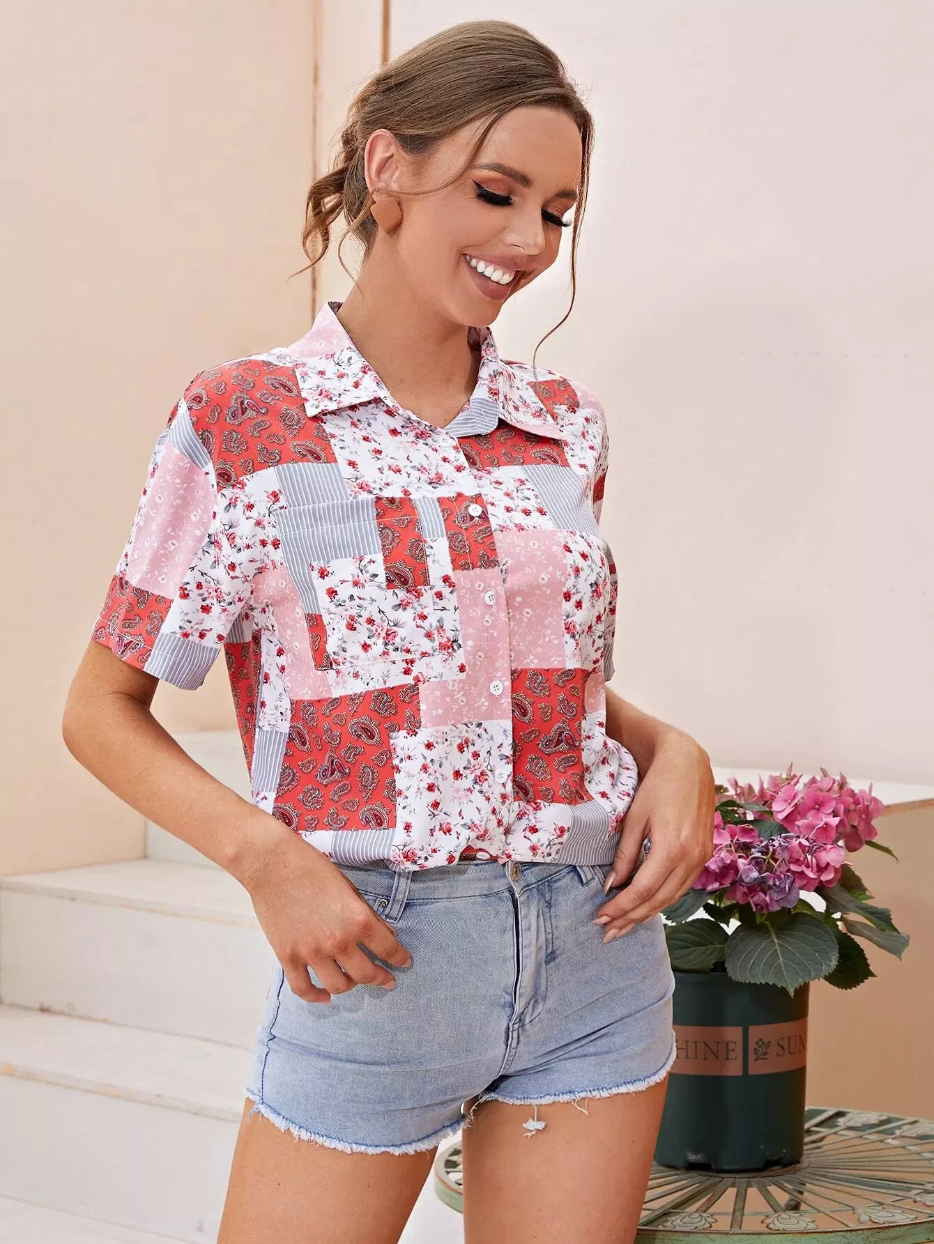 قميص مرقع بطبعة زهور مرقعة ديتسي