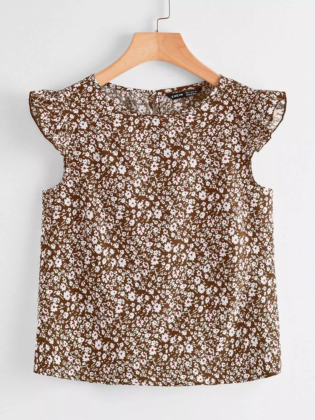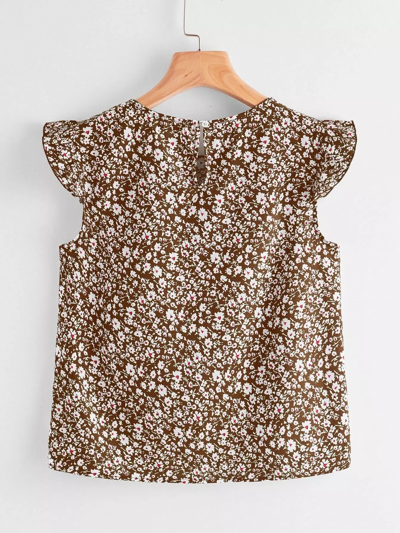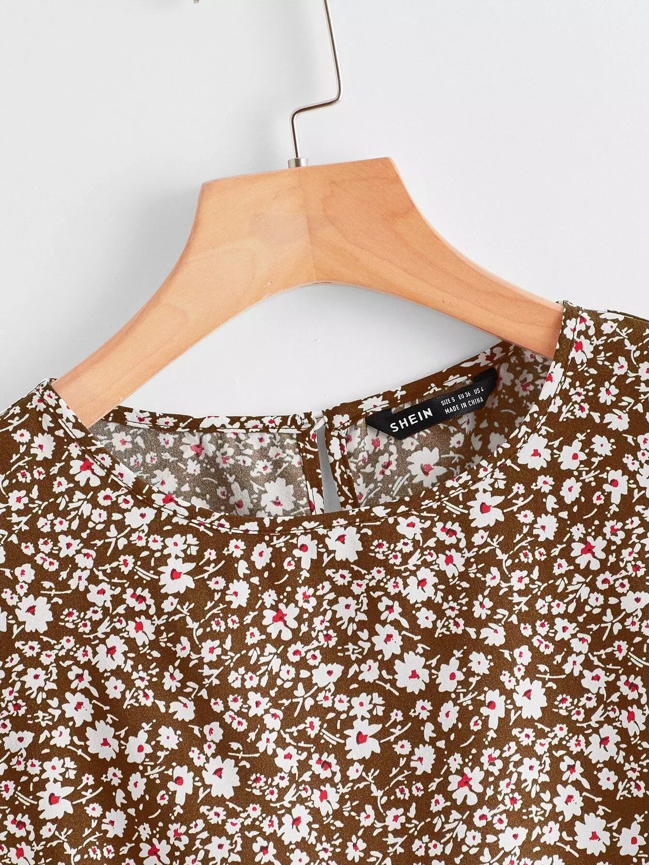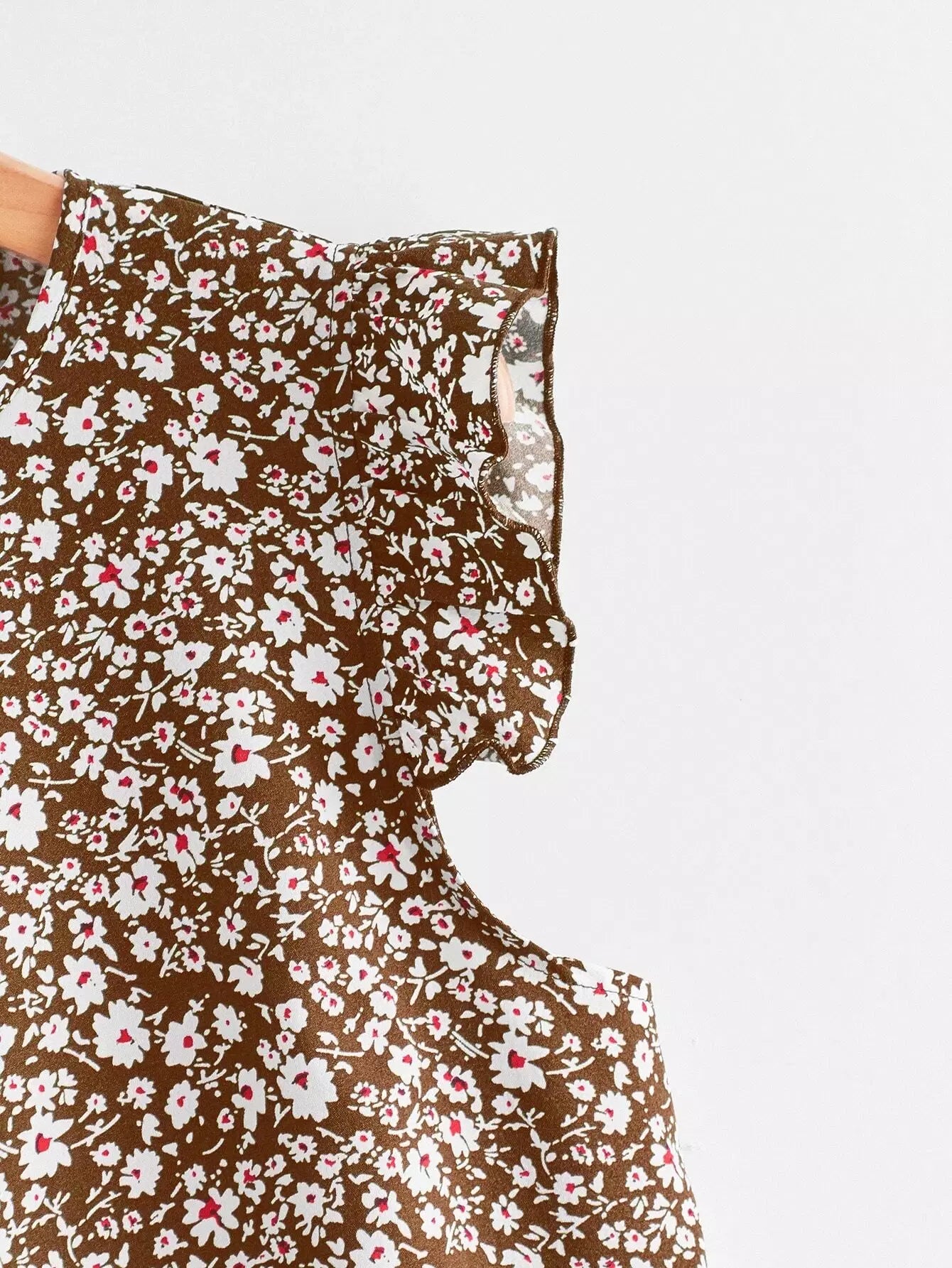 بلوزة ديتسي بطبعة زهور مكشكشة مزينة بالكشكش