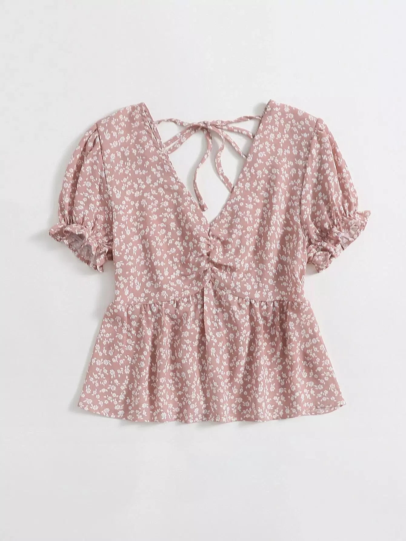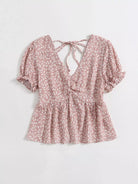 بلوزة ديتسي بيبلوم مكشكشة مزينة بالزهور