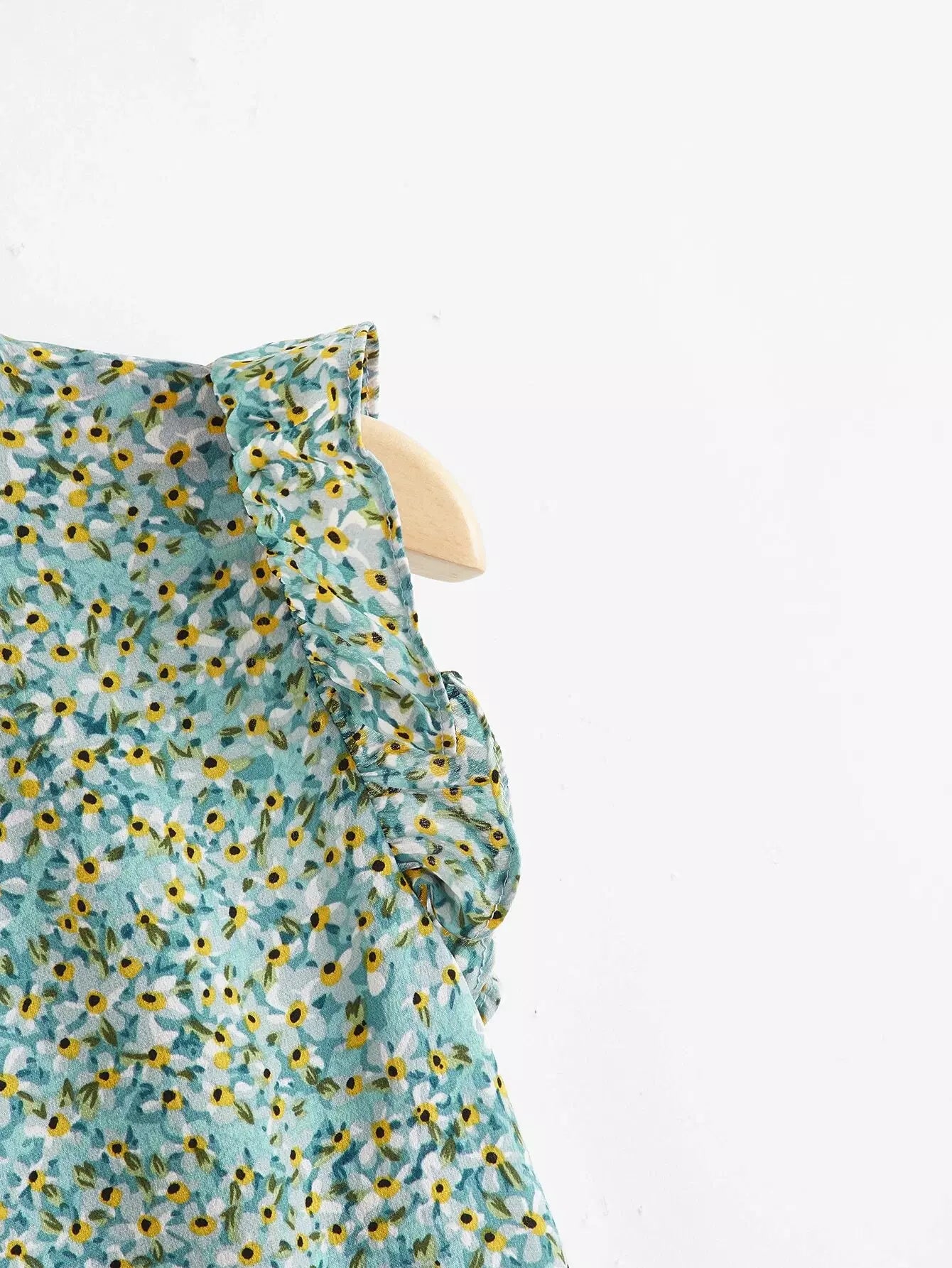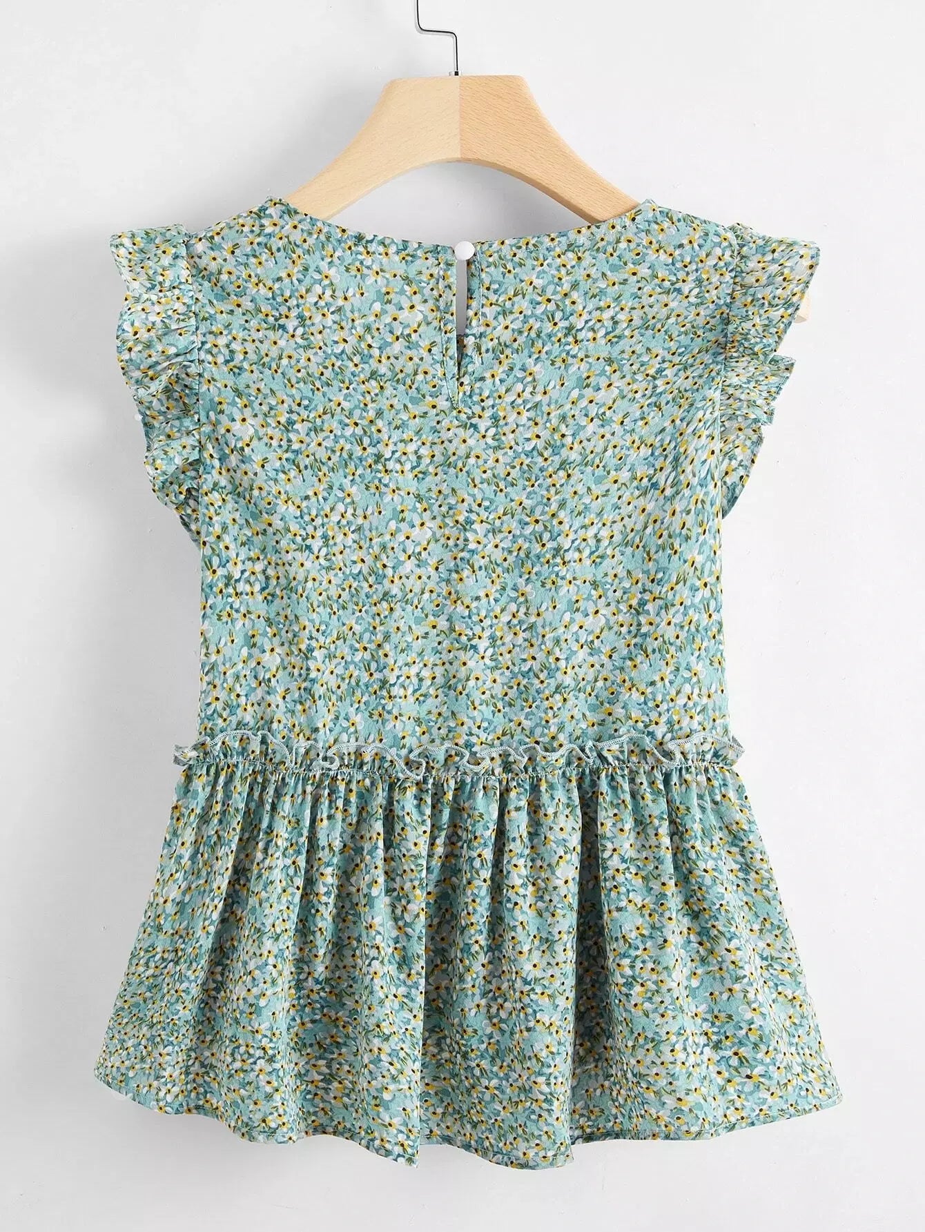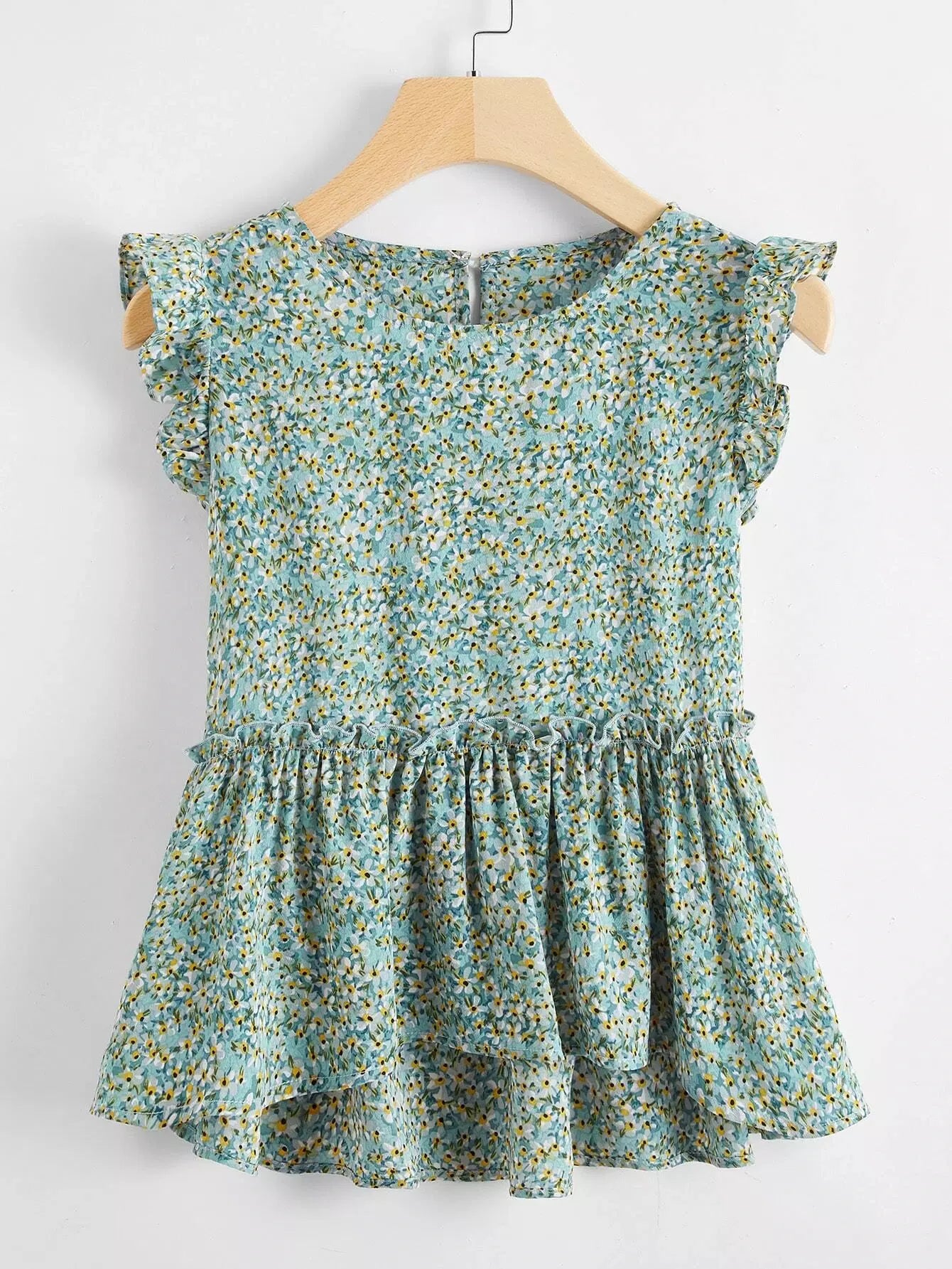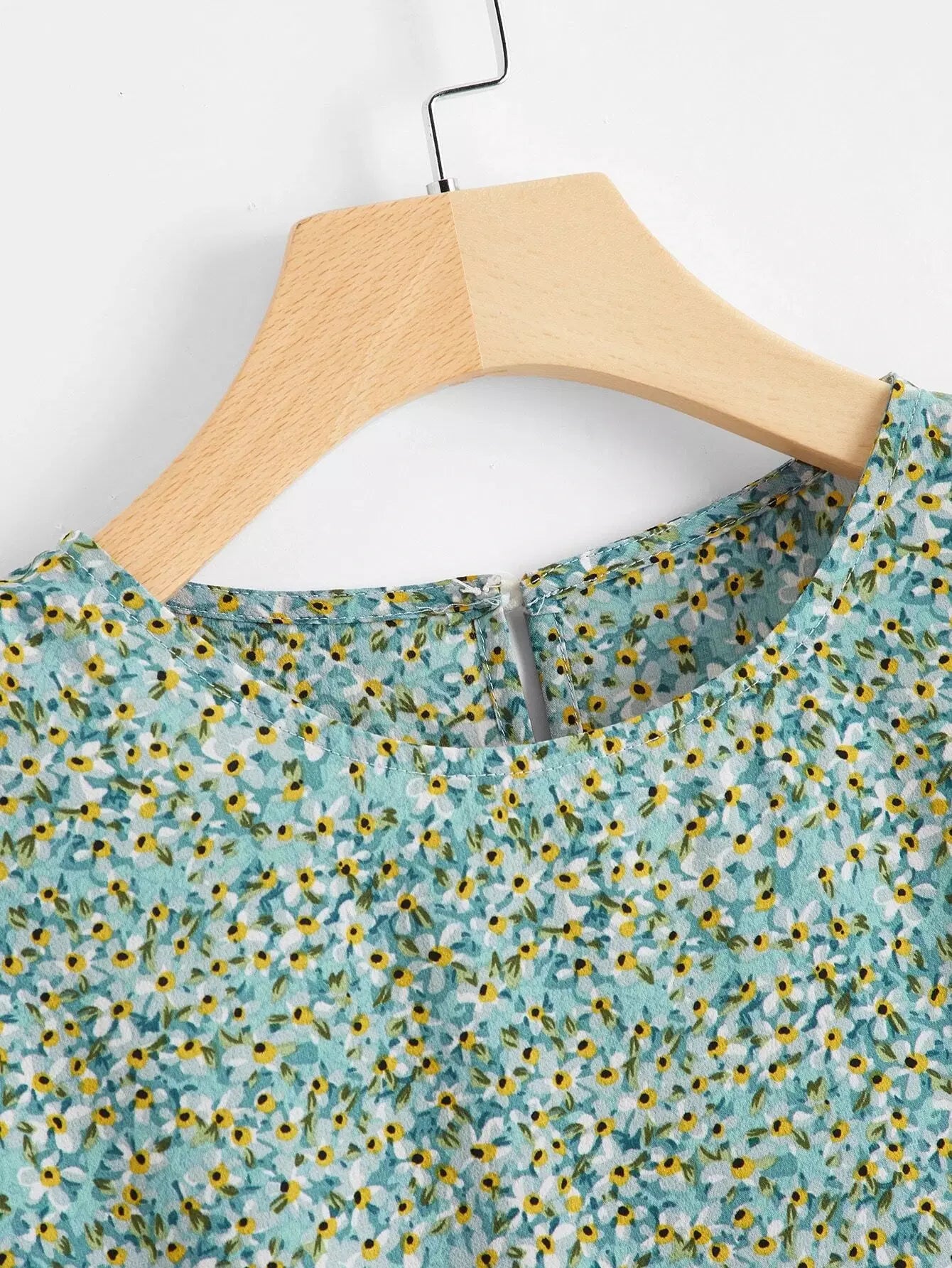 النساء - بلوزة بحاشية مكشكشة على شكل زهور من Ditsy