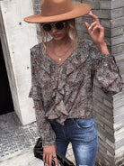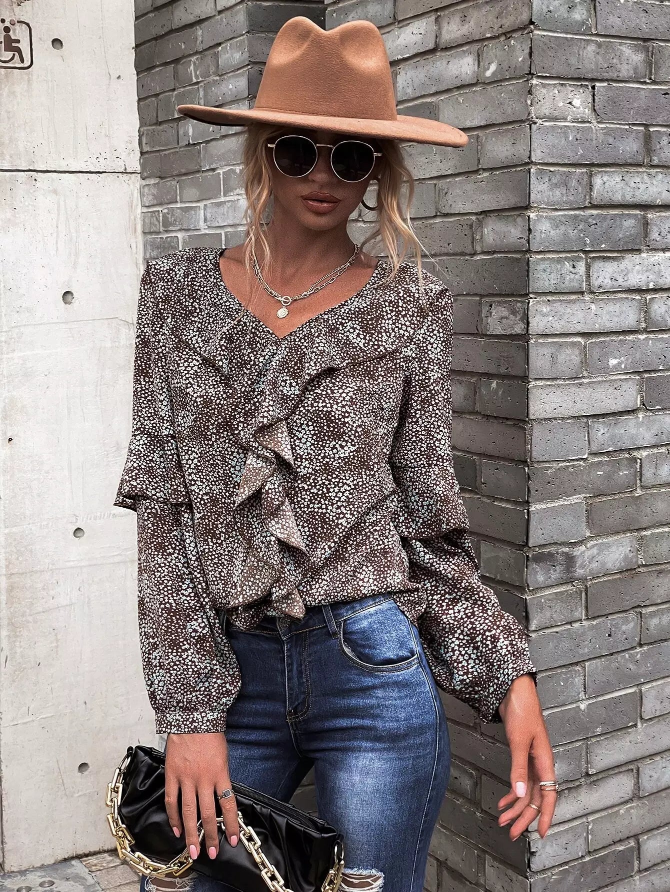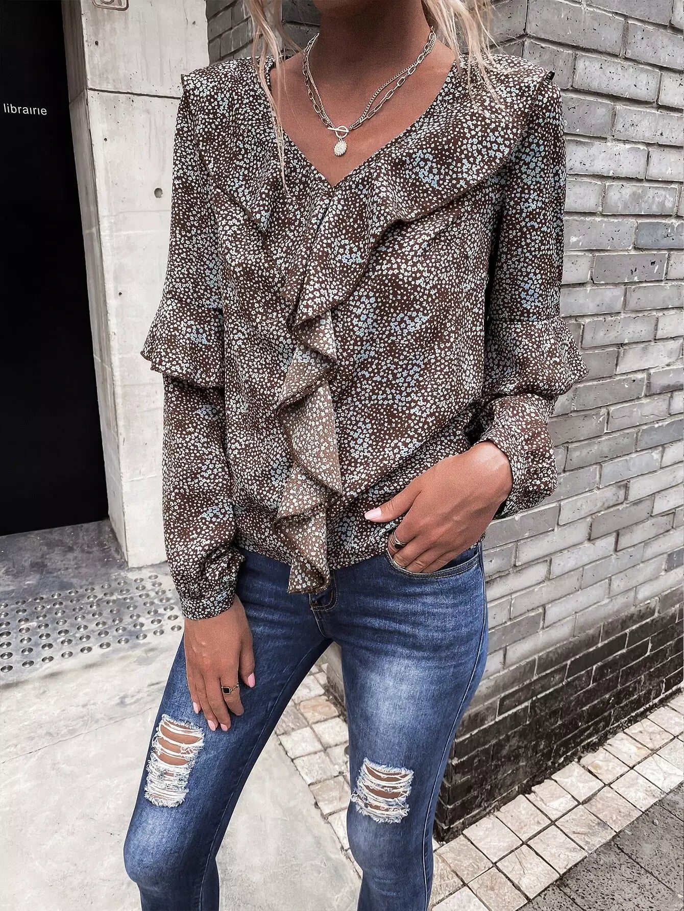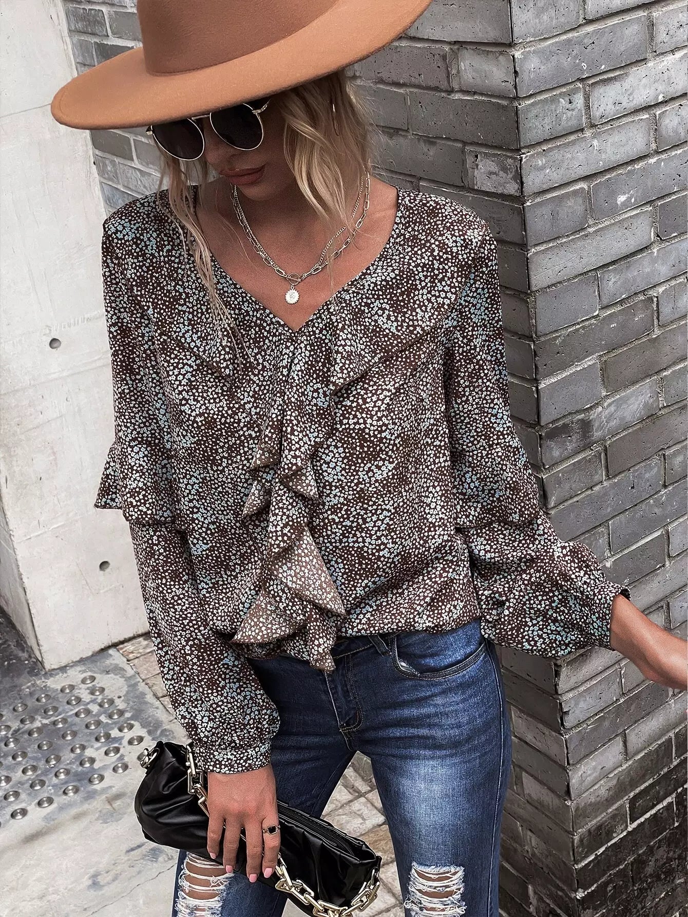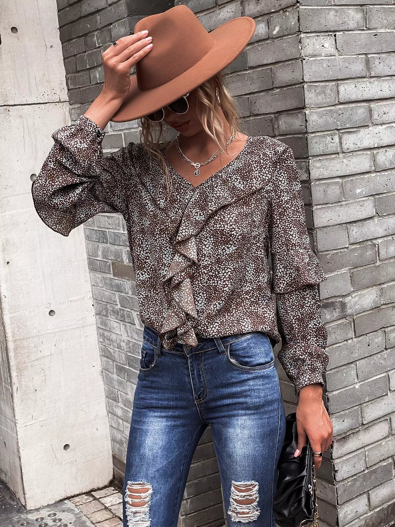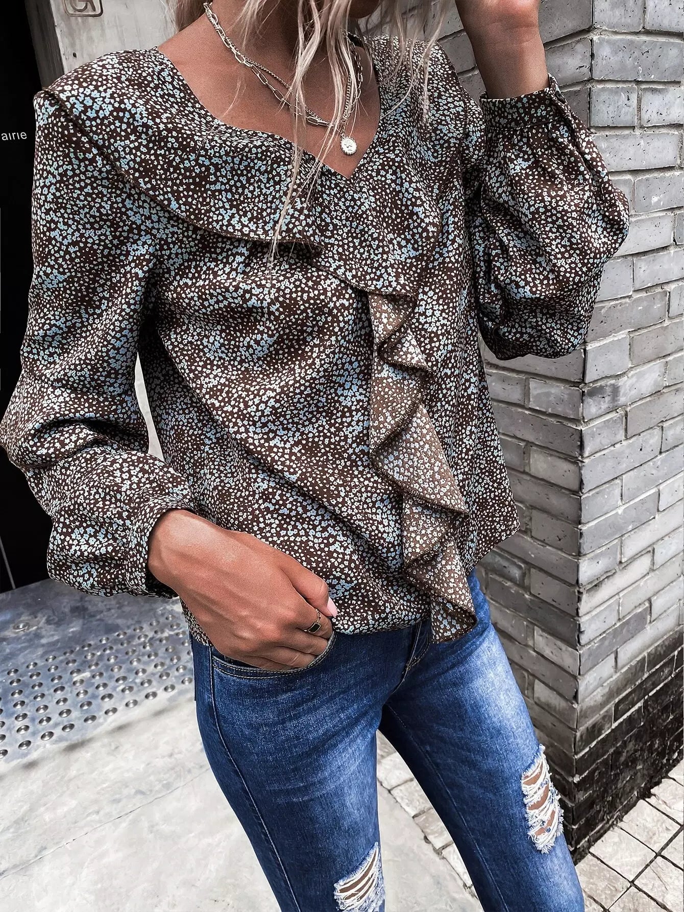 بلوزة ديتسي مزينة بكشكشة زهرية مزركشة