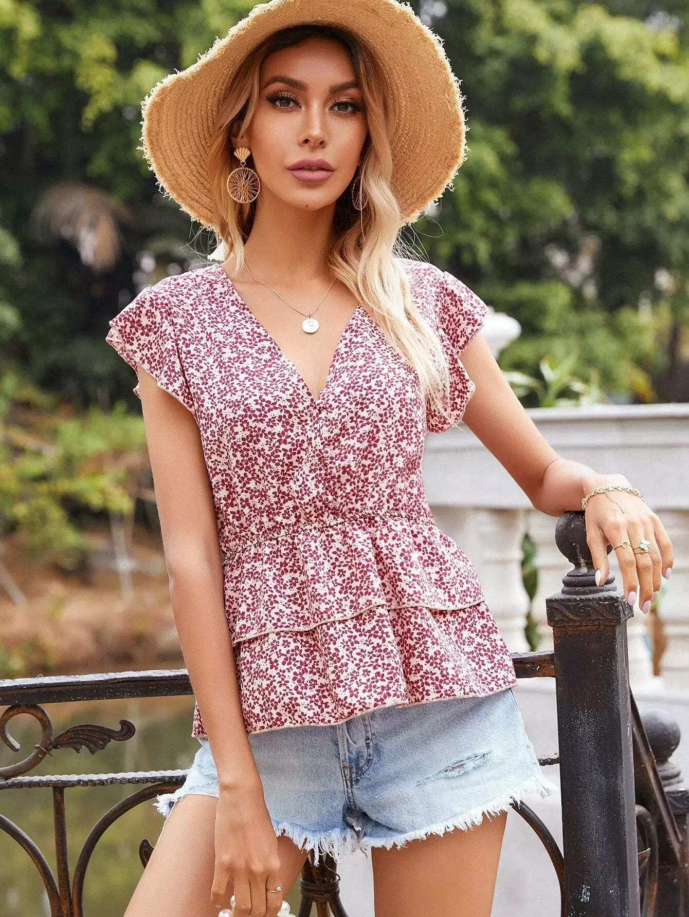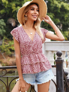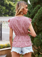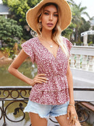 بلوزة ديتسي بطبقات زهرية متدرجة بطبقات من قميص قصير بطبقات