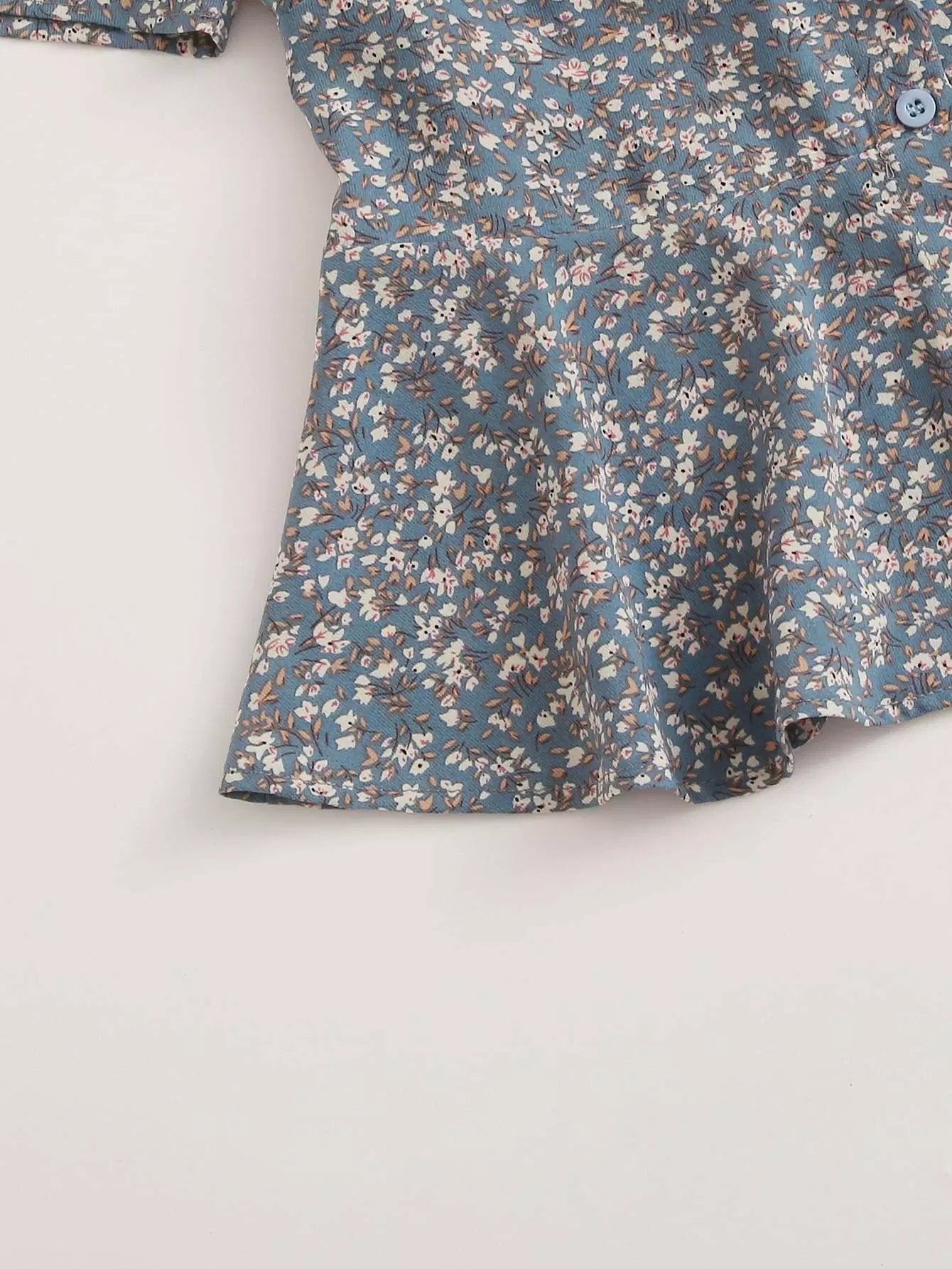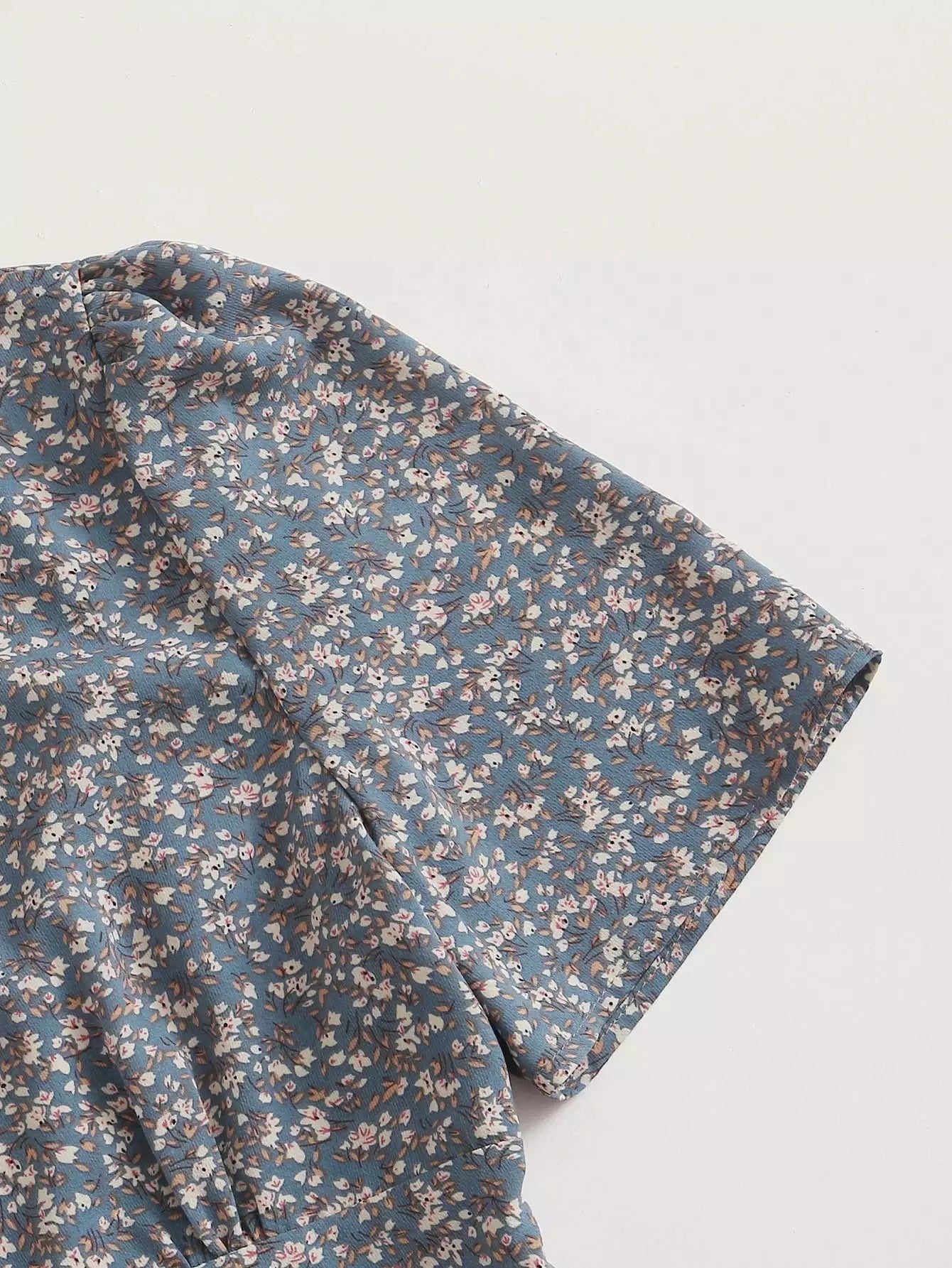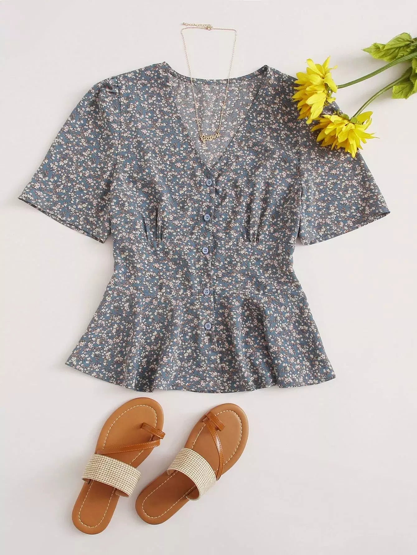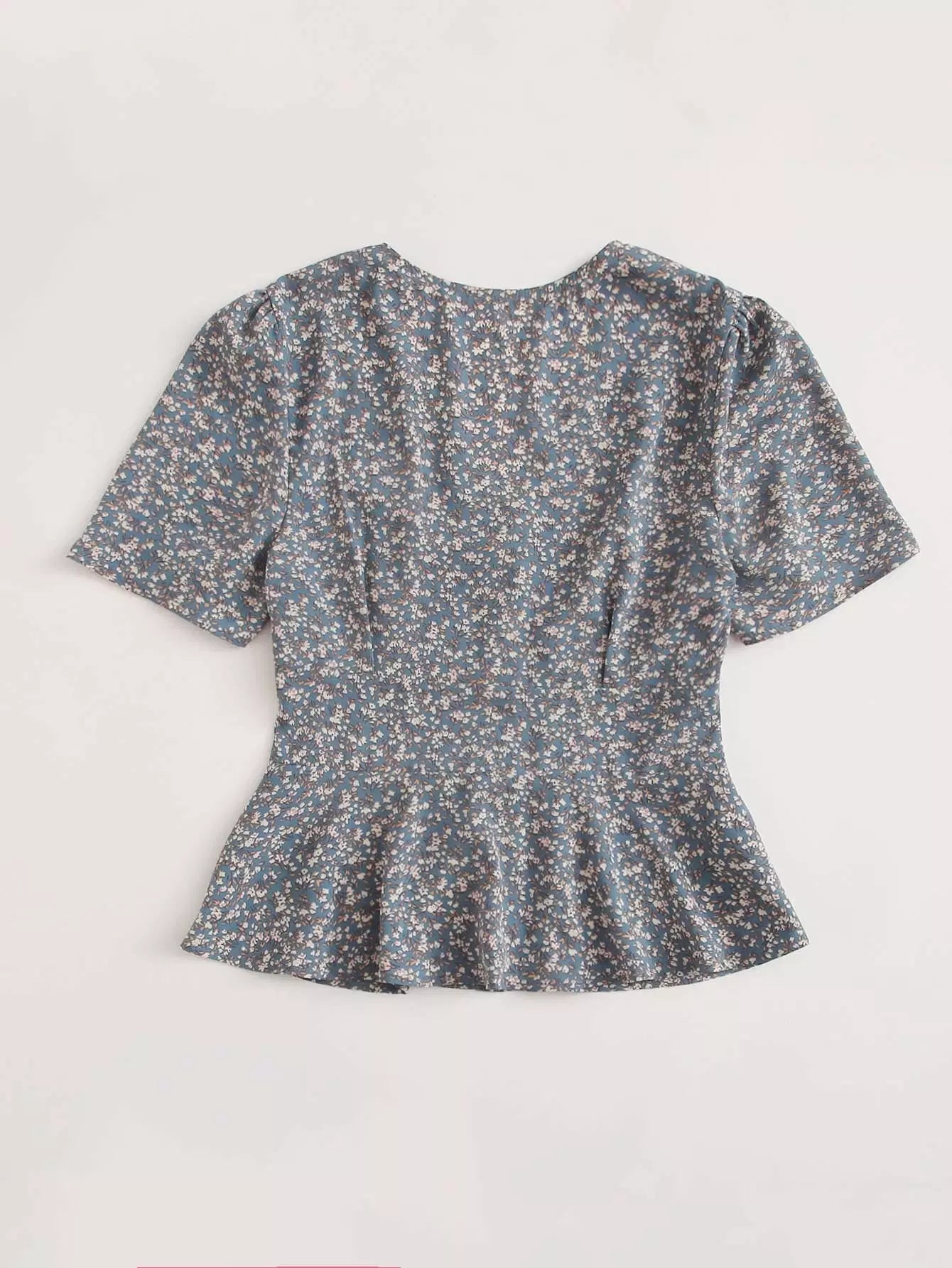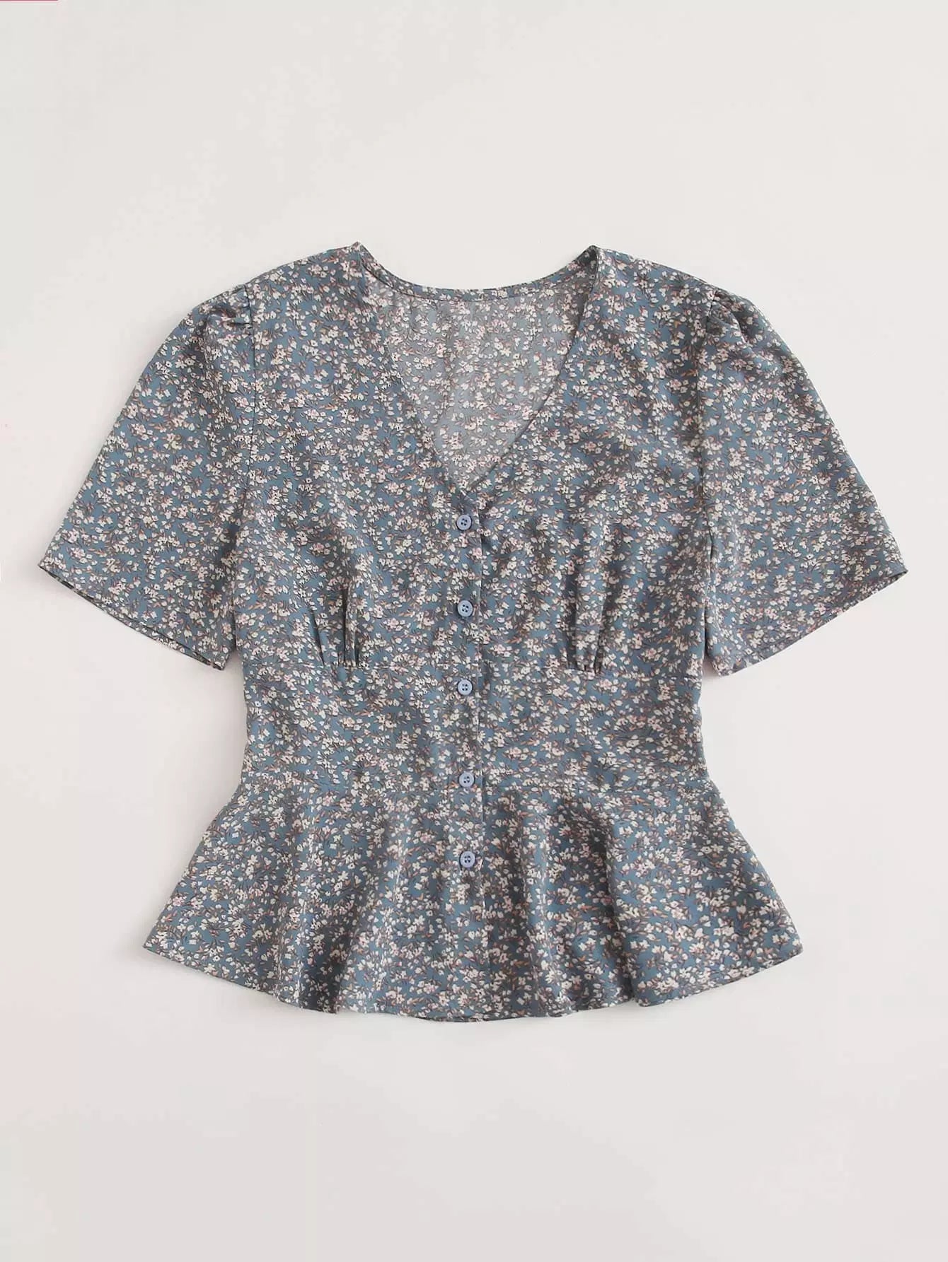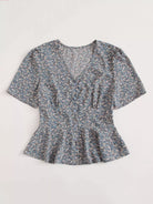 بلوزة ديتسي ذات أكمام منفوشة على شكل V بياقة على شكل V