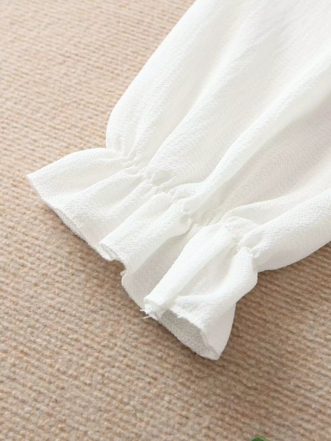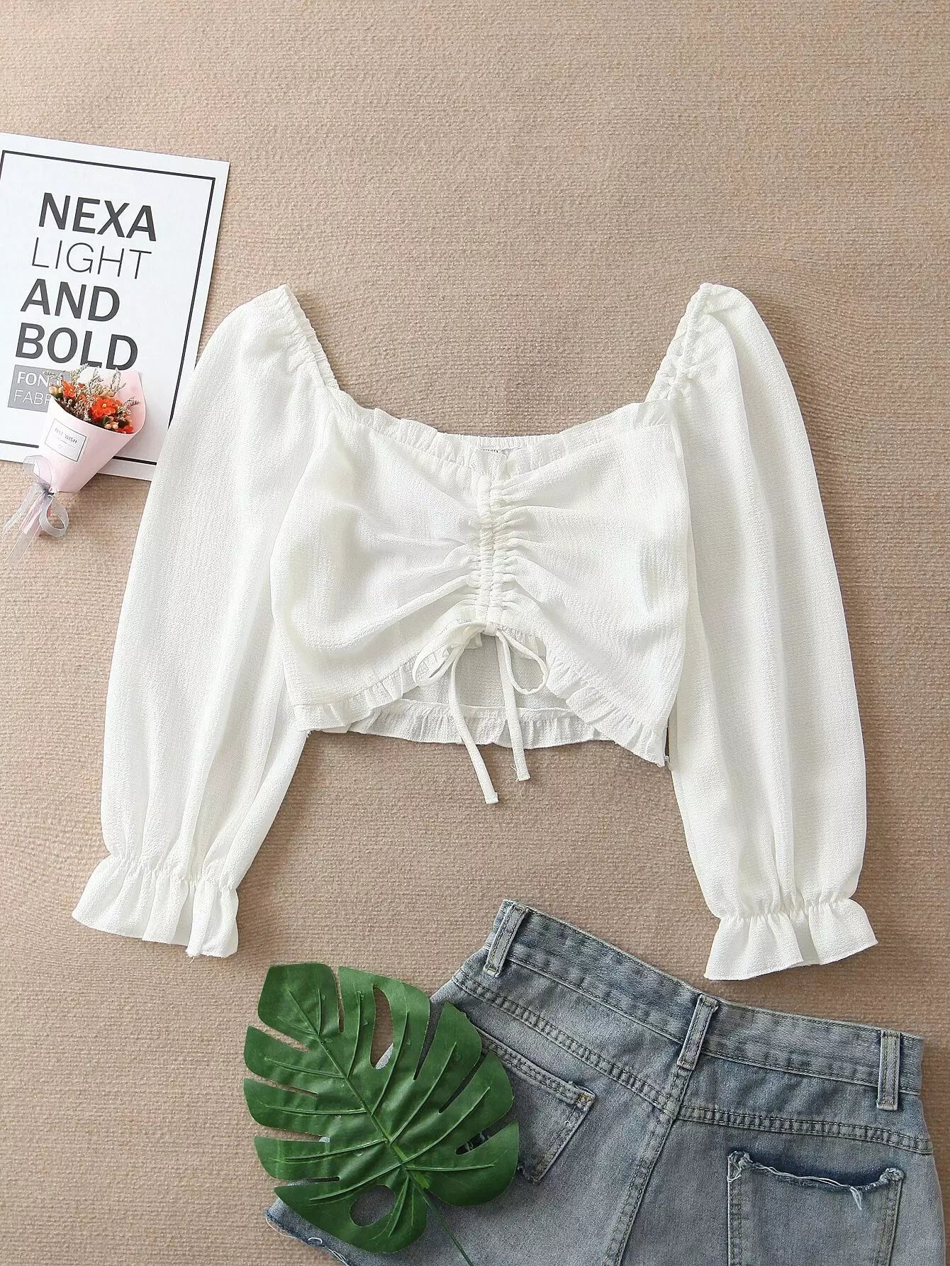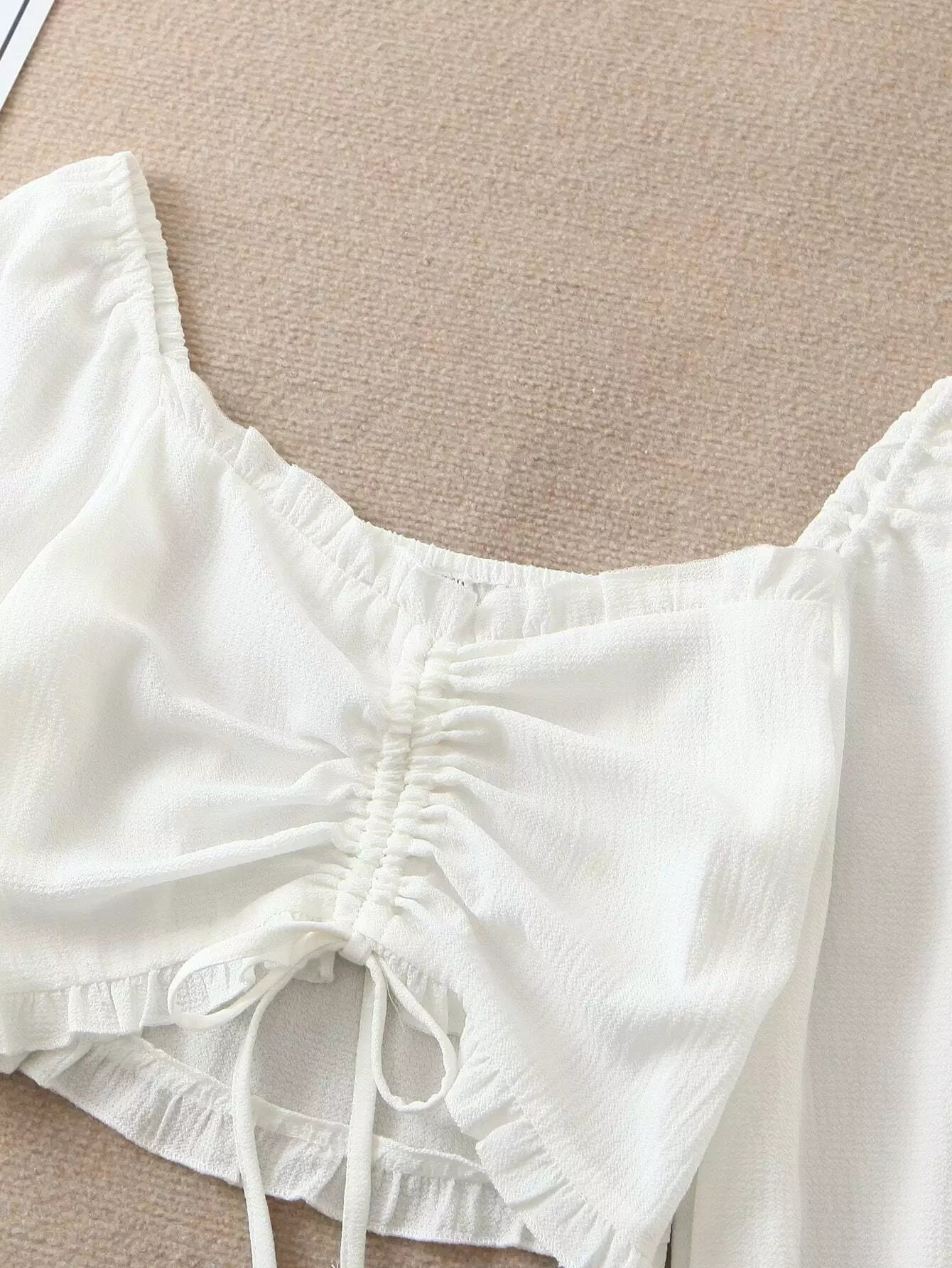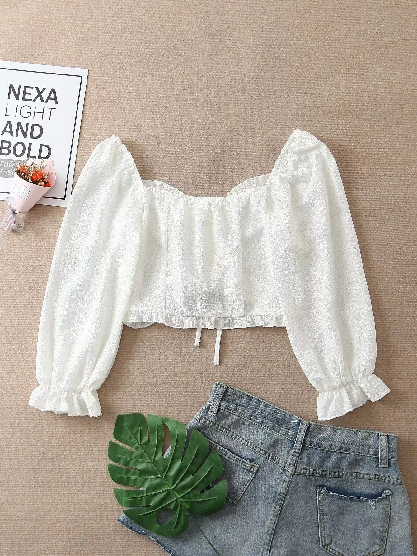 بلوزة برباط أمامي برباط من الأمام بياقة قصيرة برقبة على شكل قلب مفتوح