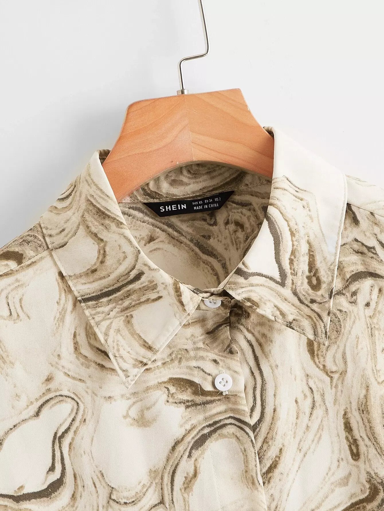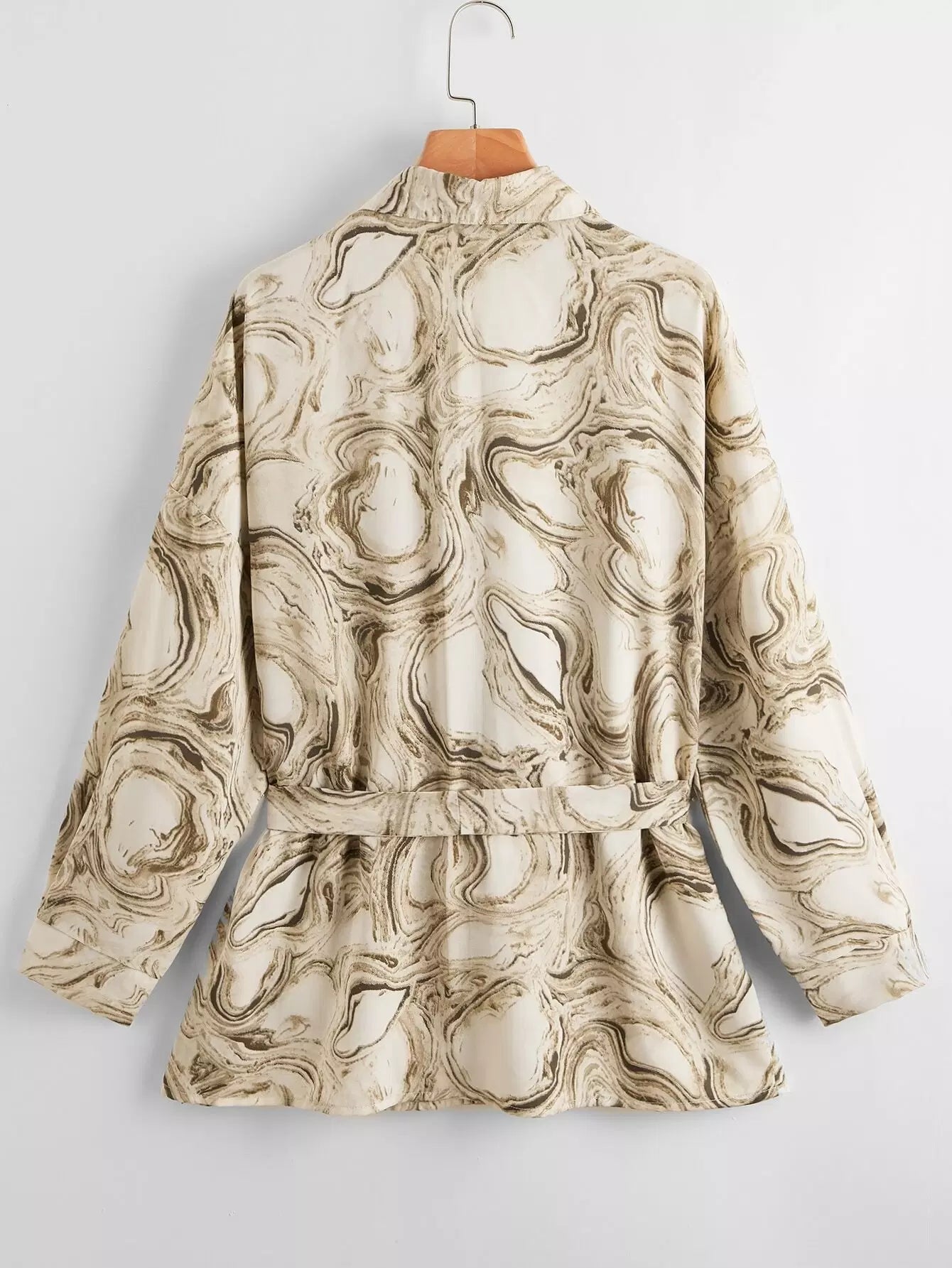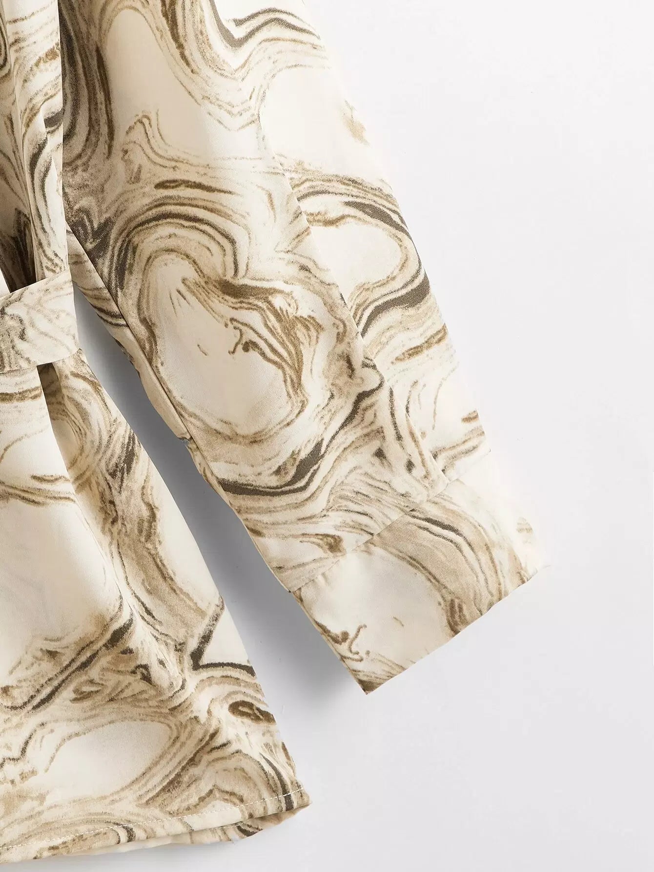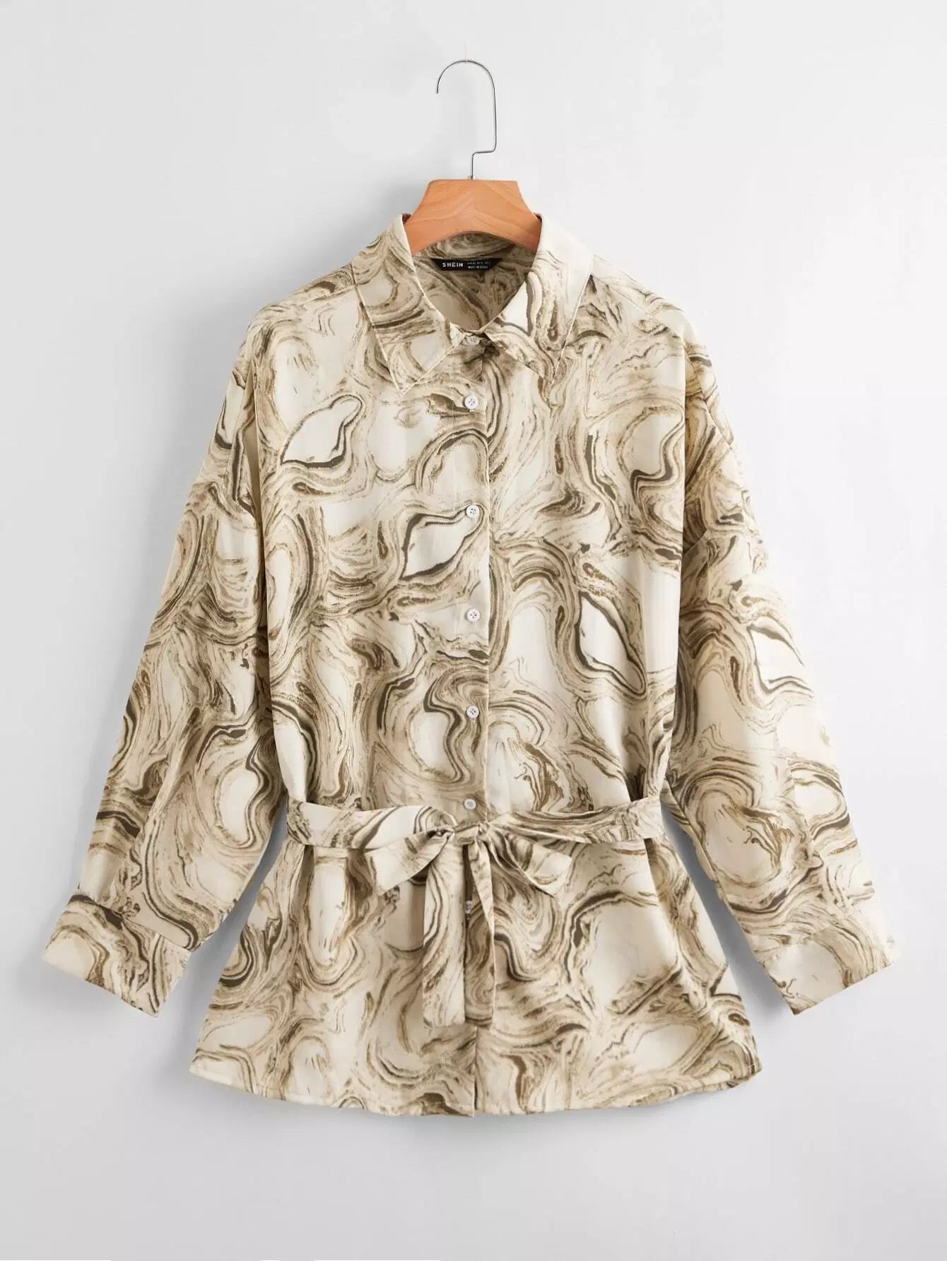بلوزة مطبوعة بأكتاف منسدلة بدون حزام