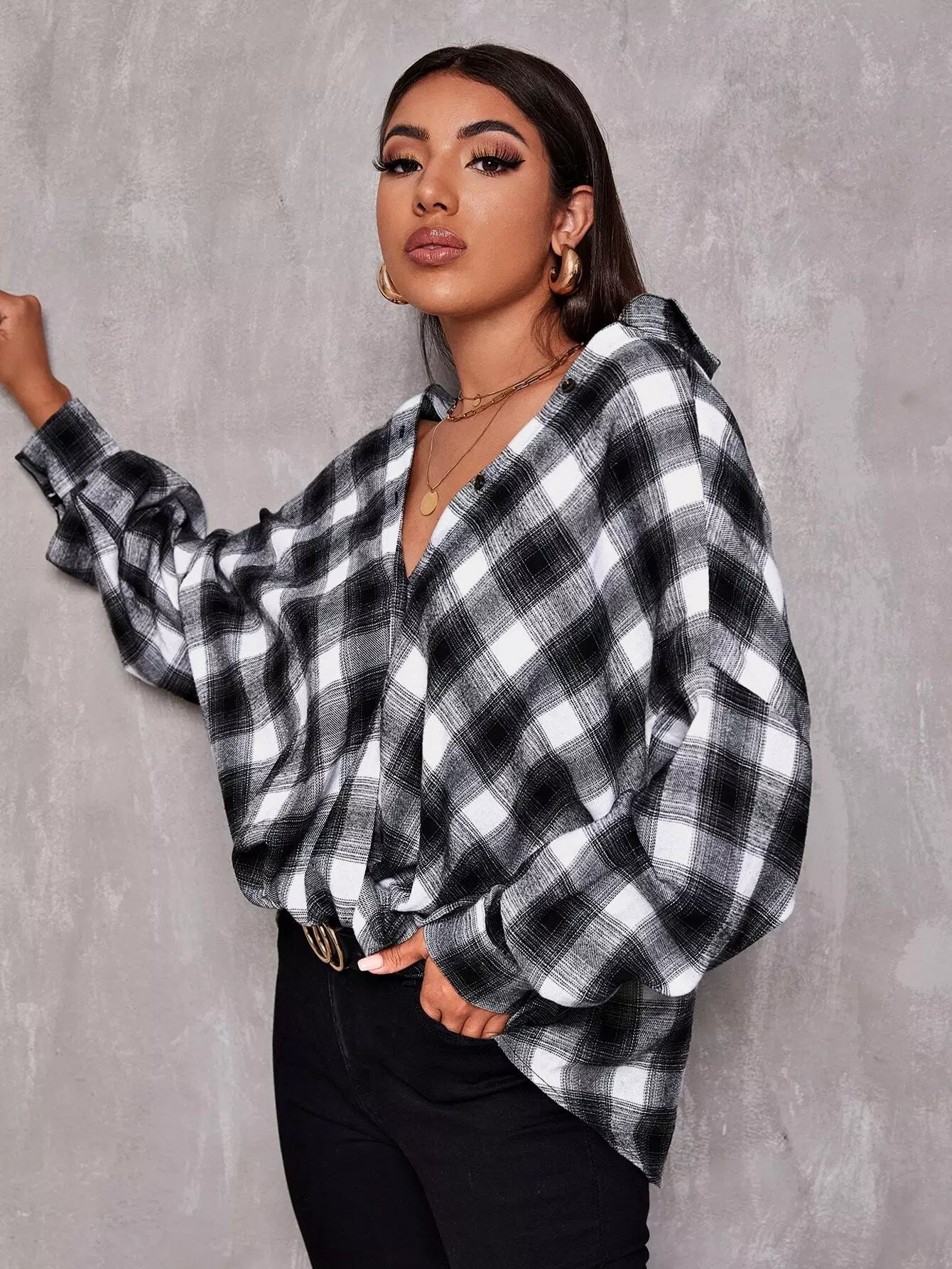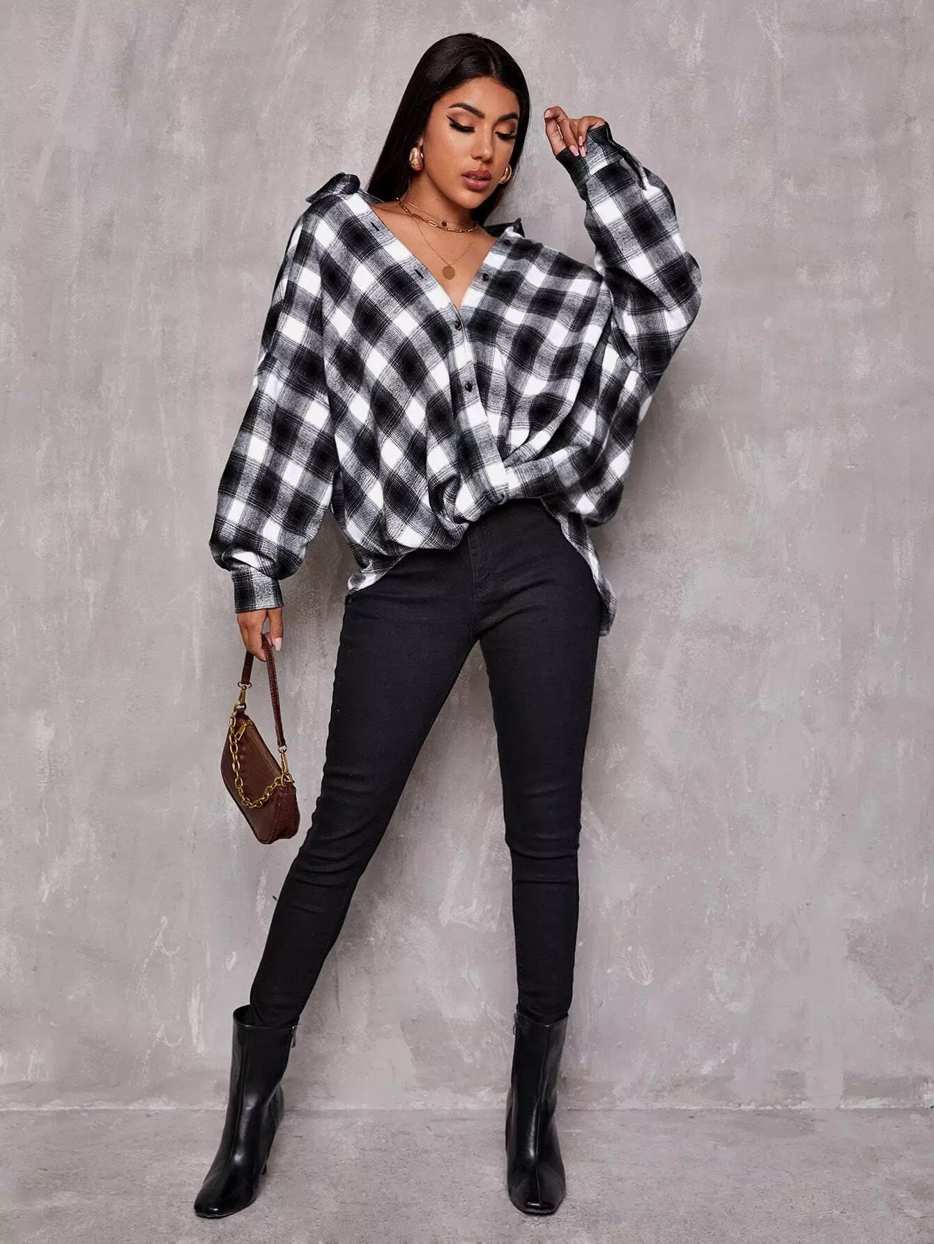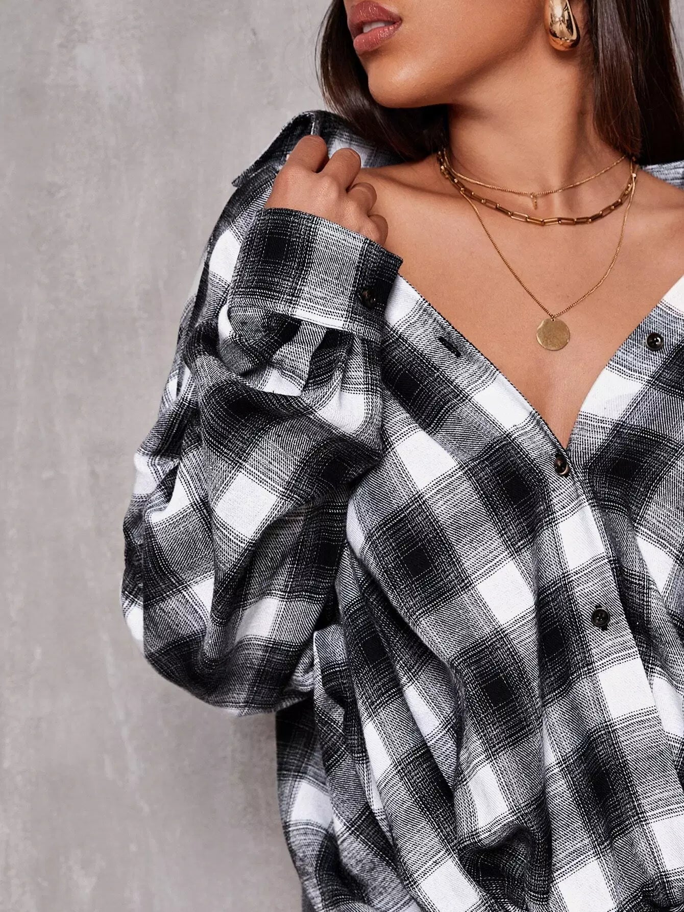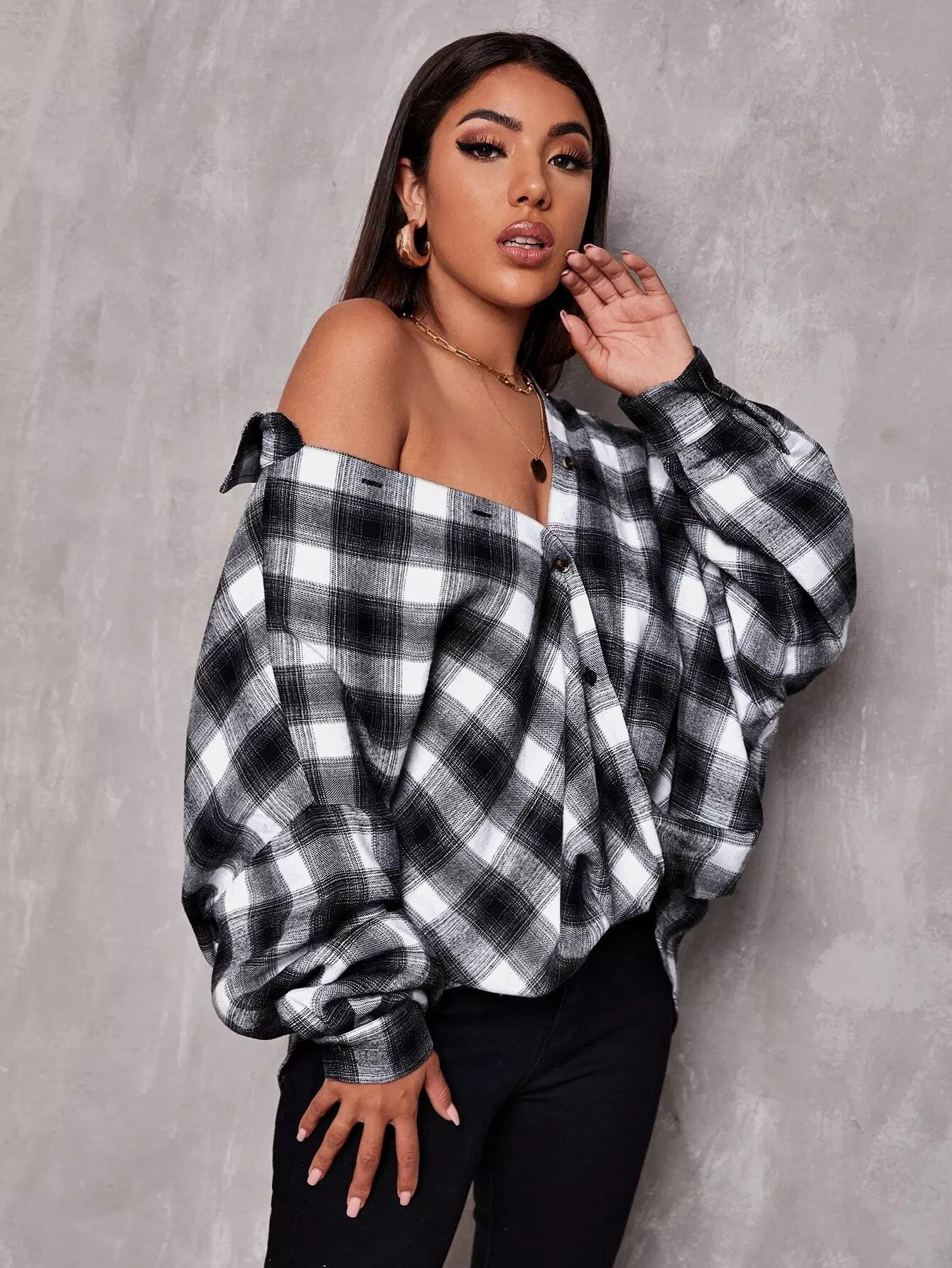 قميص منسدل الكتفين منقوش منسدل الكتفين