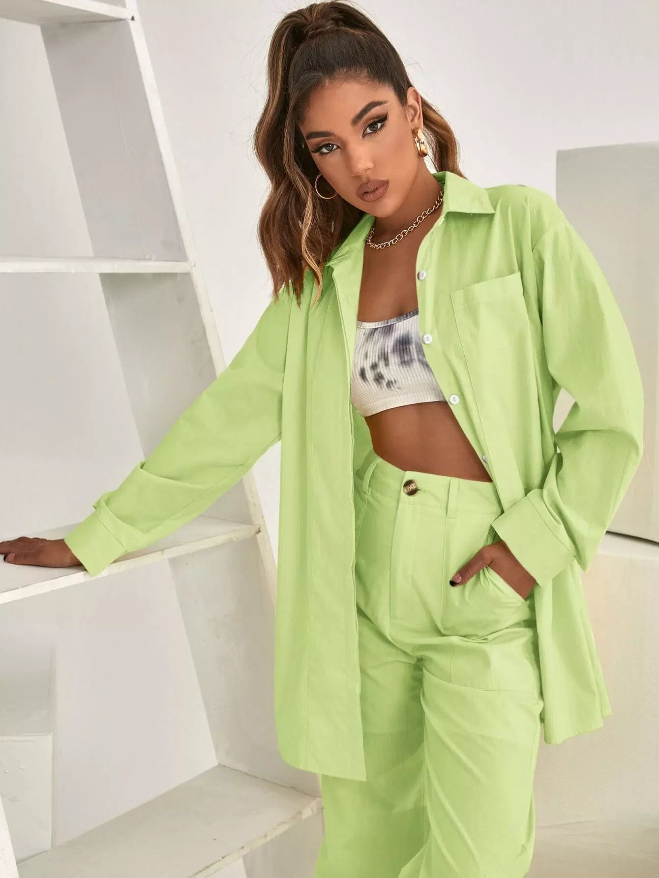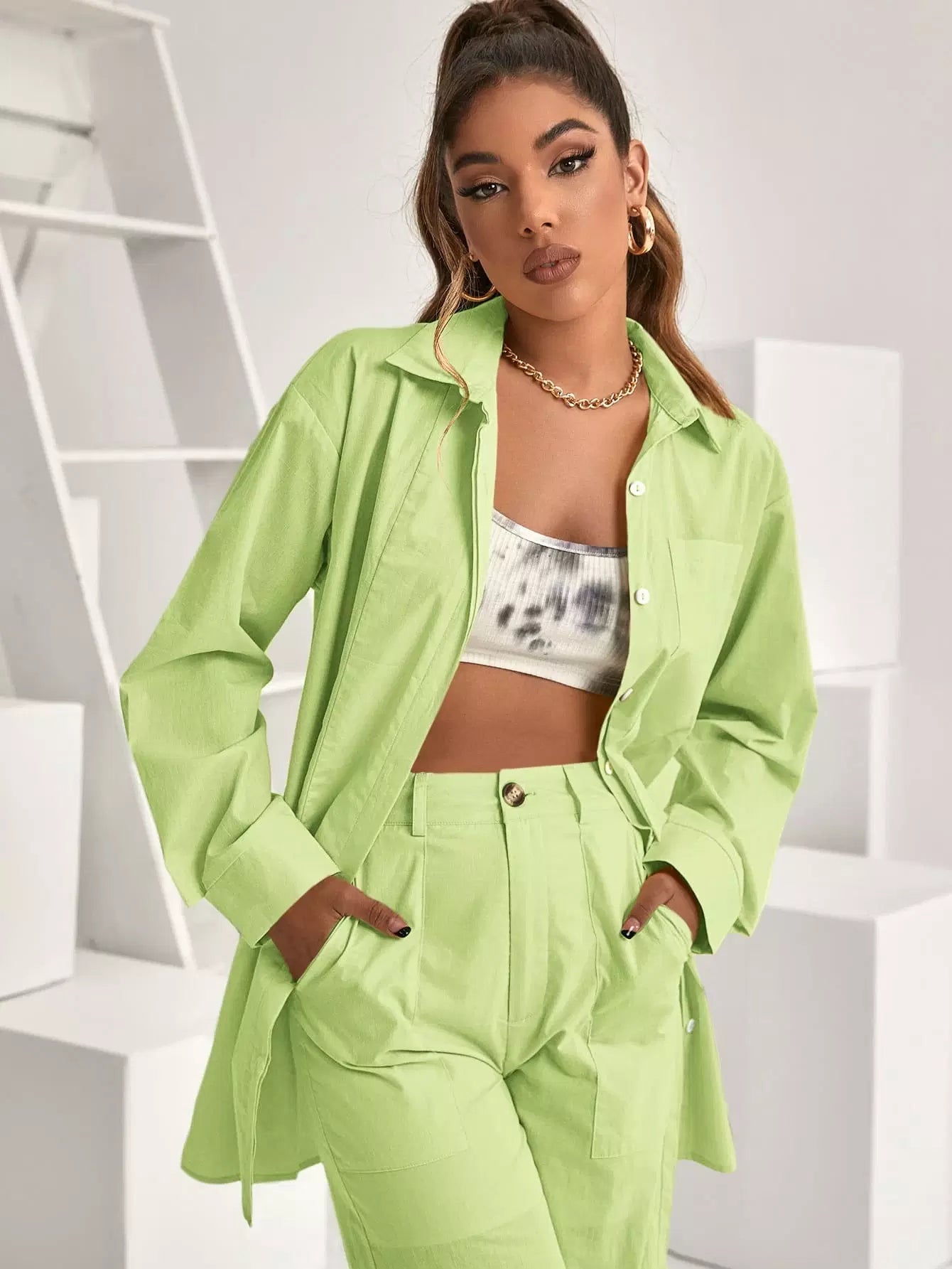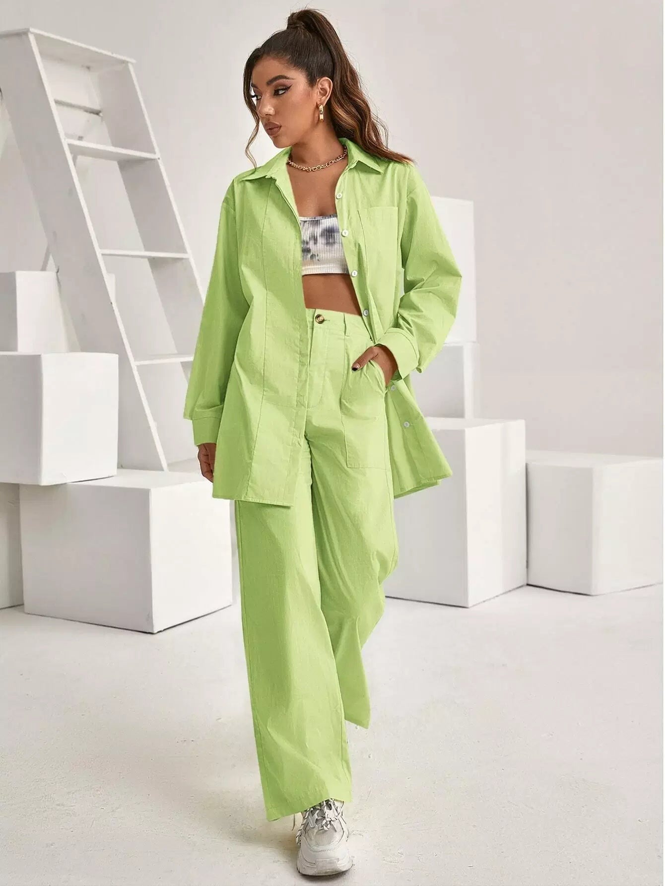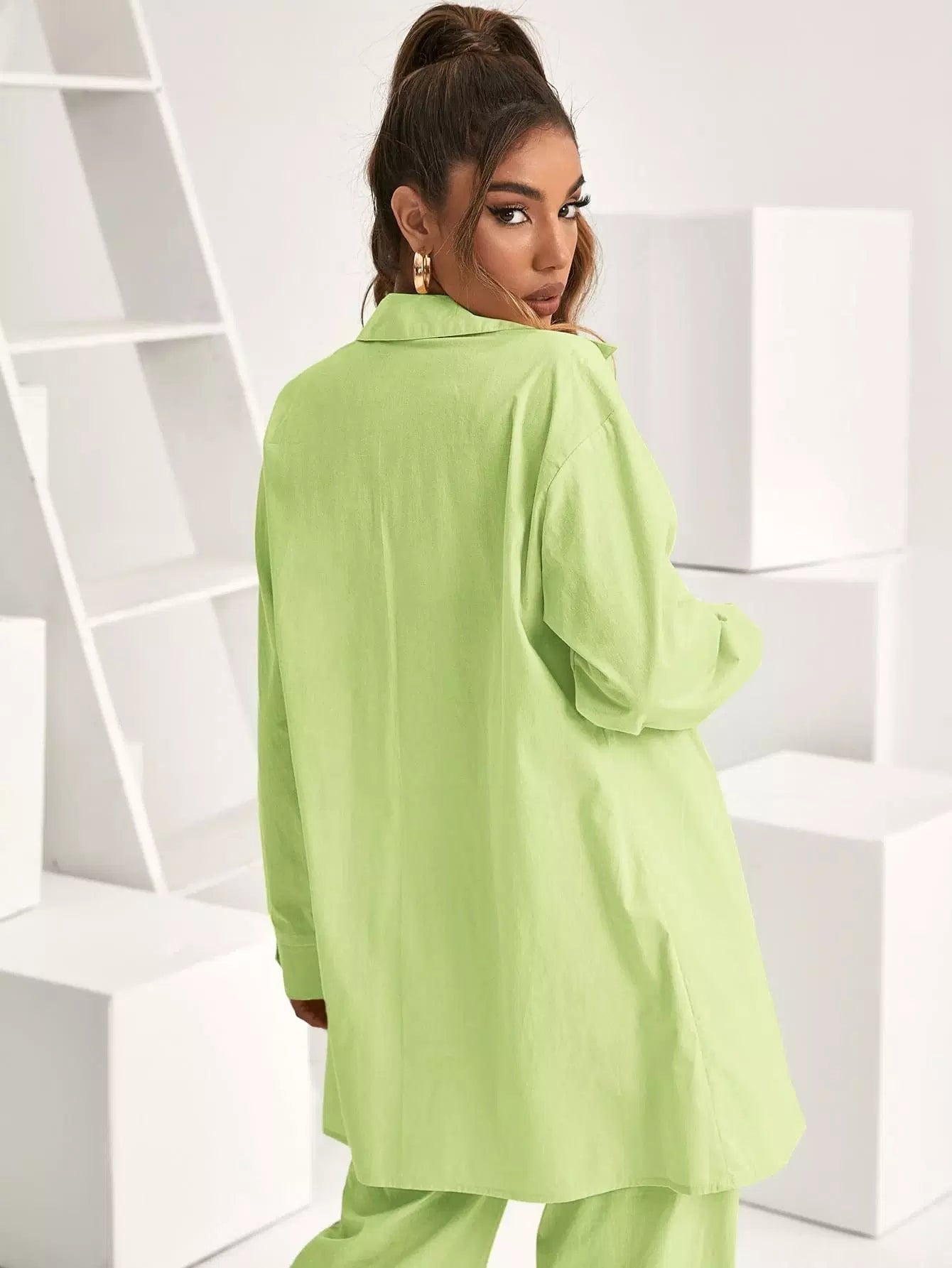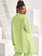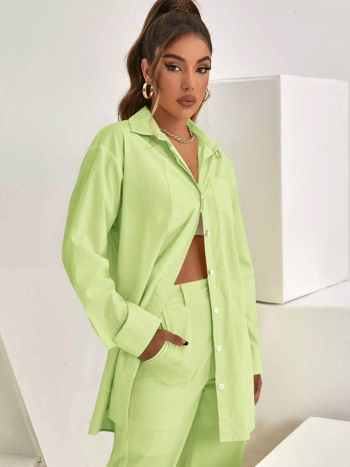 بلوزة طويلة ذات أكتاف منسدلة وجيب جانبي