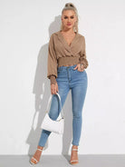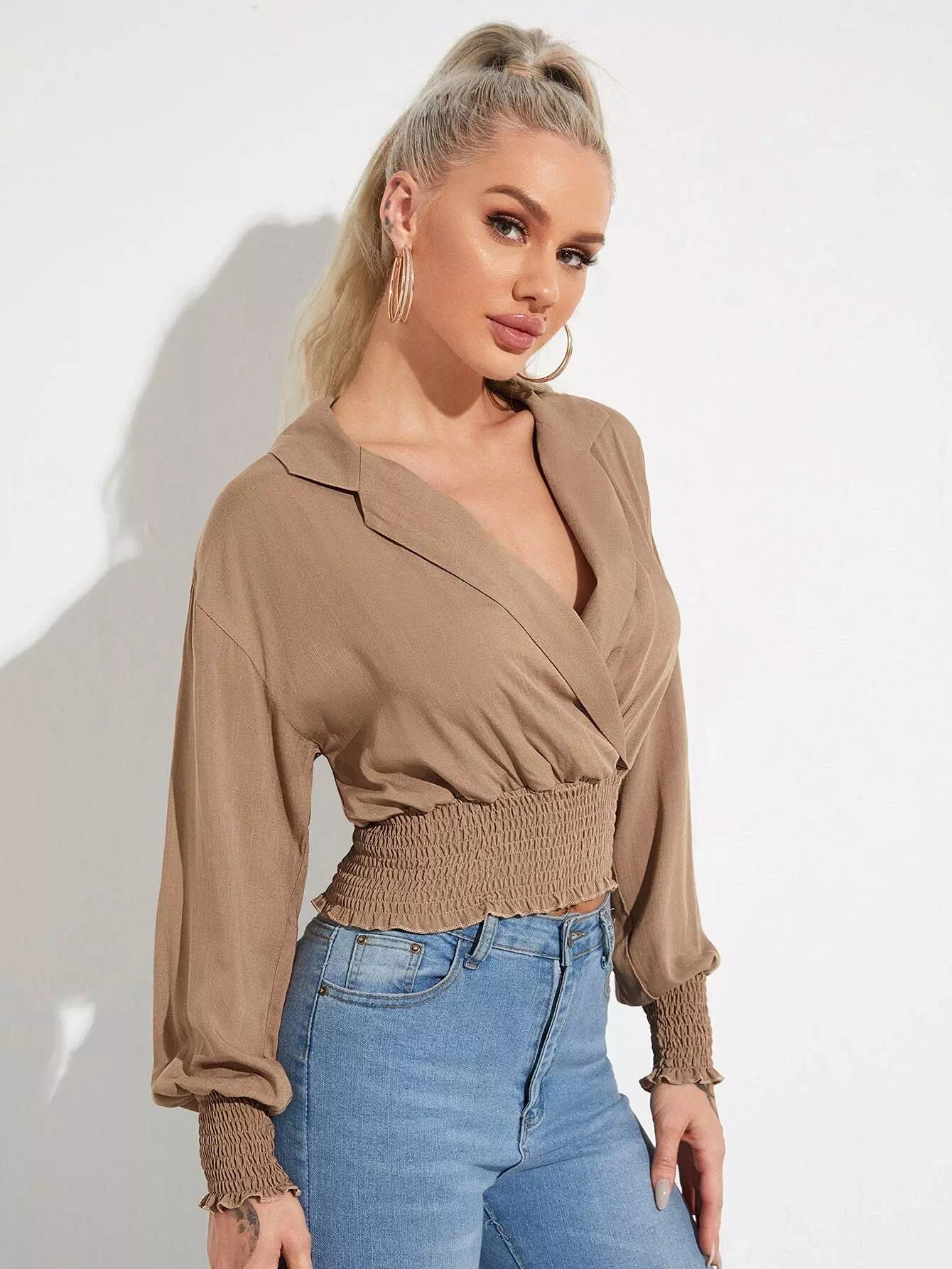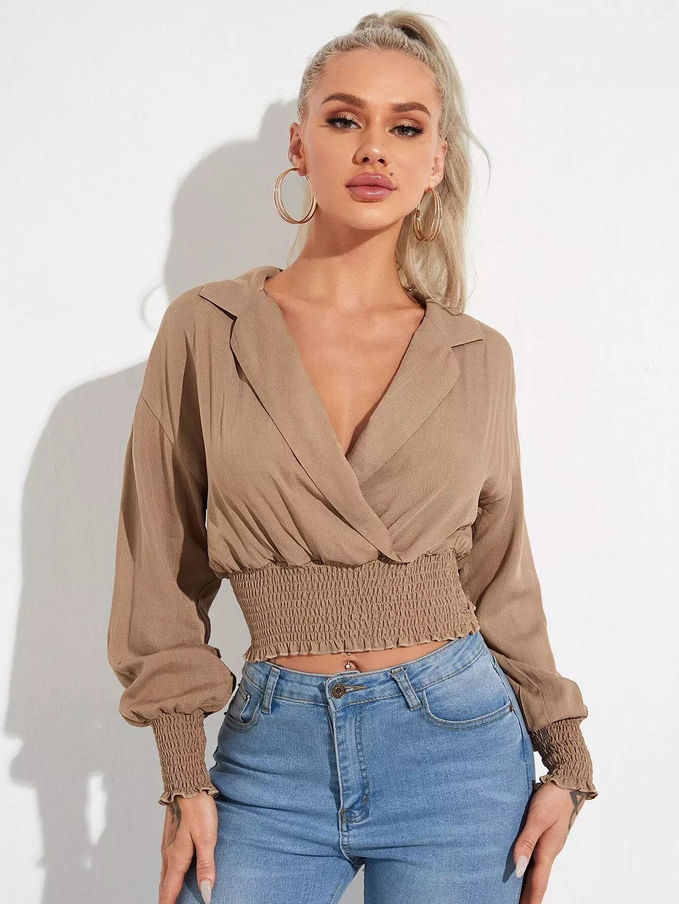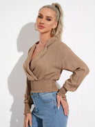 بلوزة قصيرة منسدلة الكتفين بشريط منسدل الكتفين