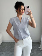 قميص إلينزجا المخطط ذو الياقة المدببة، بأكمام قصيرة، صيفي