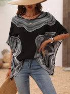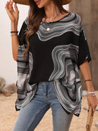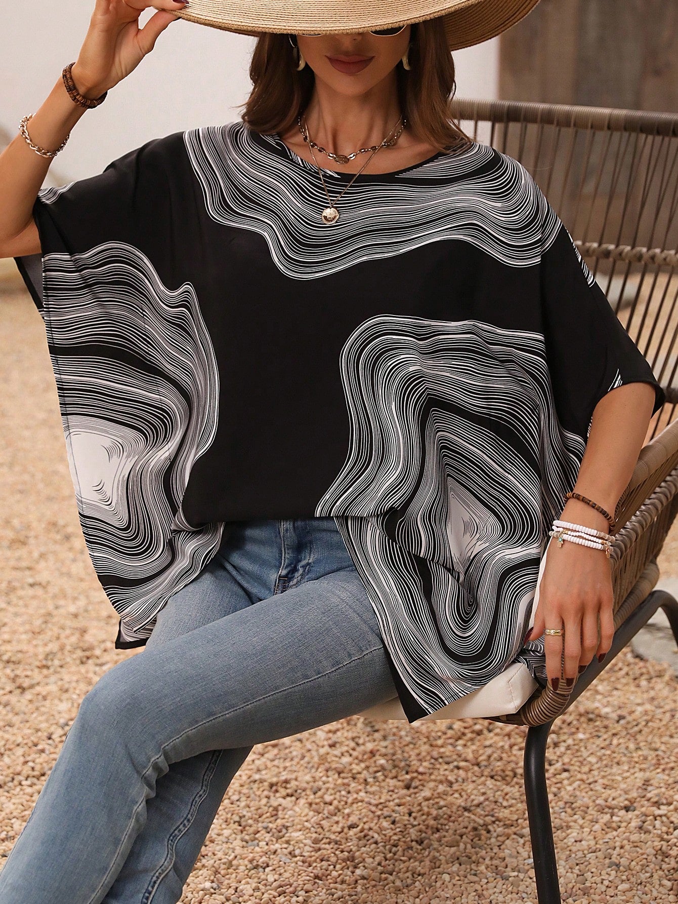 قميص نسائي من إيمري روز بياقة دائرية مخططة وأكمام واسعة