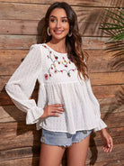 بلوزة سموك منقّطة سويسرية مطرّزة بالزهور