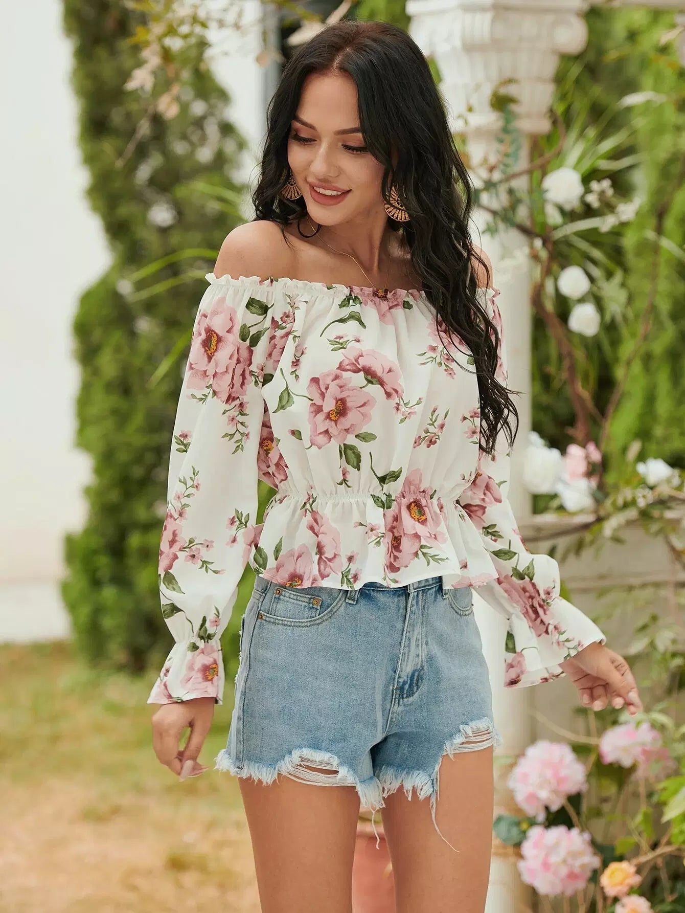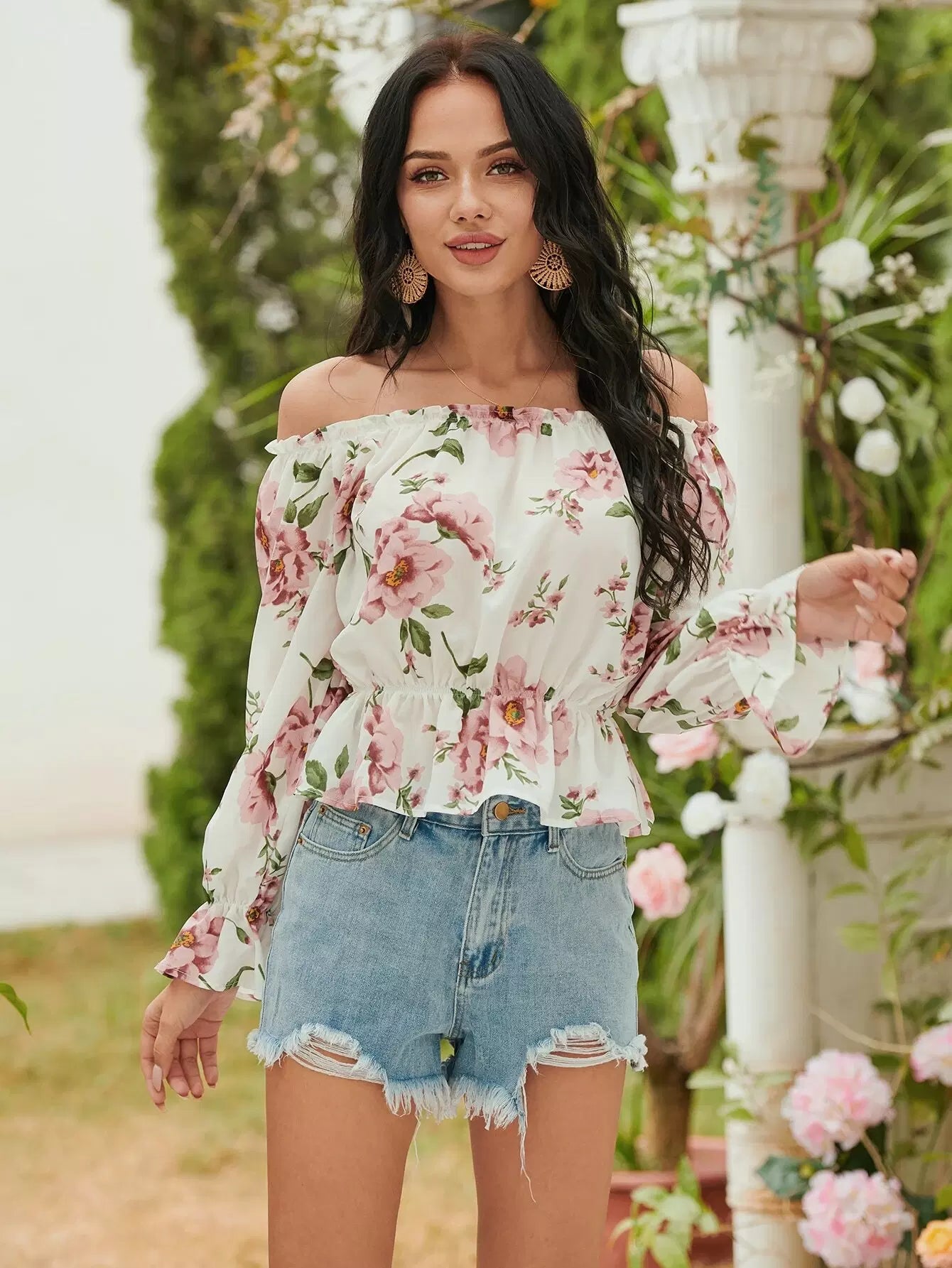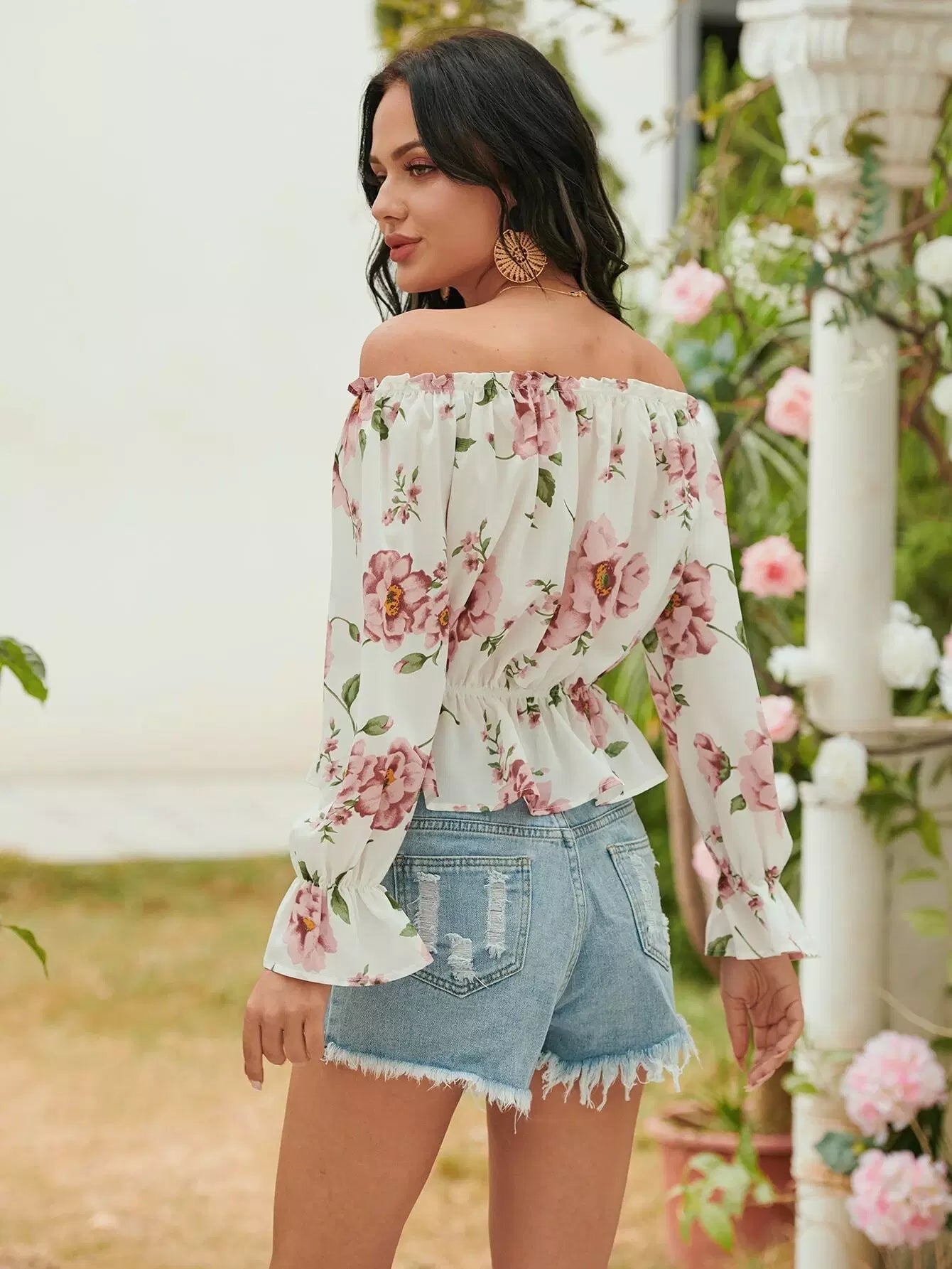 بلوزة بيبلوم على الكتفين مزينة بالورود