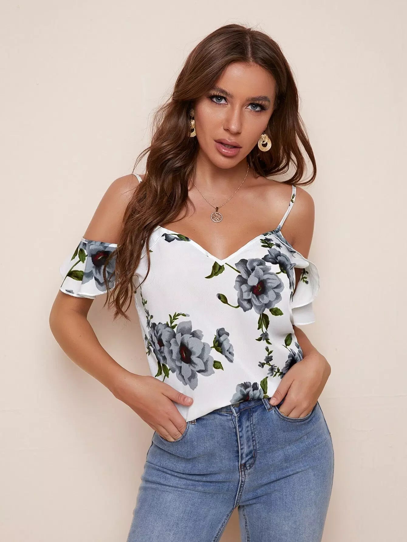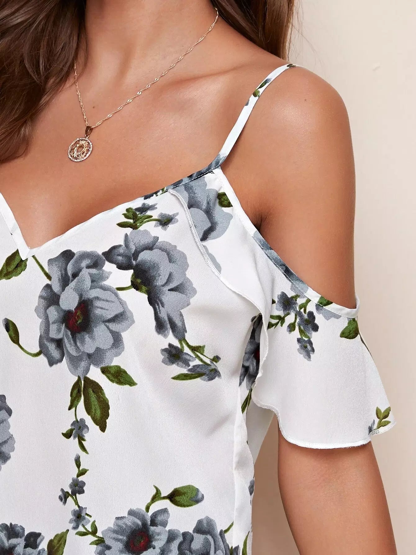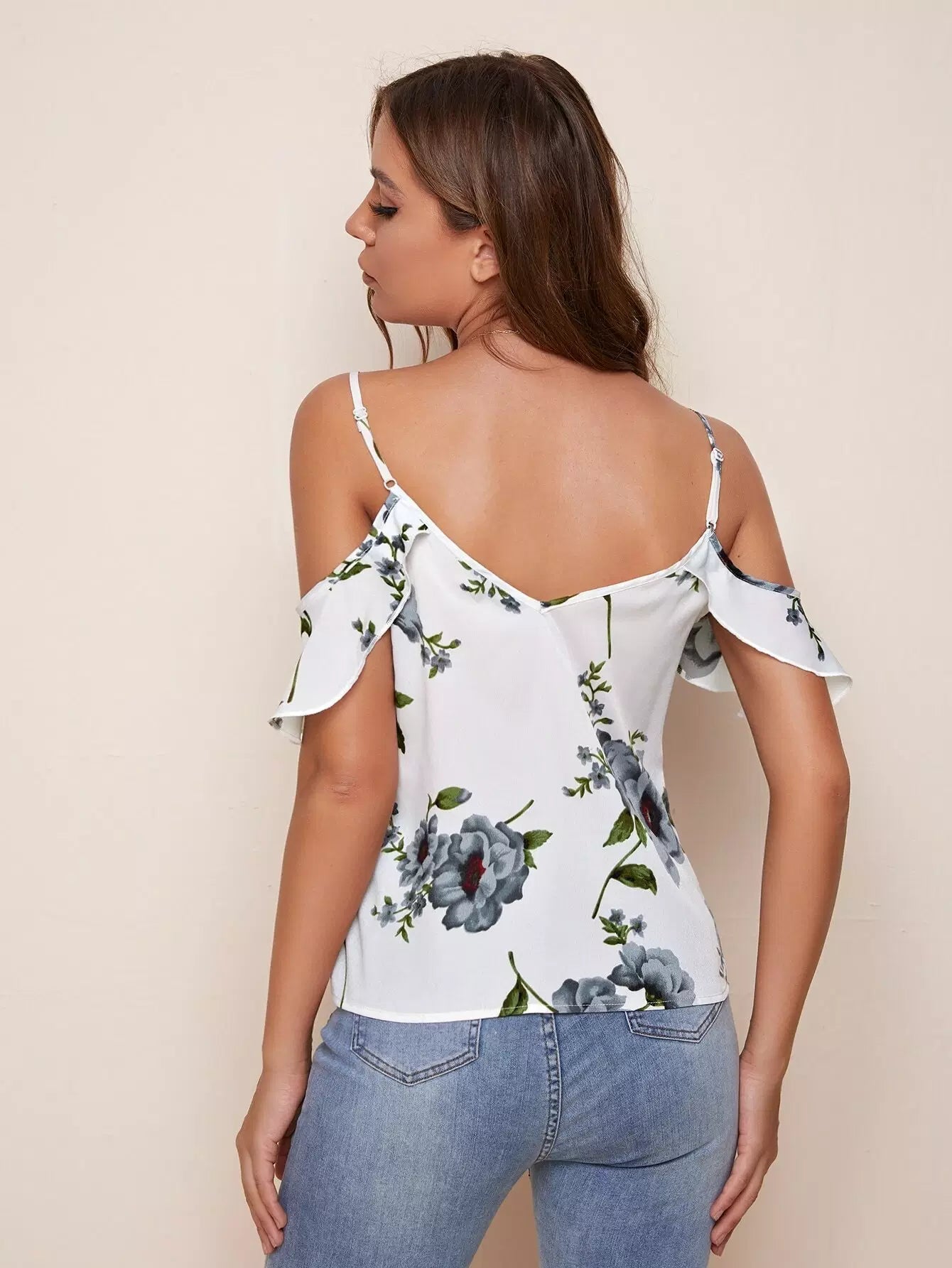 بلوزة كامي بطبعة زهور مفتوحة الكتفين
