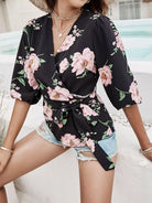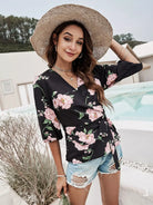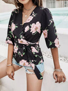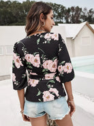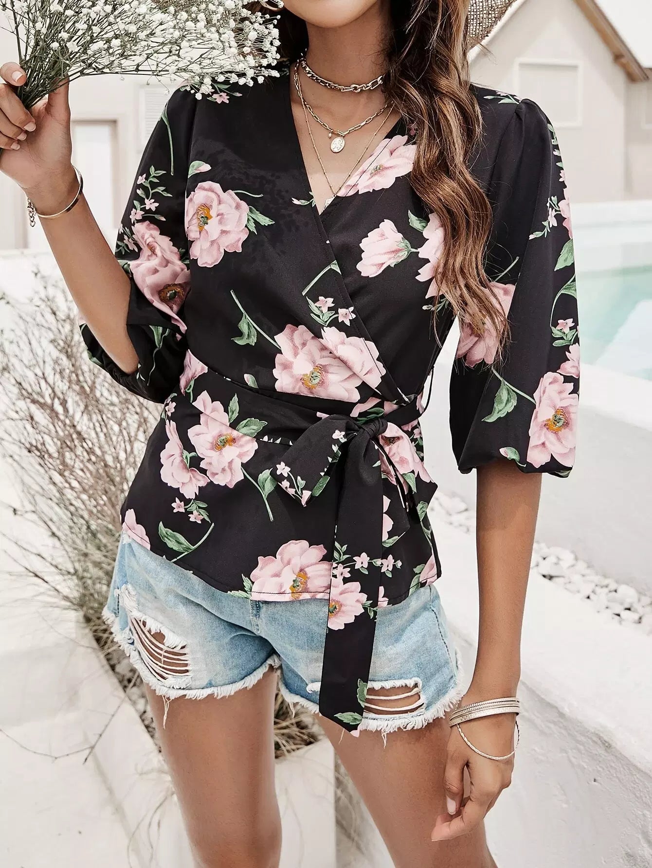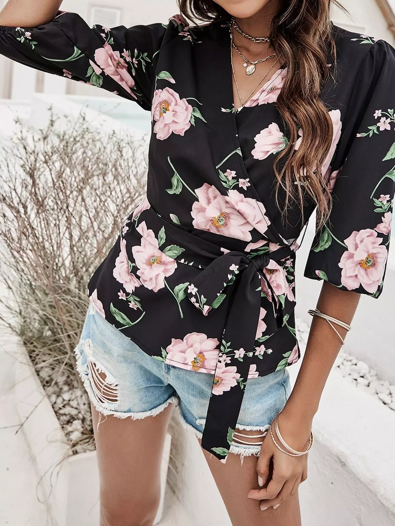 بلوزة مزينة بطبعة زهور وربطة عنق ذاتية
