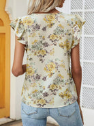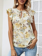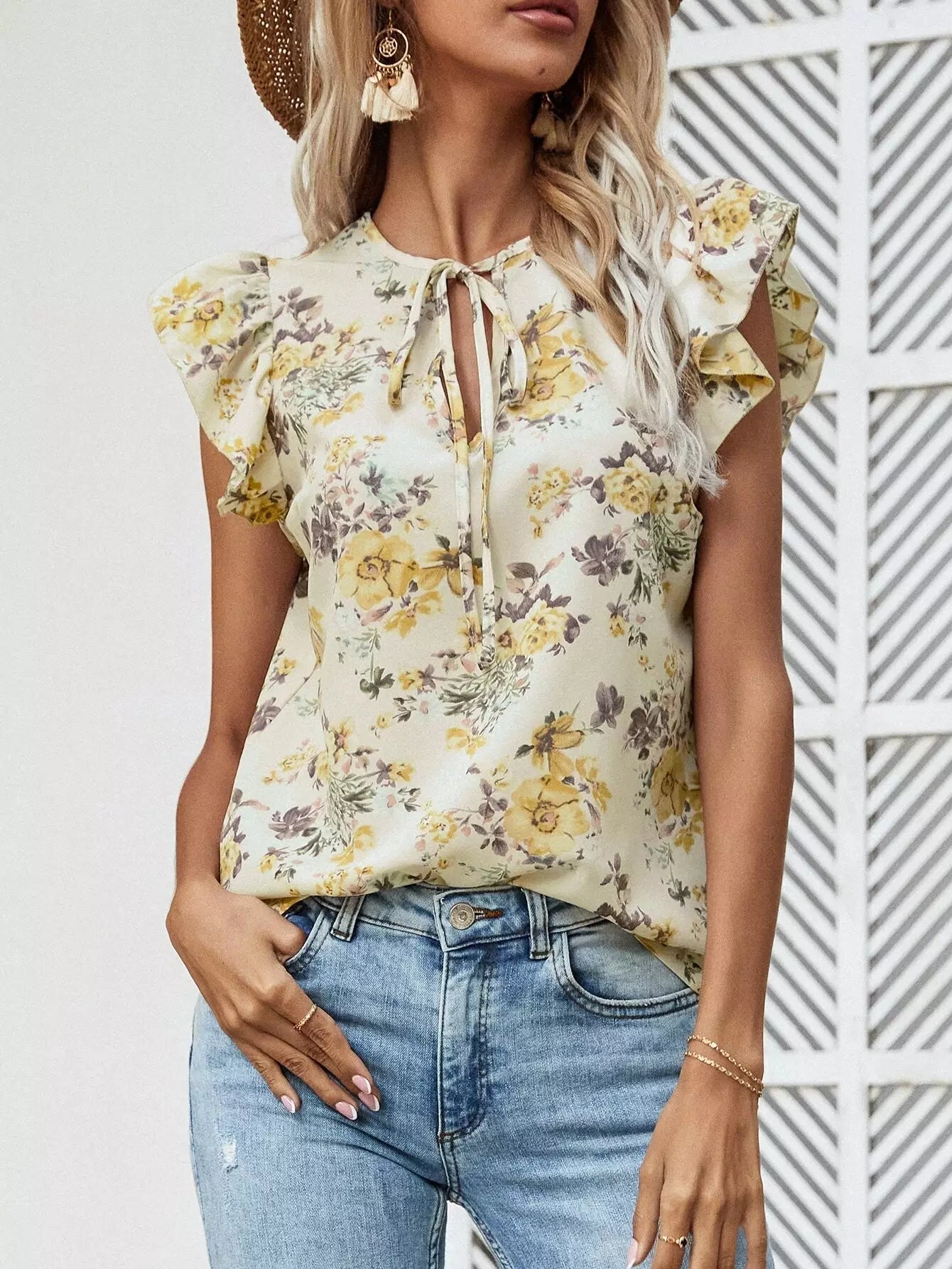 بلوزة مزينة بطبعة زهور وربطة عنق على شكل ربطة عنق