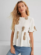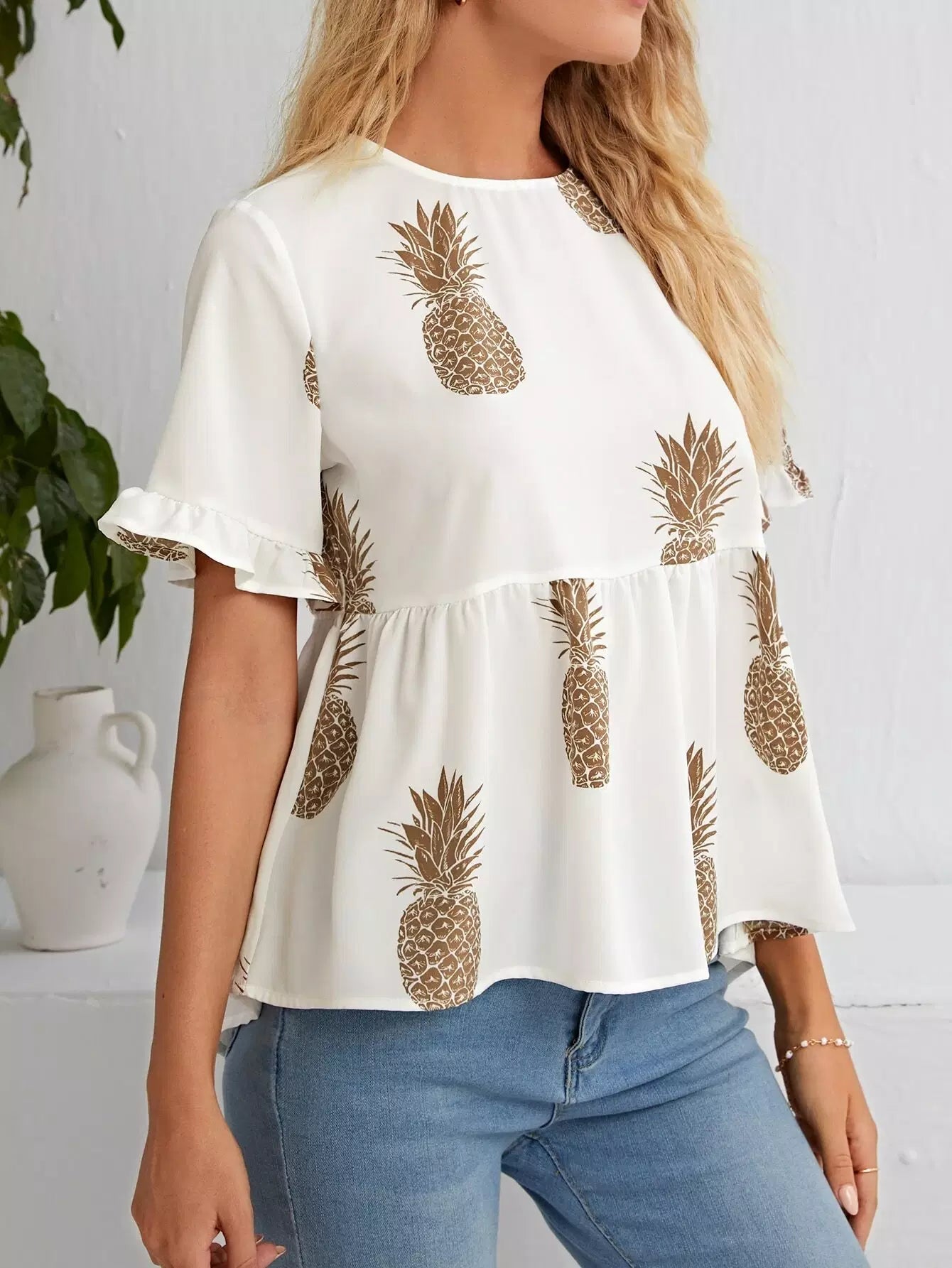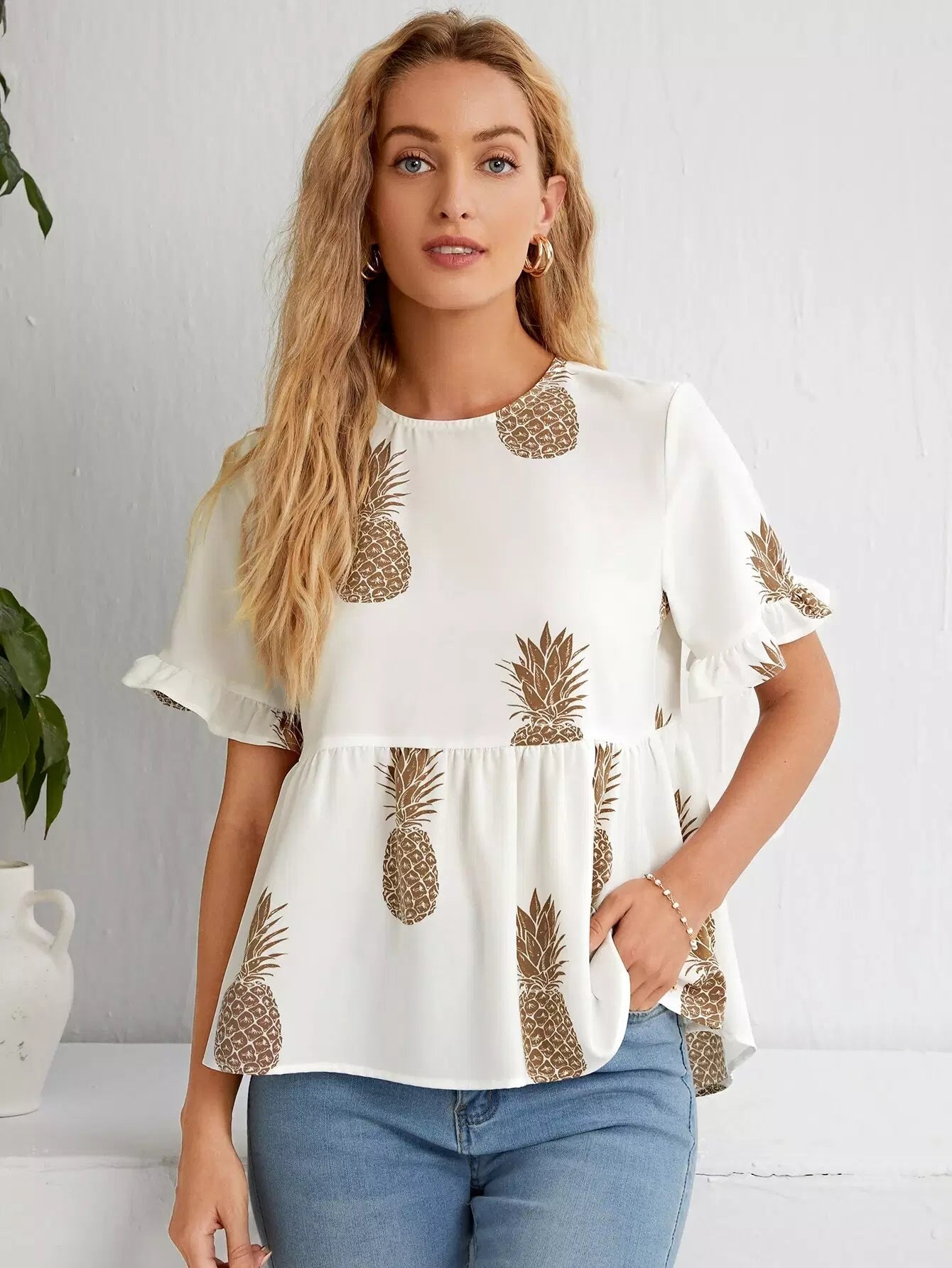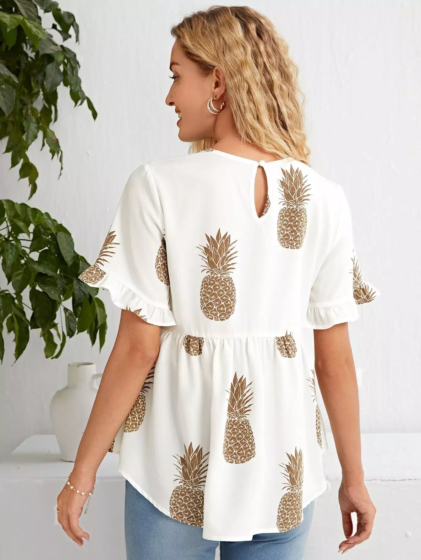 بلوزة بطبعة أناناس بأكمام منفوشة