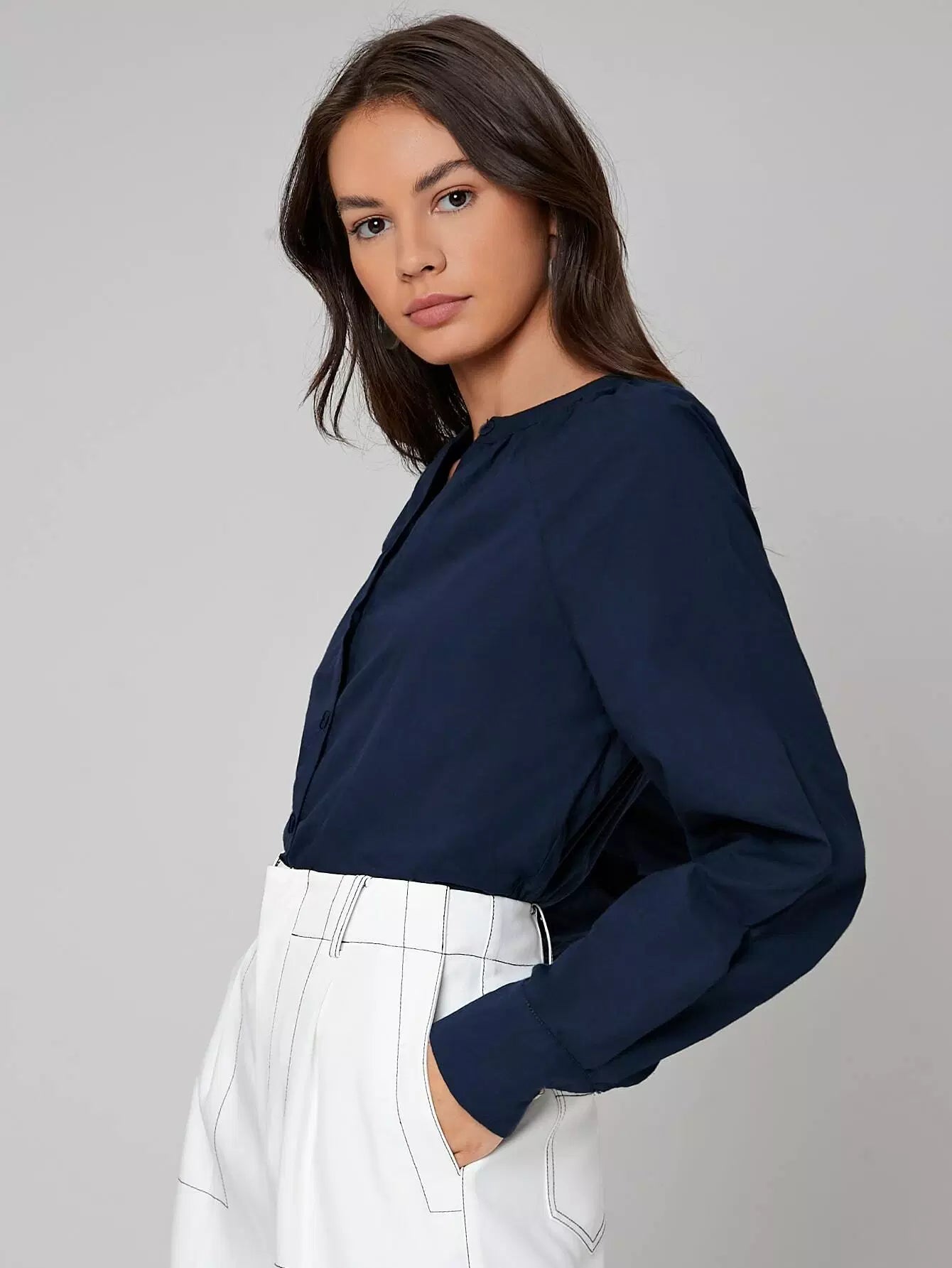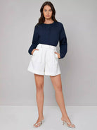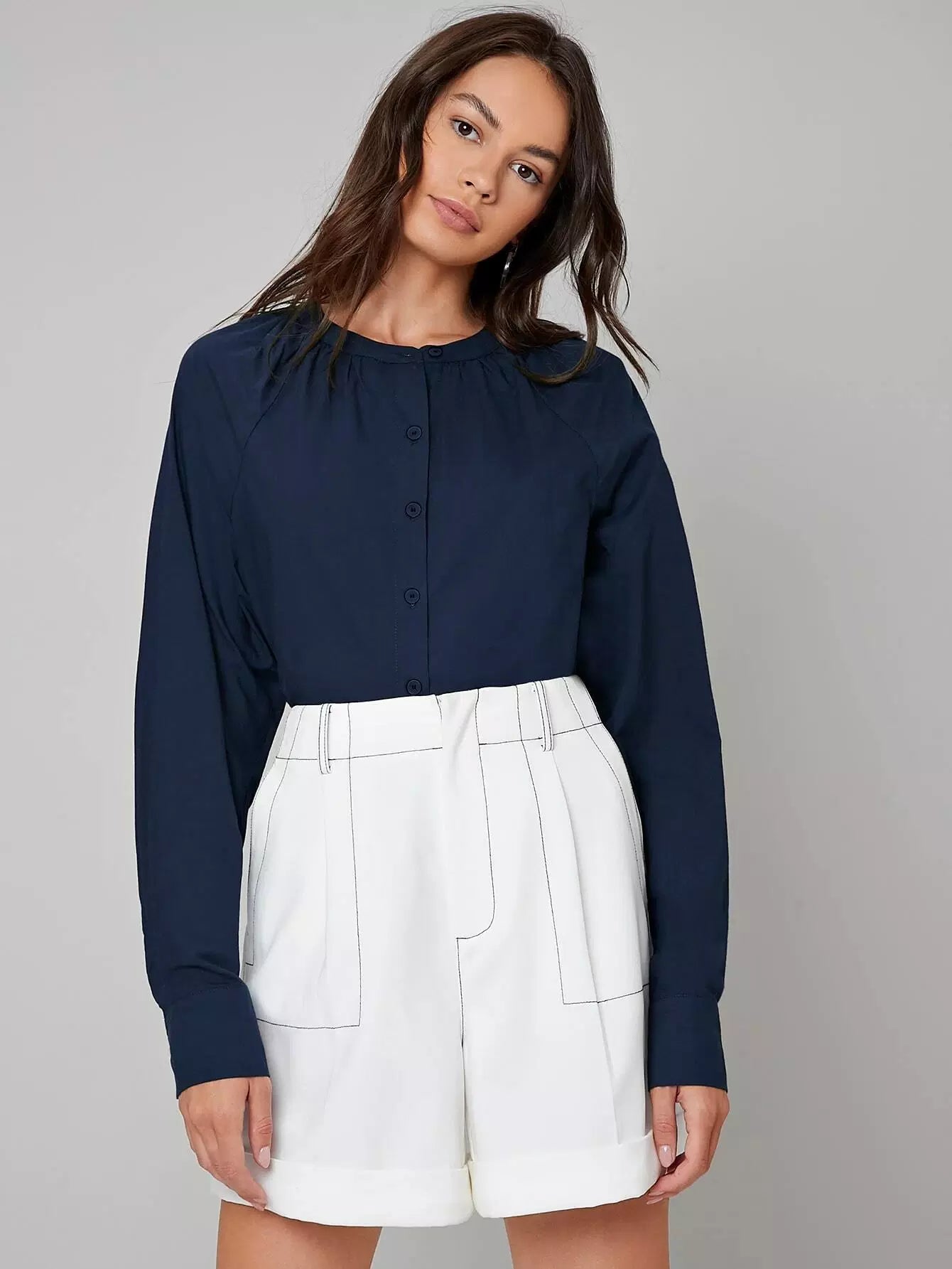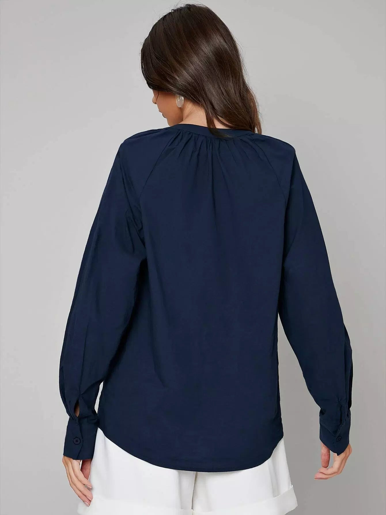 بلوزة سادة مطوية ومكسوة