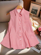 Franclia Women's Hot Pink Sleeveless Striped Collared Woven Blouse With Pocket Casual Regular Fit